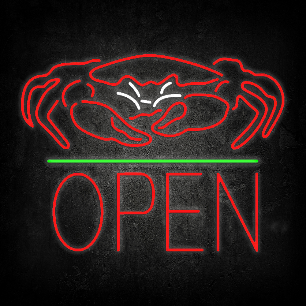 Crab Seafood Logo Block Open Green Line Led Neon Signs