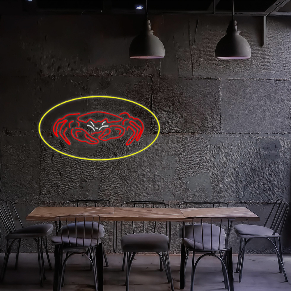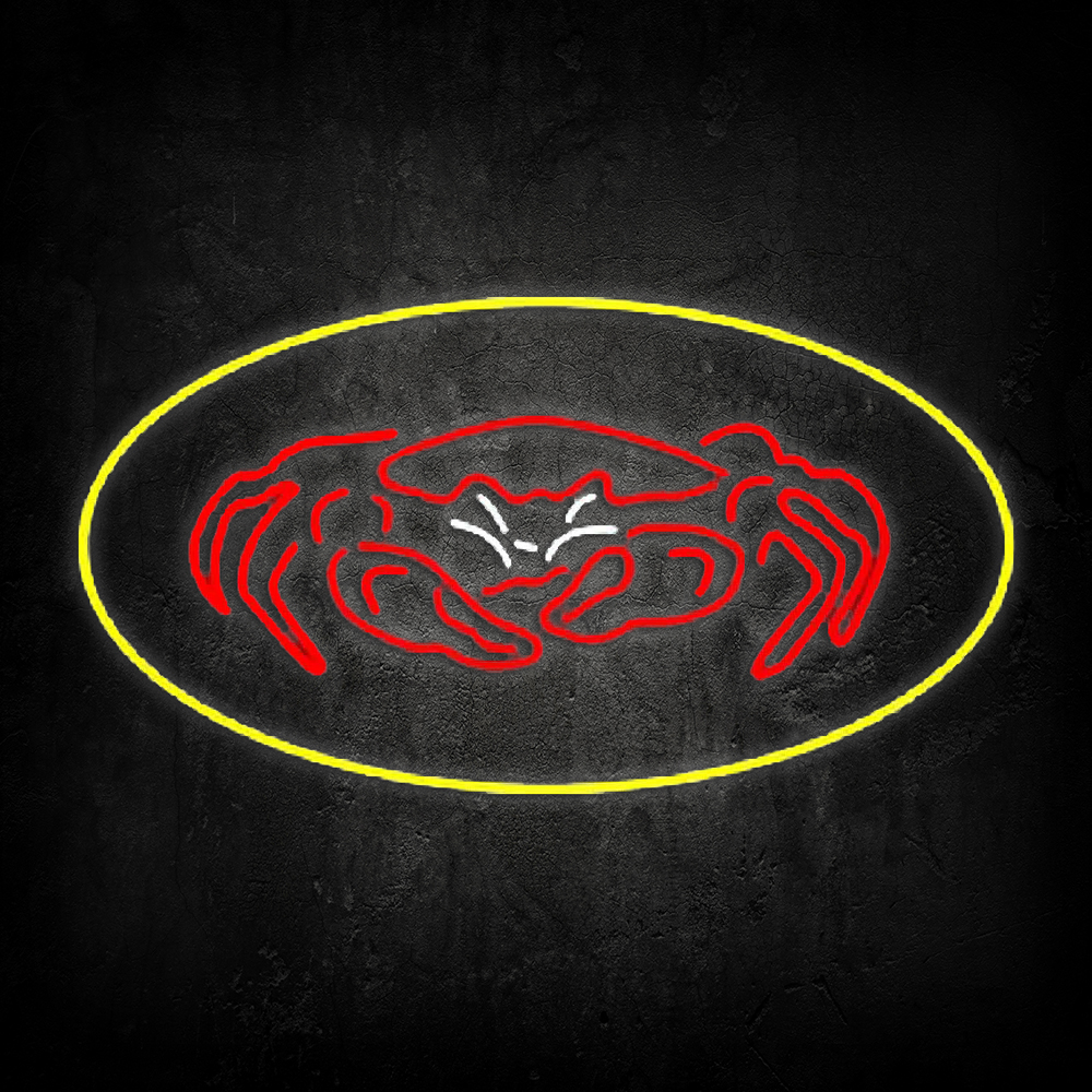 Crab Seafood Logo Oval Yellow Handmade Art Neon Sign