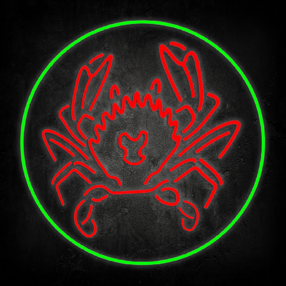 Red Crab Green Circle Handmade Art Neon Sign Home Decor