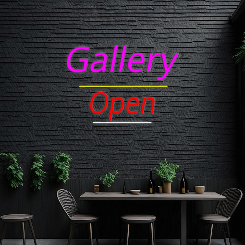 Pink Cursive Gallery With Open 3 Handmade Art Neon Sign
