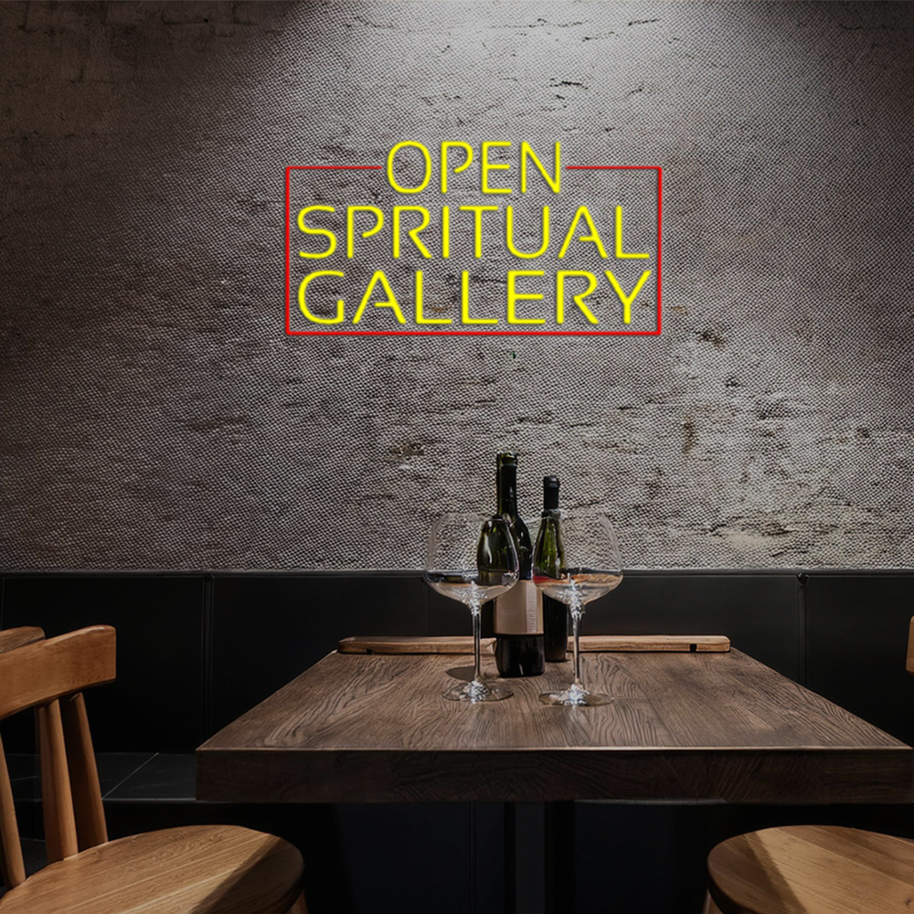 Yellow Open Spiritual Gallery With Red Border Led neon signs