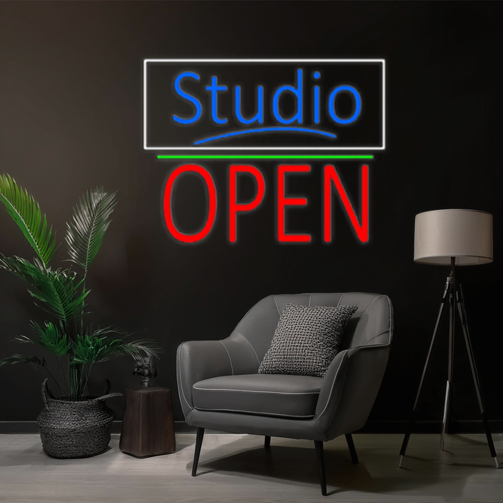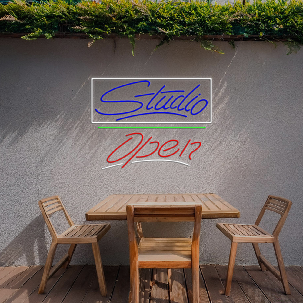 Blue Studio With Open 1 Handmade Art Neon Sign