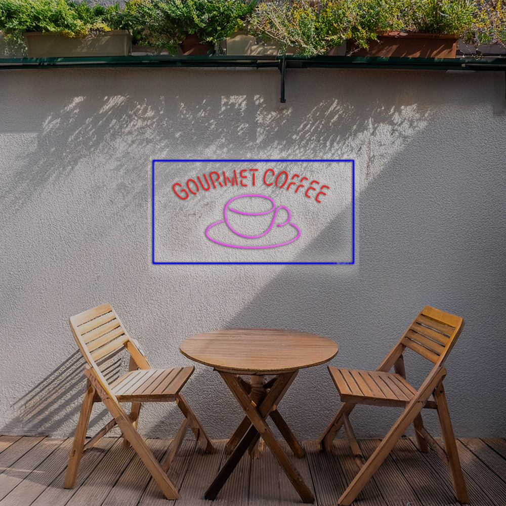 Red Coffee With Coffee Cup Handmade Art Neon Signs