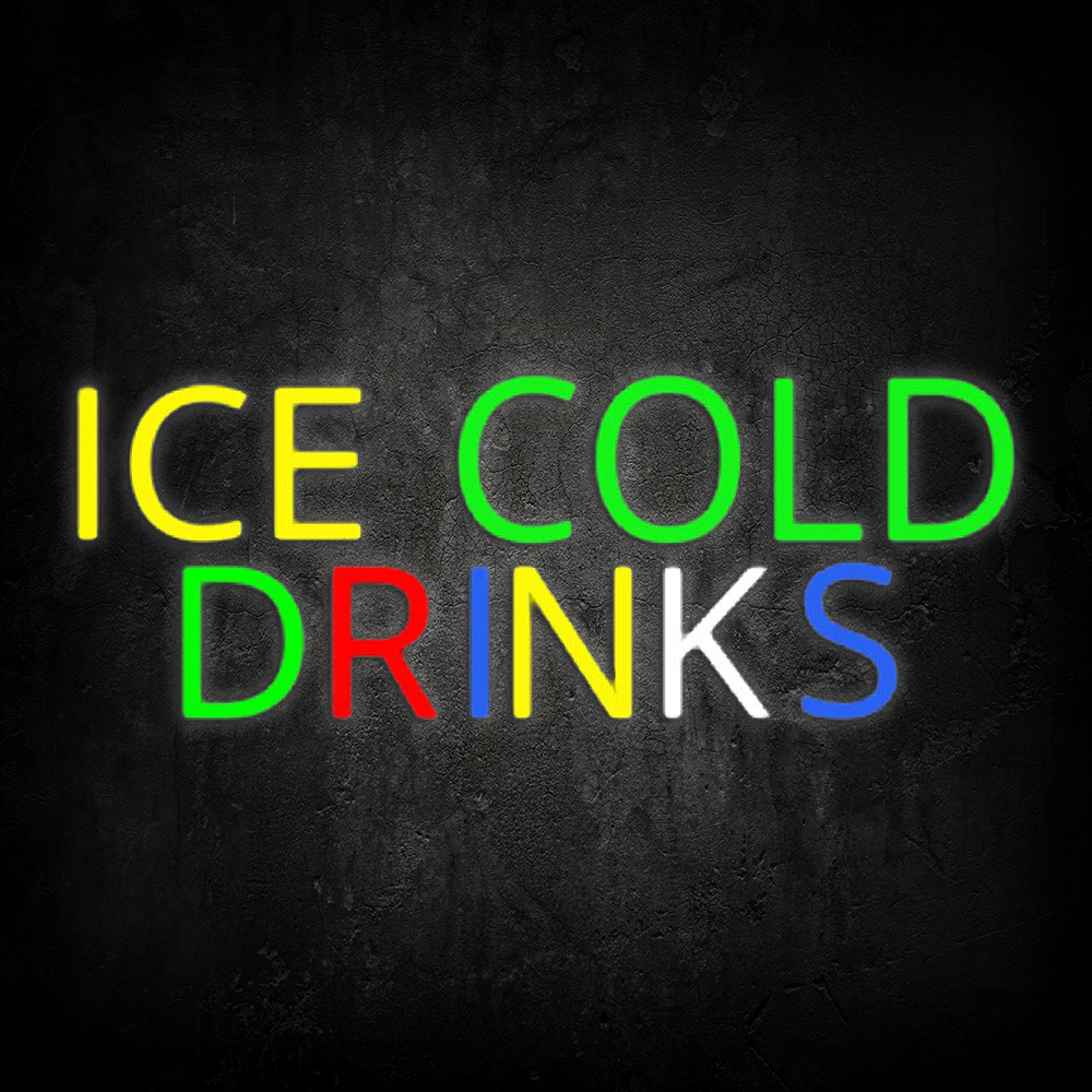 Multi Colored Ice Cold Drinks Handmade Art Neon Sign