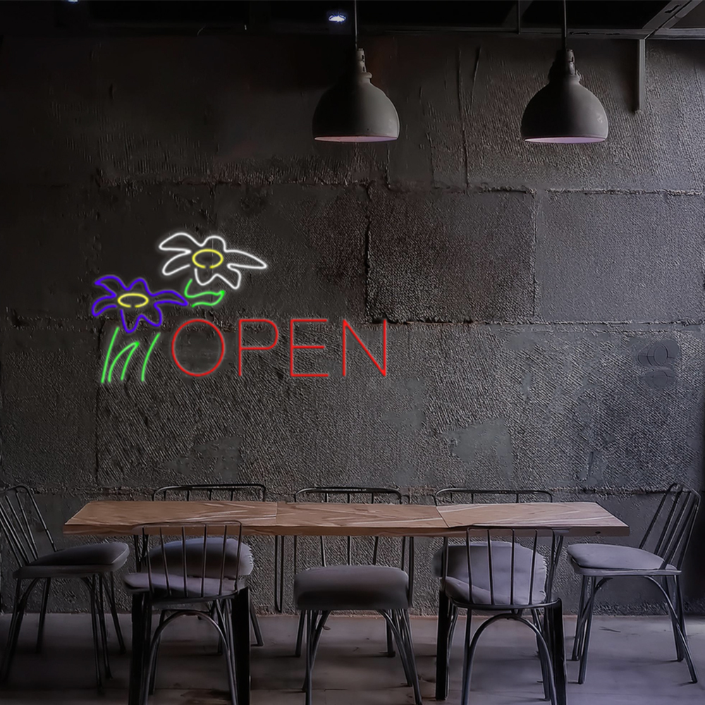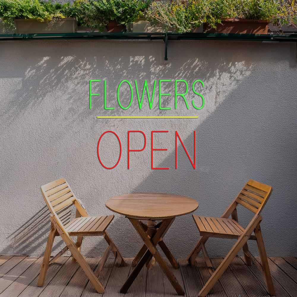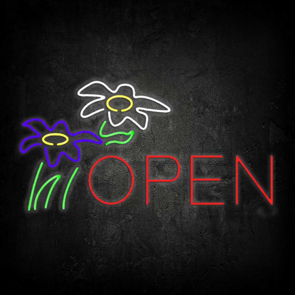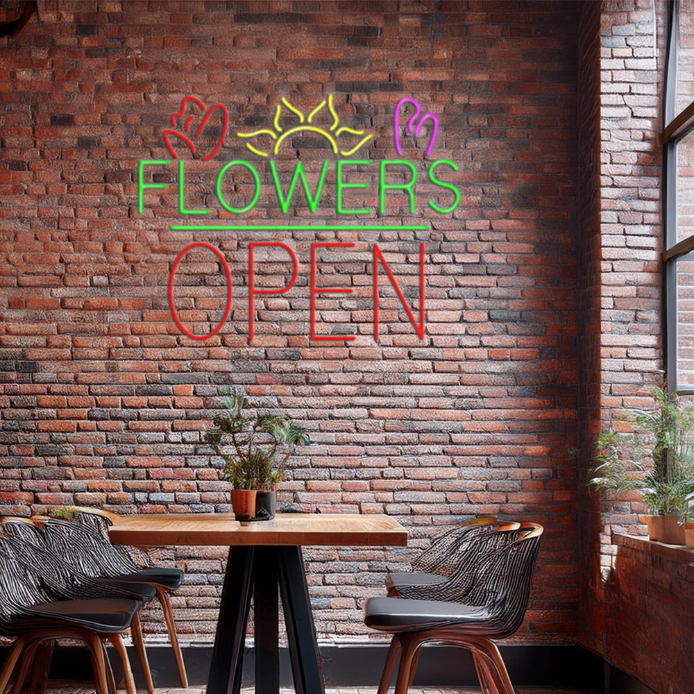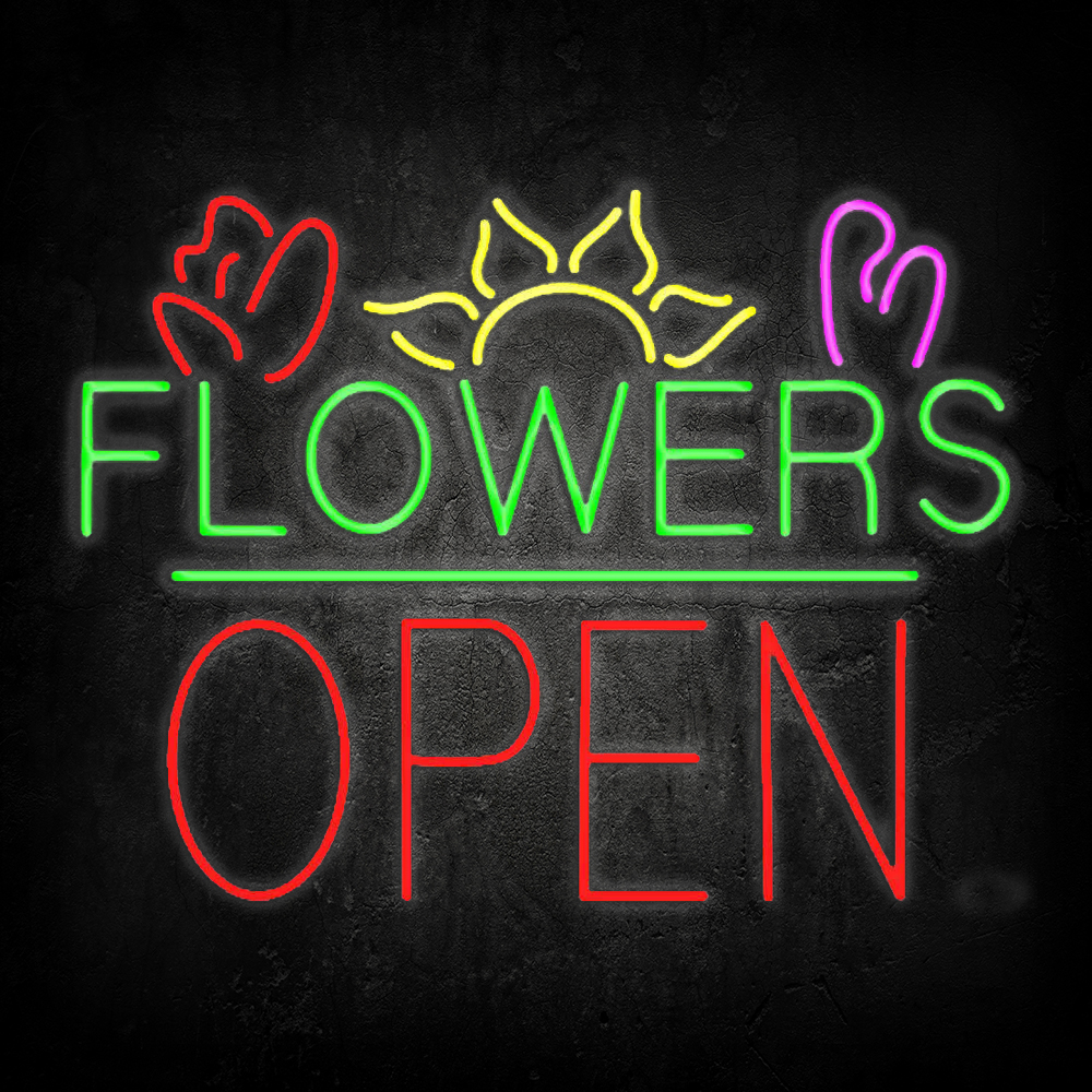 Flowers Logo Block Open Handmade Art Neon Sign