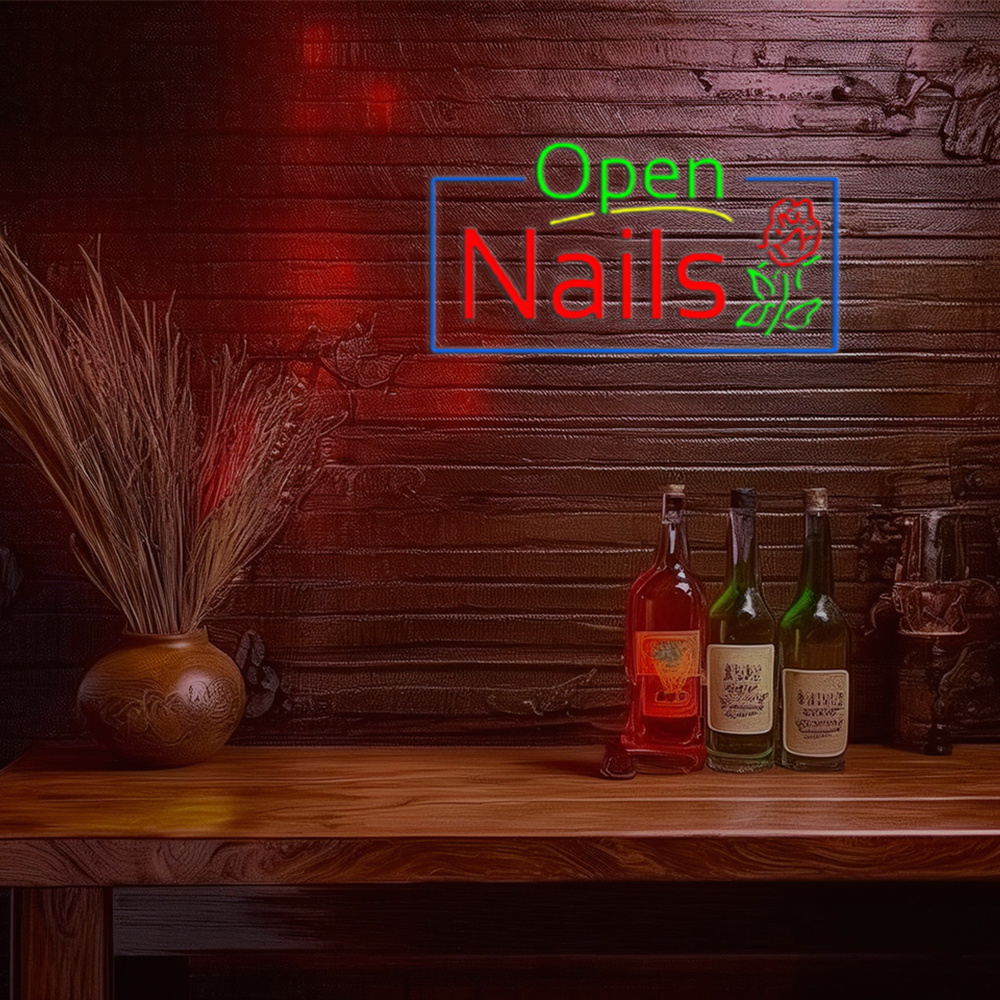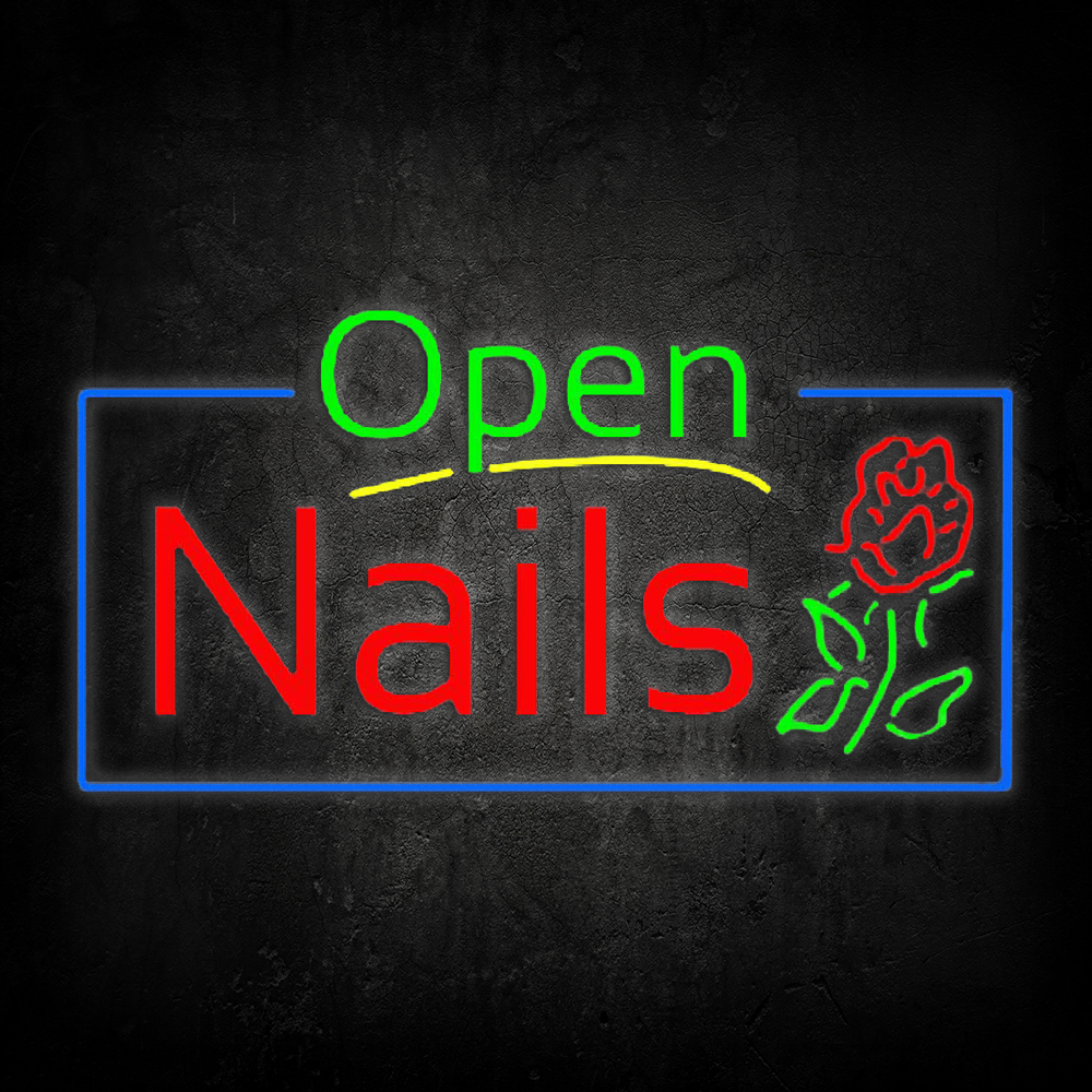 Green Open Nails Flower Logo Handmade Art Neon Sign