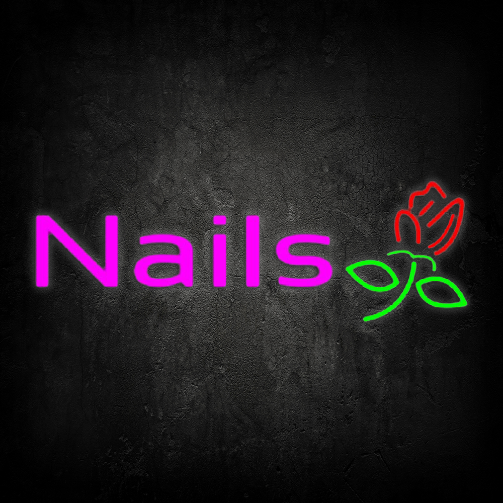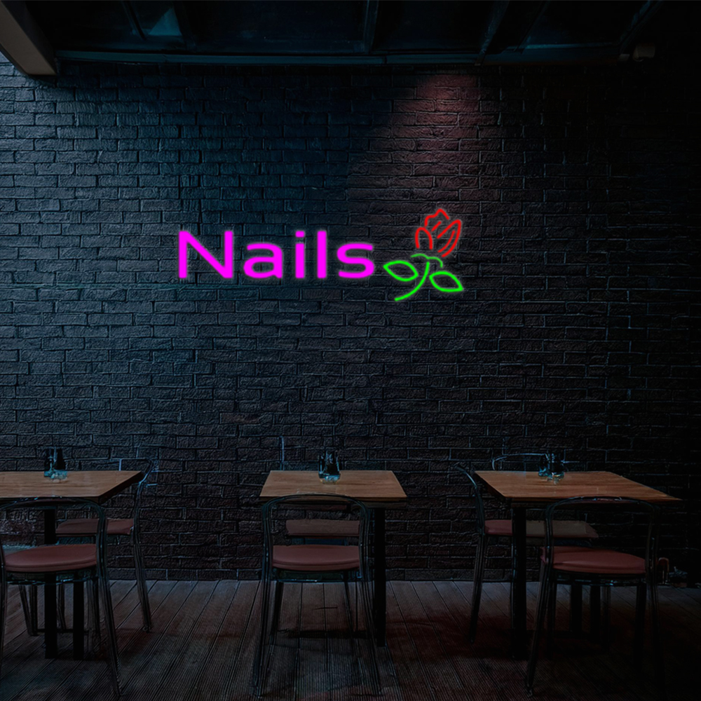 Pink Nails With Flower Logo Handmade Art Neon Sign