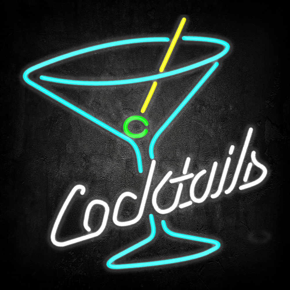 Cocktails With Martini Glass Handmade Art Neon Sign