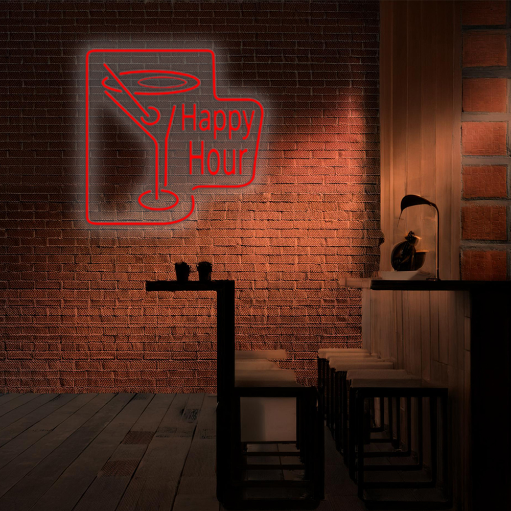 Martini Glass Happy Hour Handmade Art Neon Sign