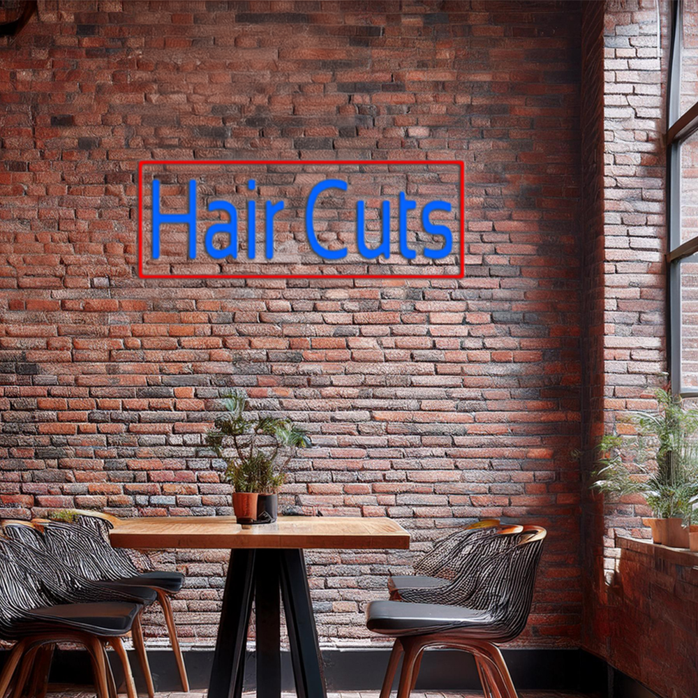 Blue Hair Cuts With Red Border Handmade Art Neon Sign