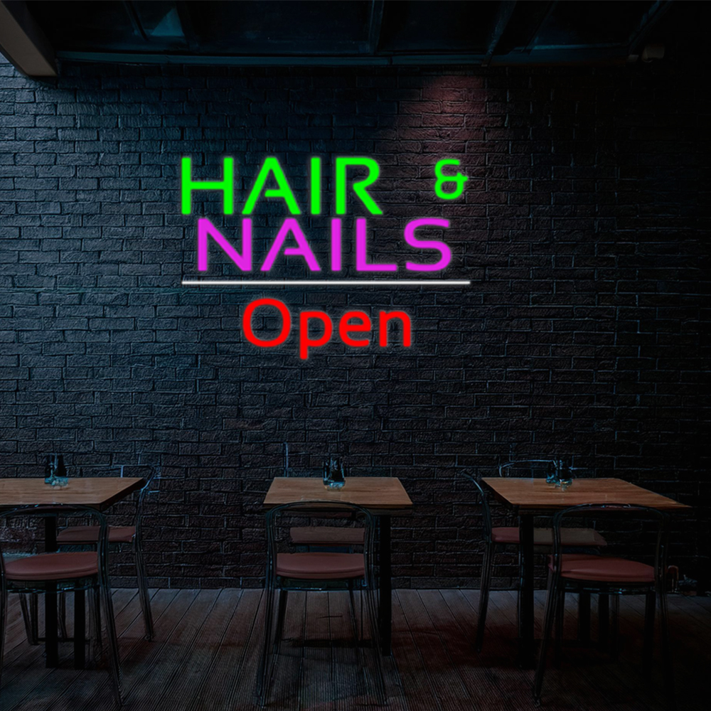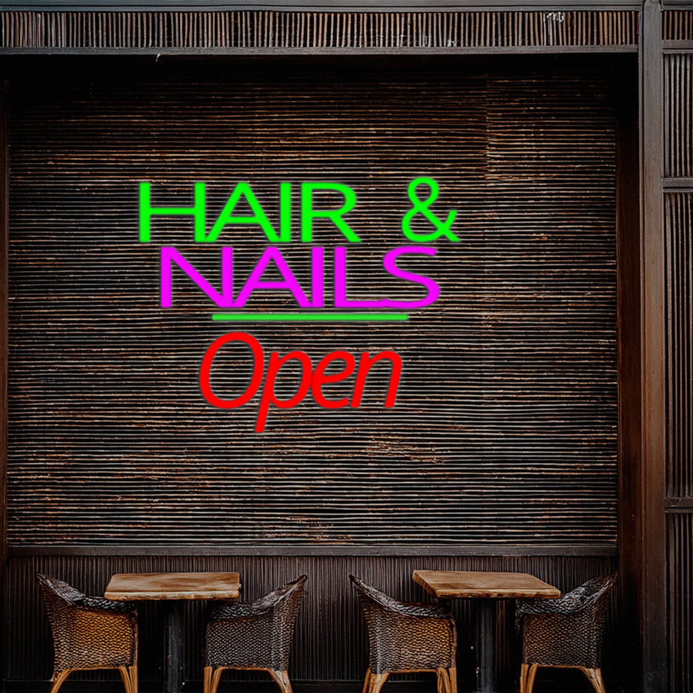 Hair And Nails Open White Line Handmade Art Neon Sign