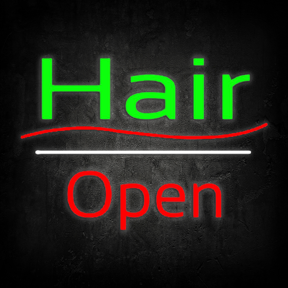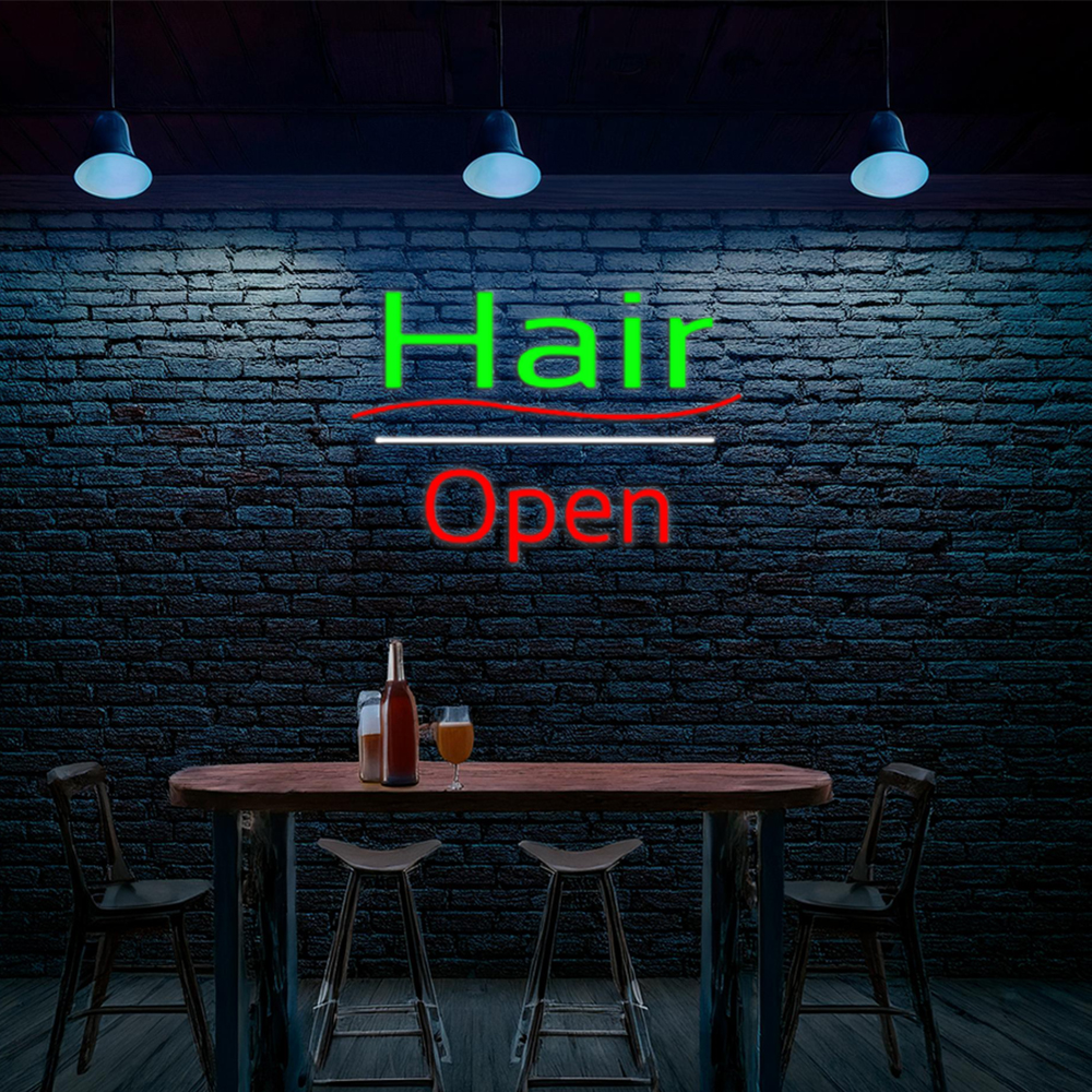 Hair Cut Logo Block Open Green Line Handmade Art Neon Sign