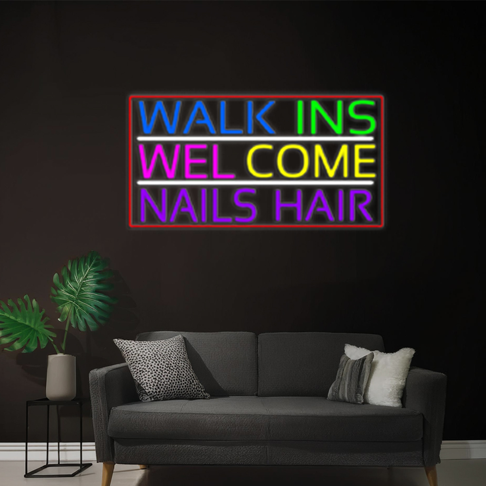 Walk Ins Welcome Nails Hair Handmade Art Neon Signs