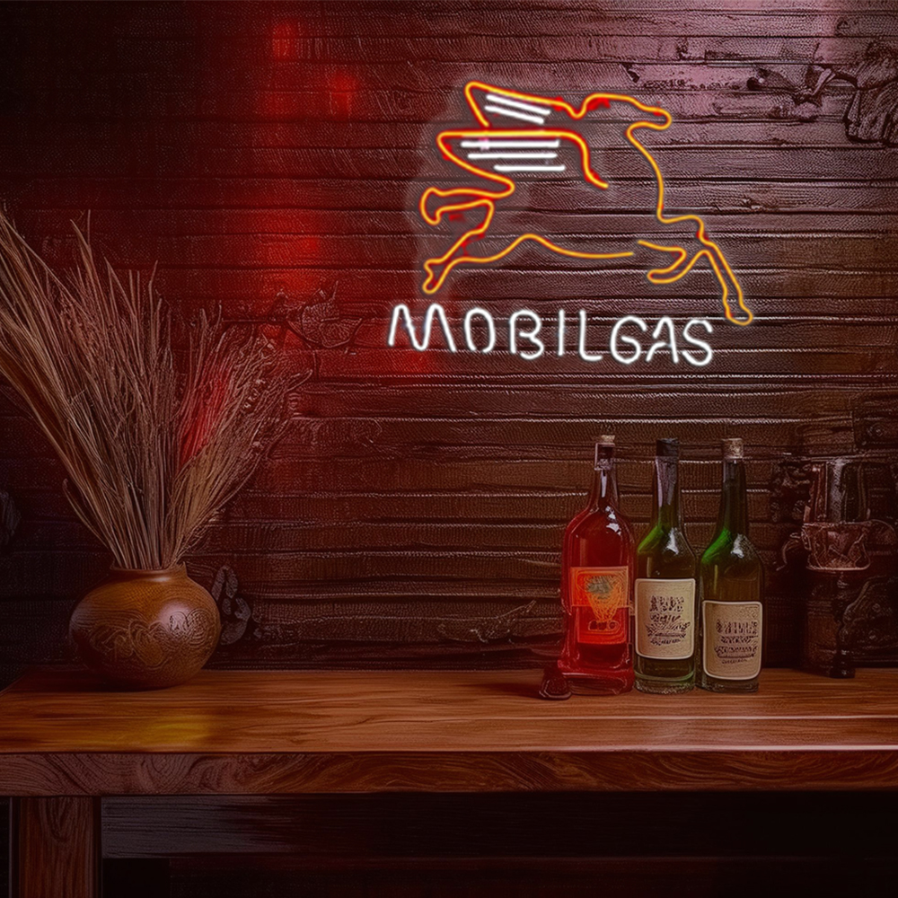 Mobilgas Oil Handmade Art Neon Sign Wall Decor