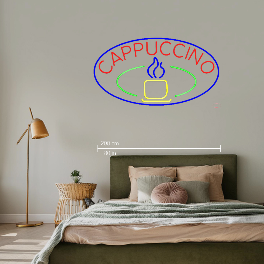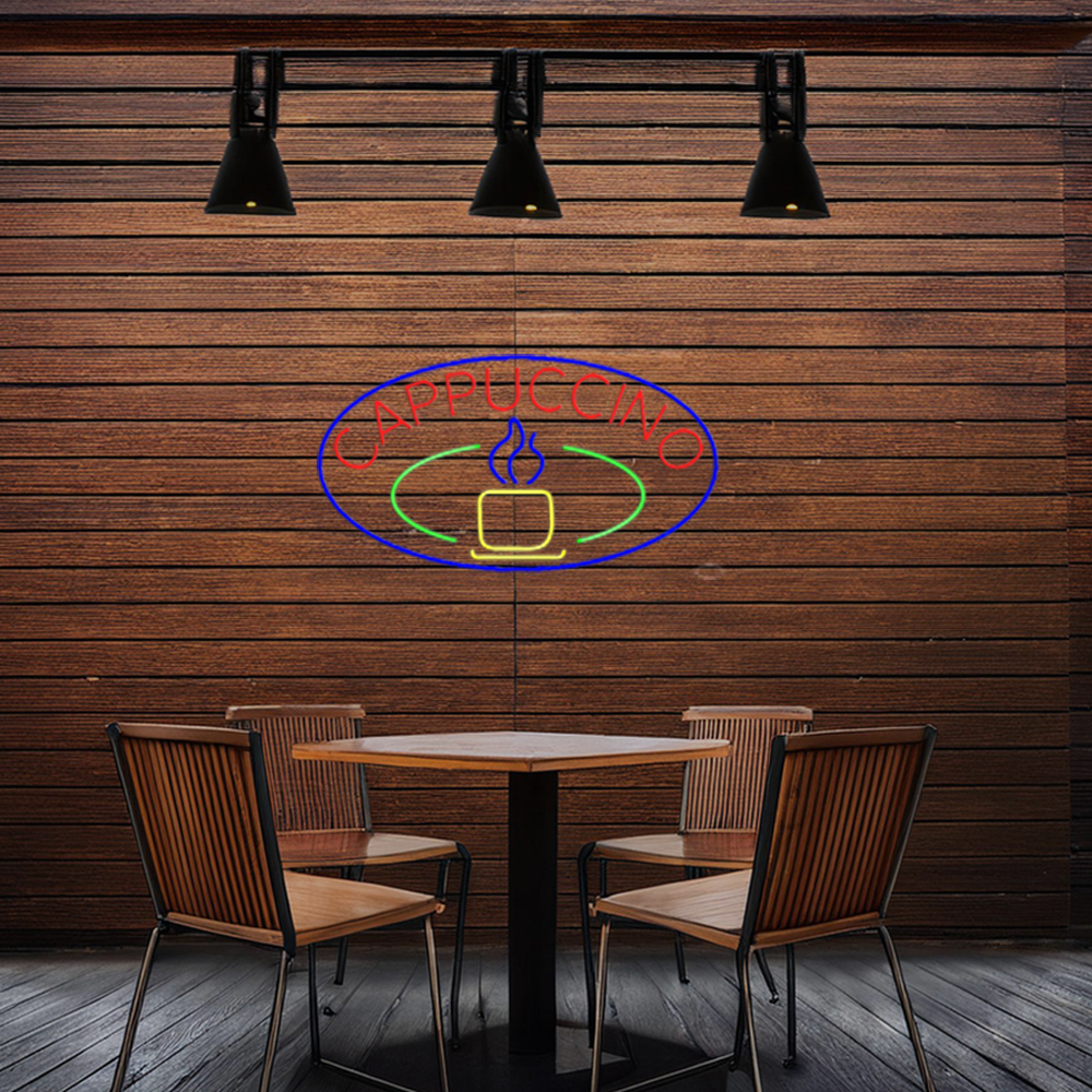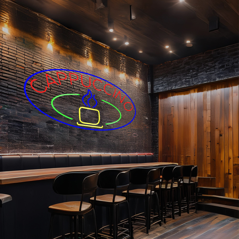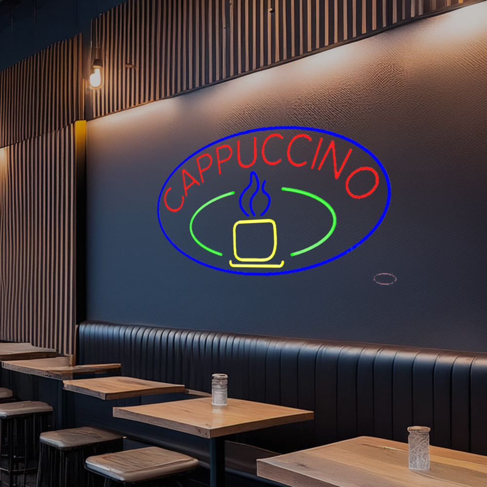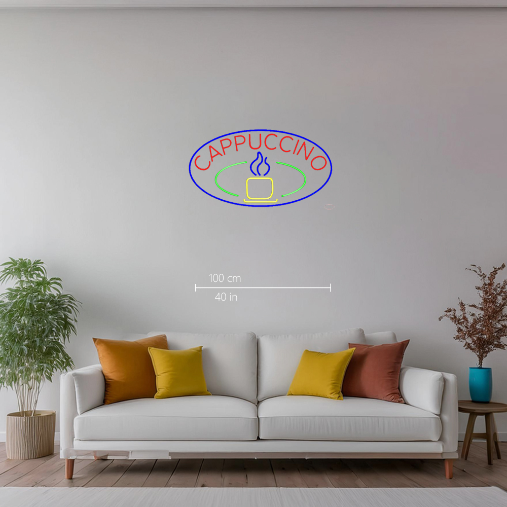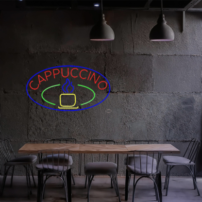Blue Cappuccino Cup With Blue Oval Handmade Art Neon Sign