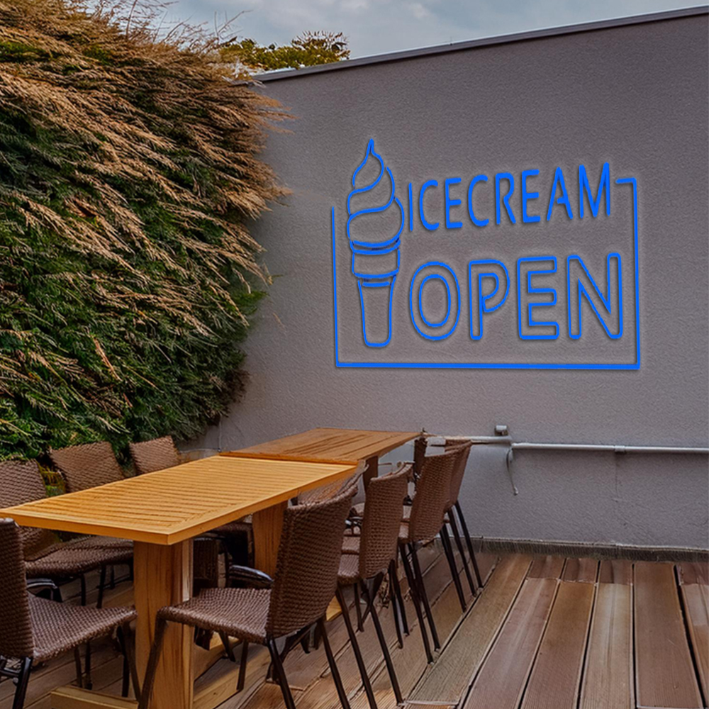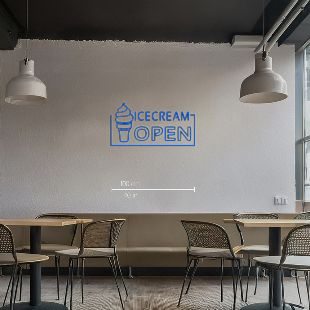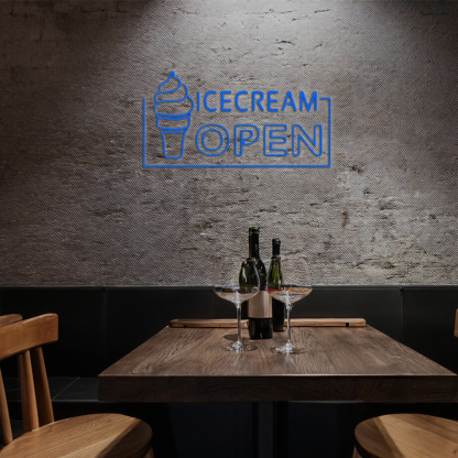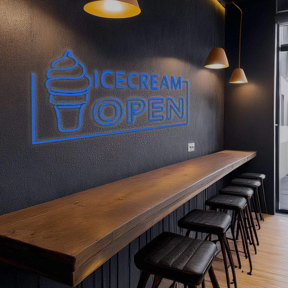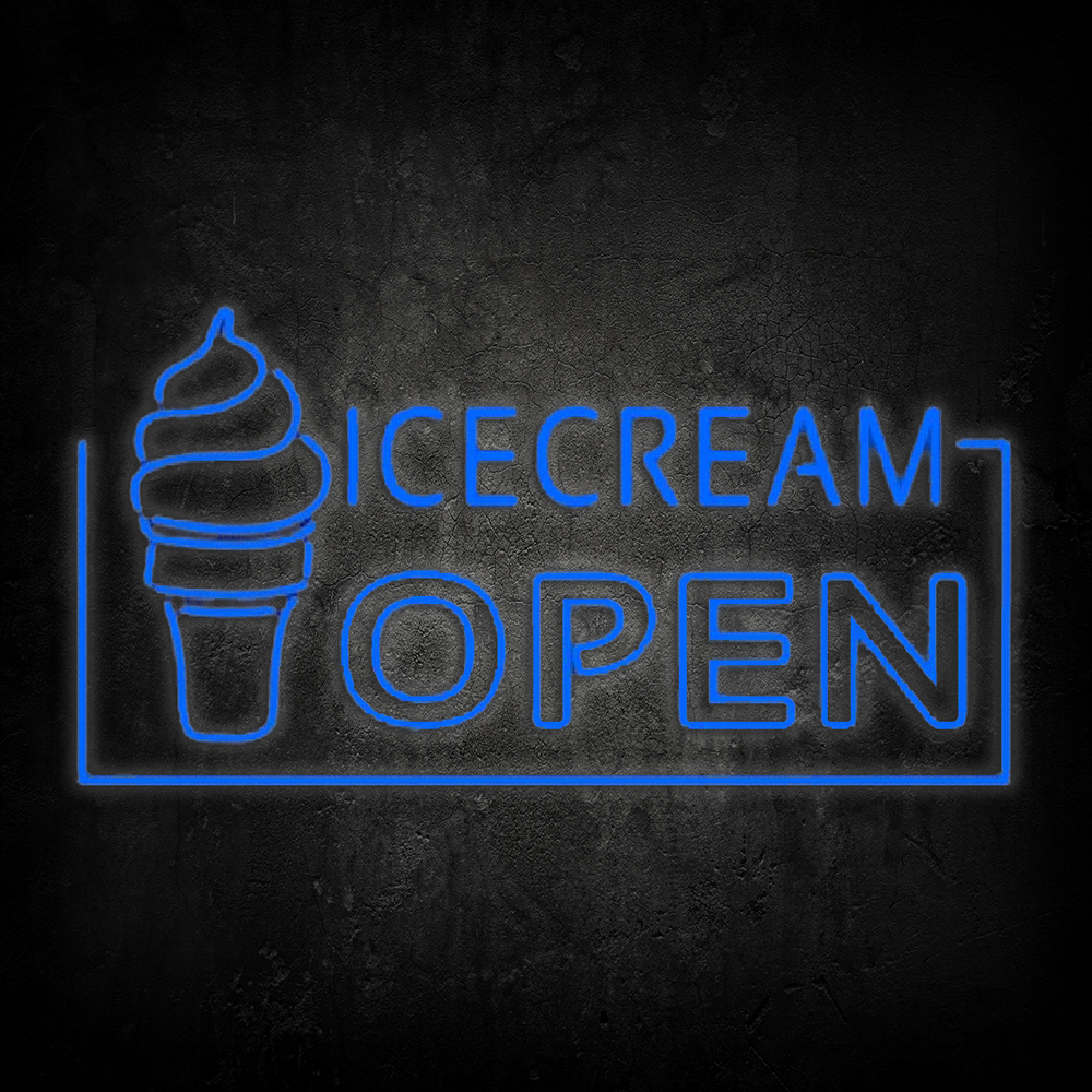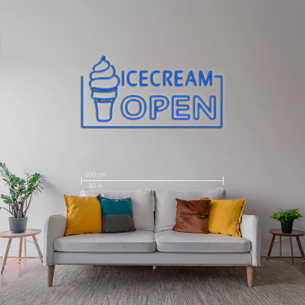 Blue Ice Cream Open Handmade Art Neon Sign