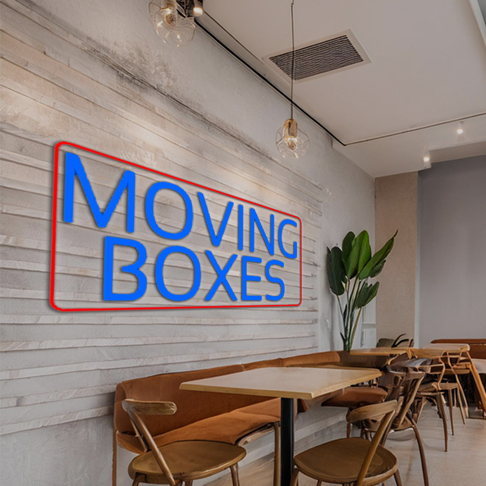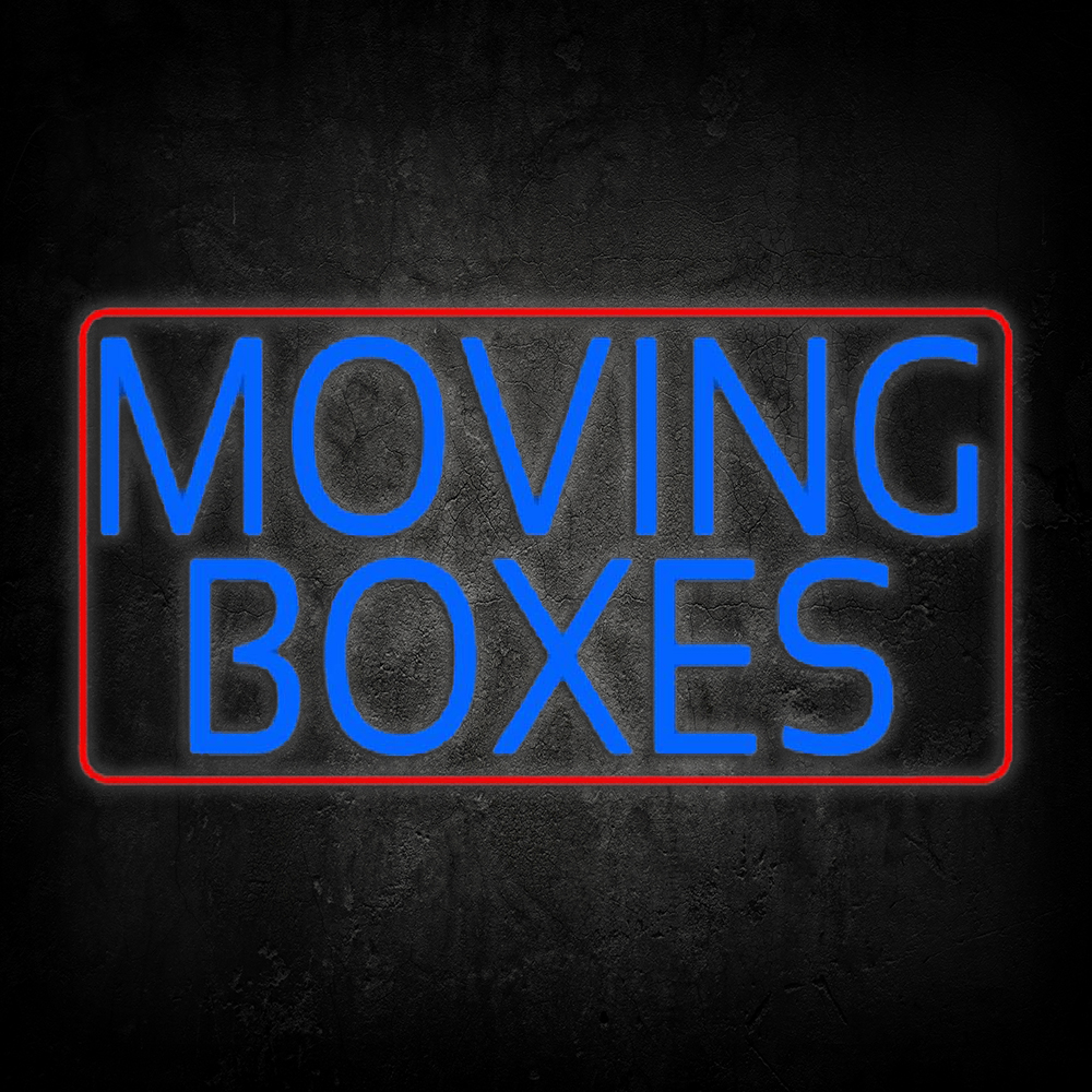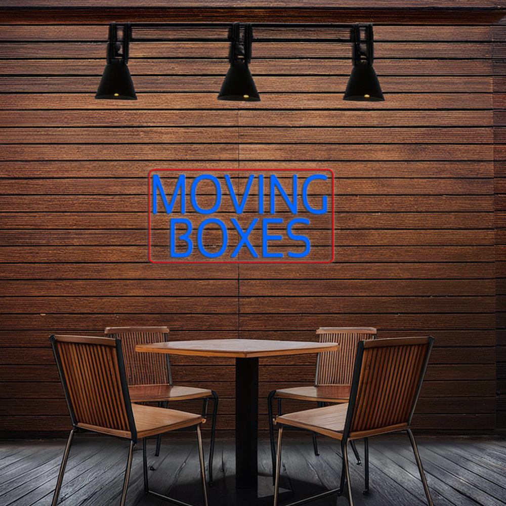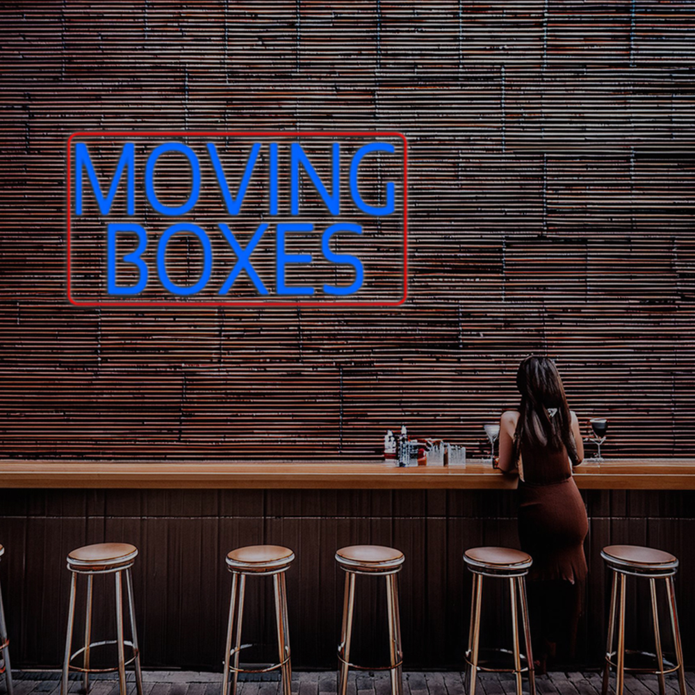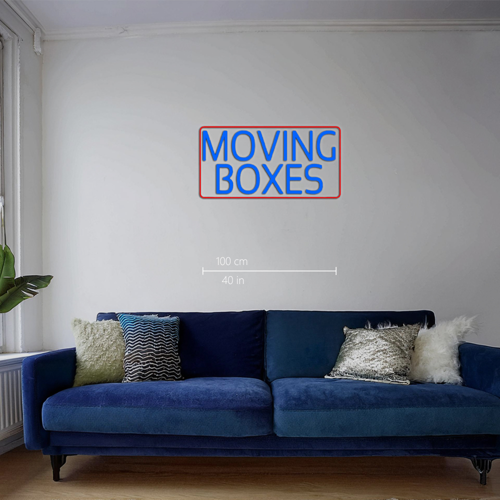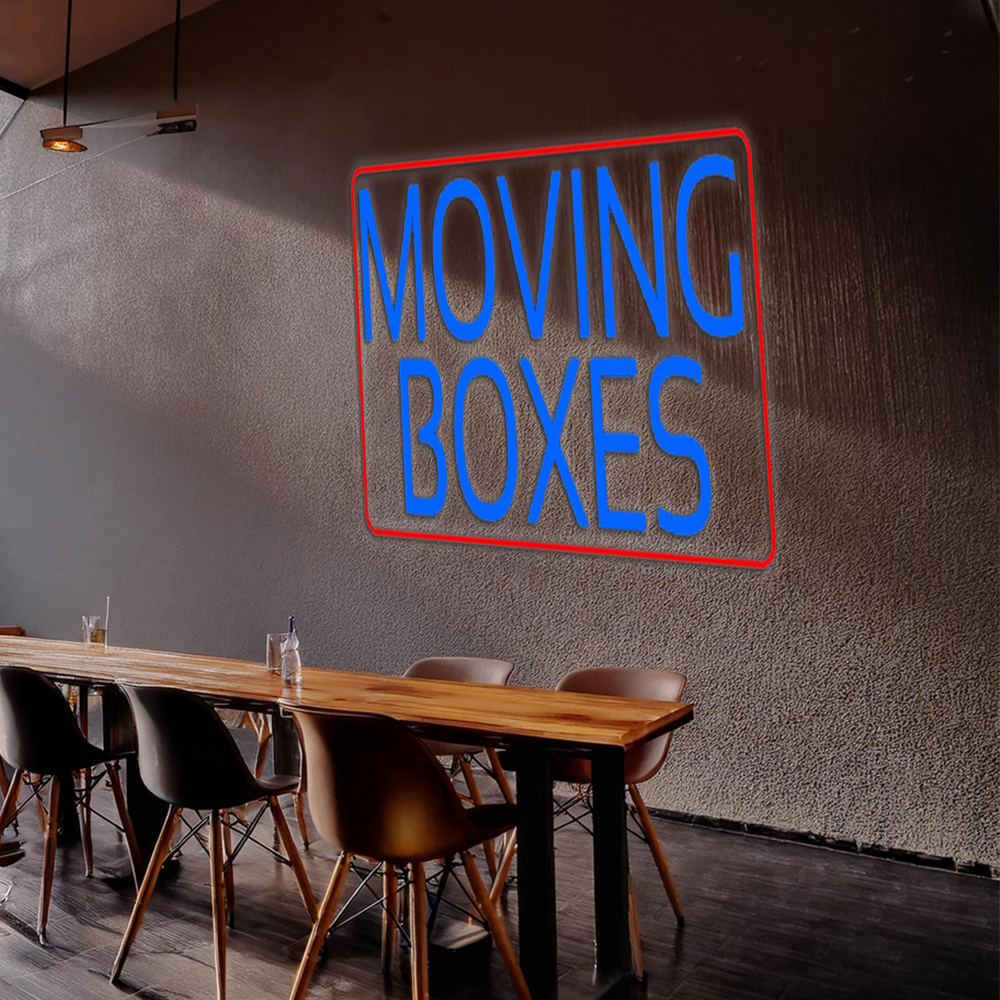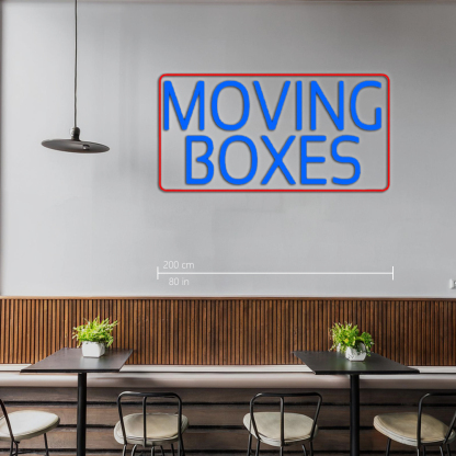 Blue Moving Boxes Red Border Handmade Art Neon Sign