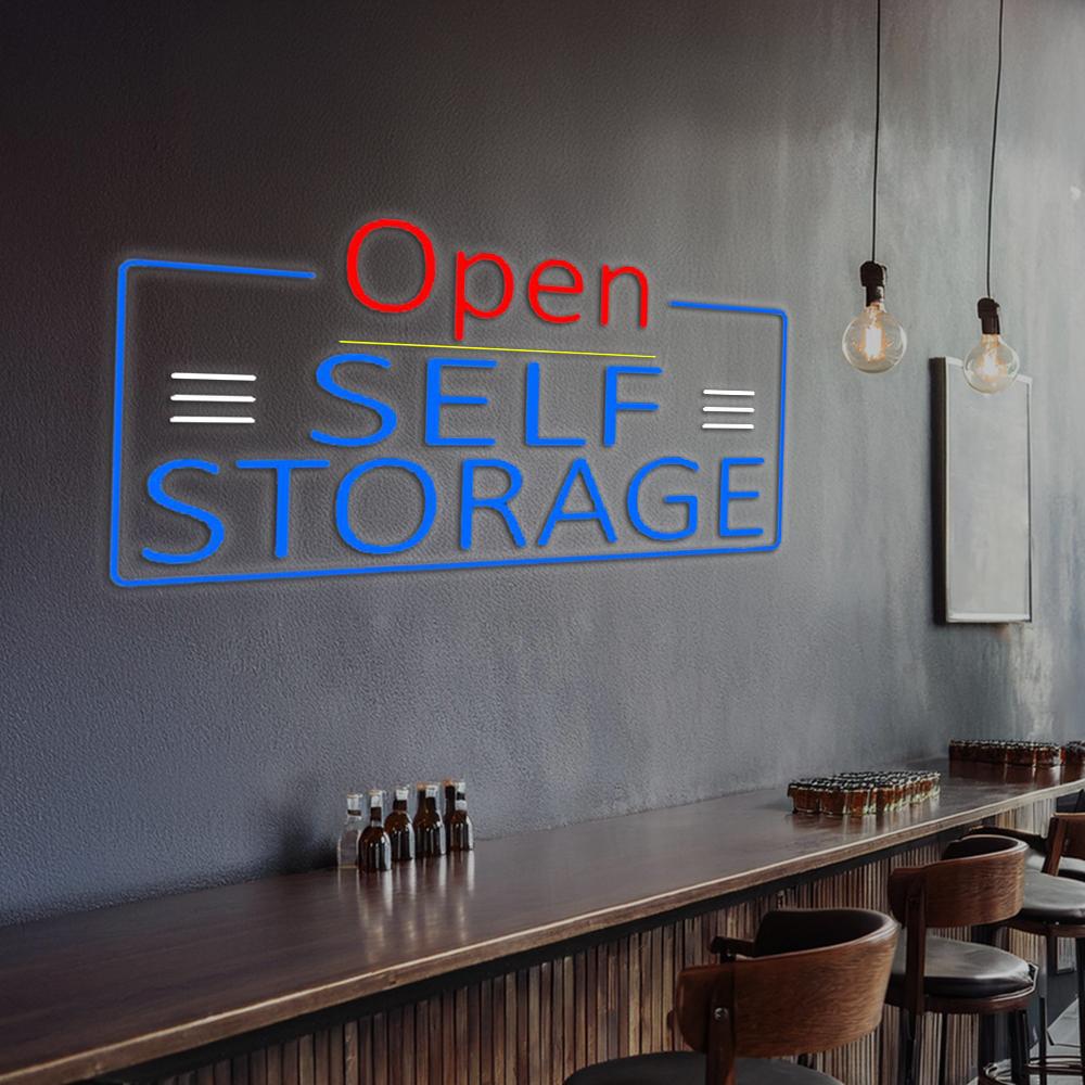 Blue Self Storage With Open 4 Handmade Art Neon Sign