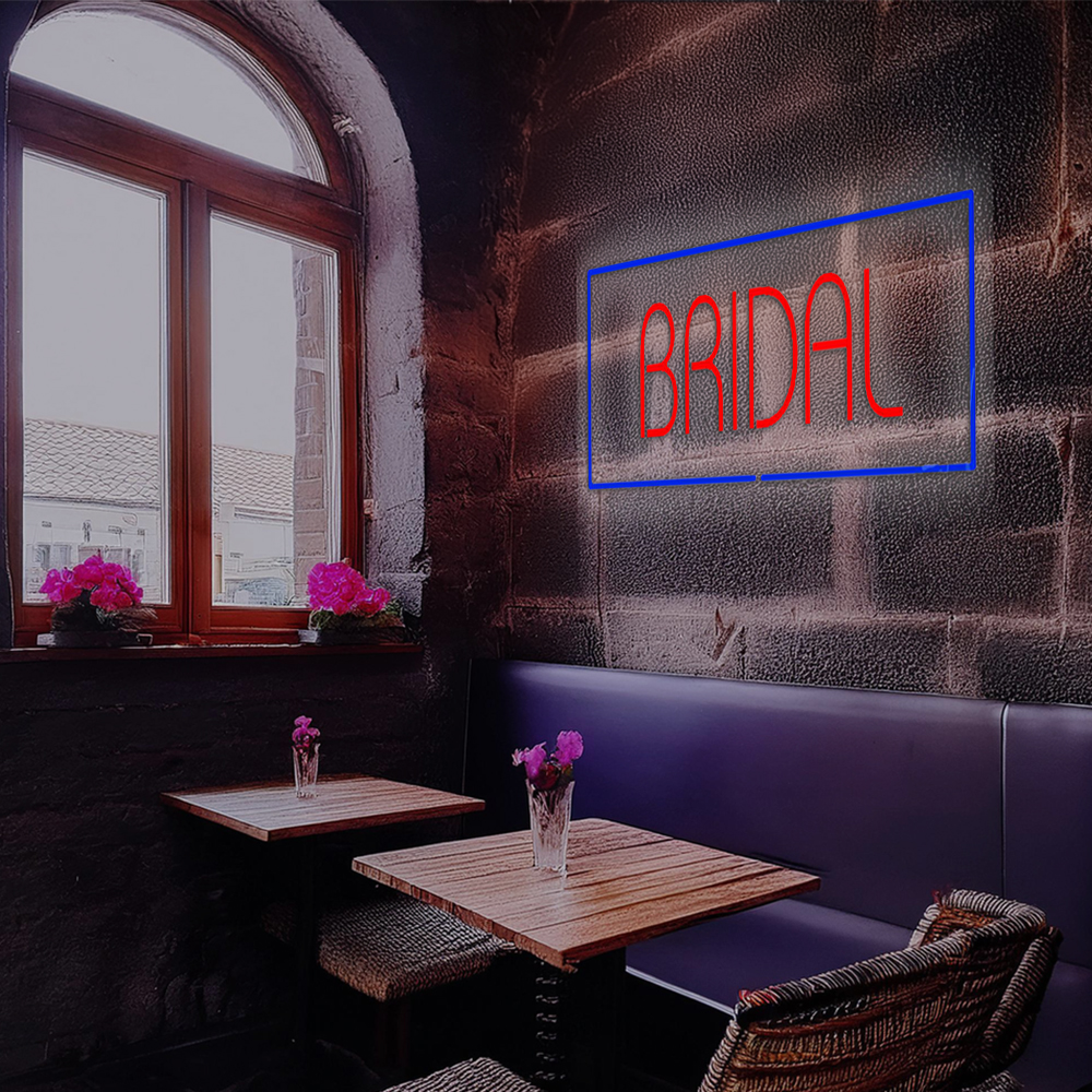 Bridal Rectangle Blue Handmade Art Neon Sign