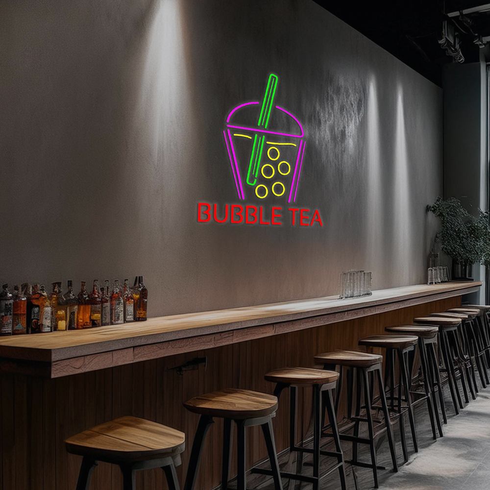Bubble Tea With Glass Handmade Art Neon Sign