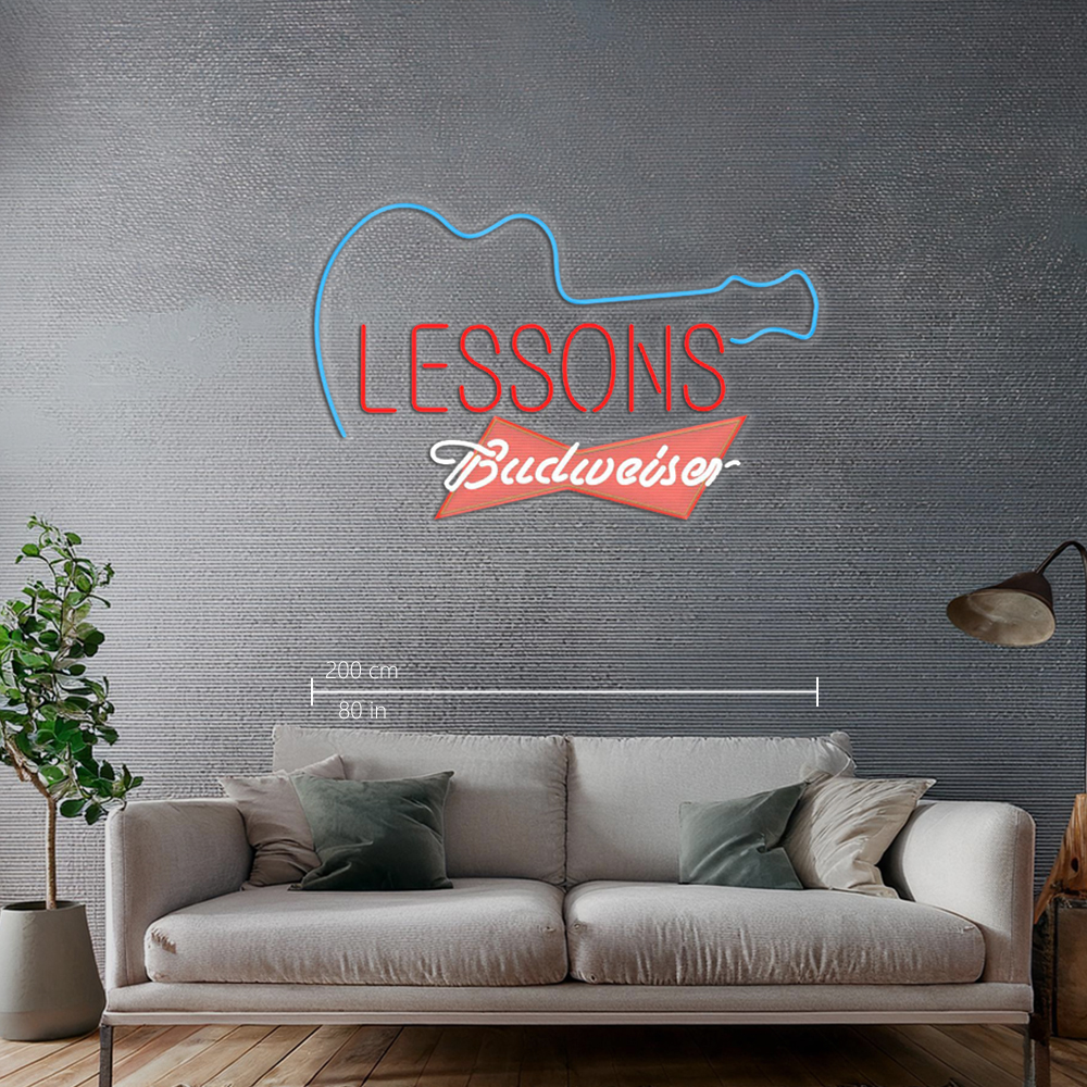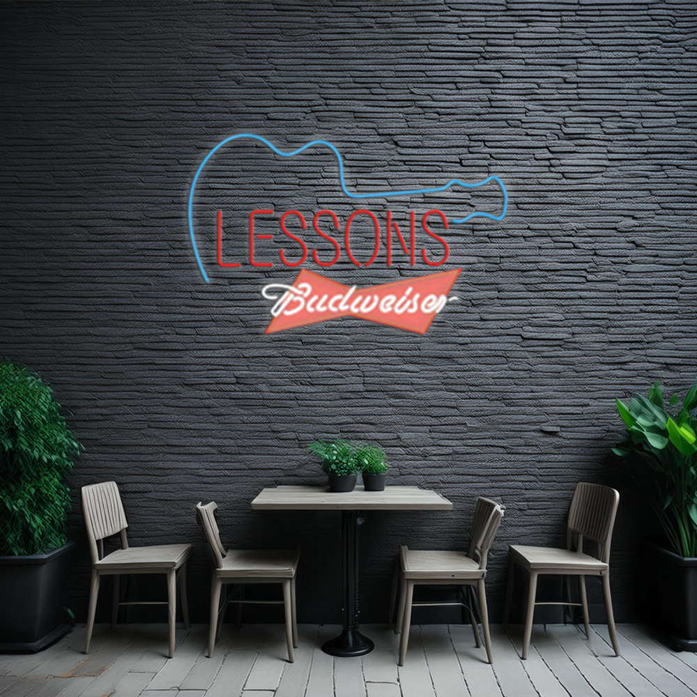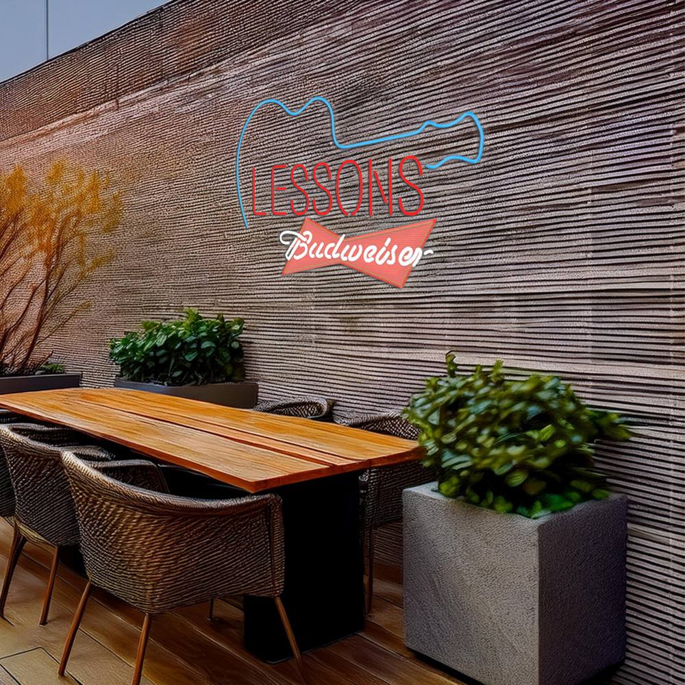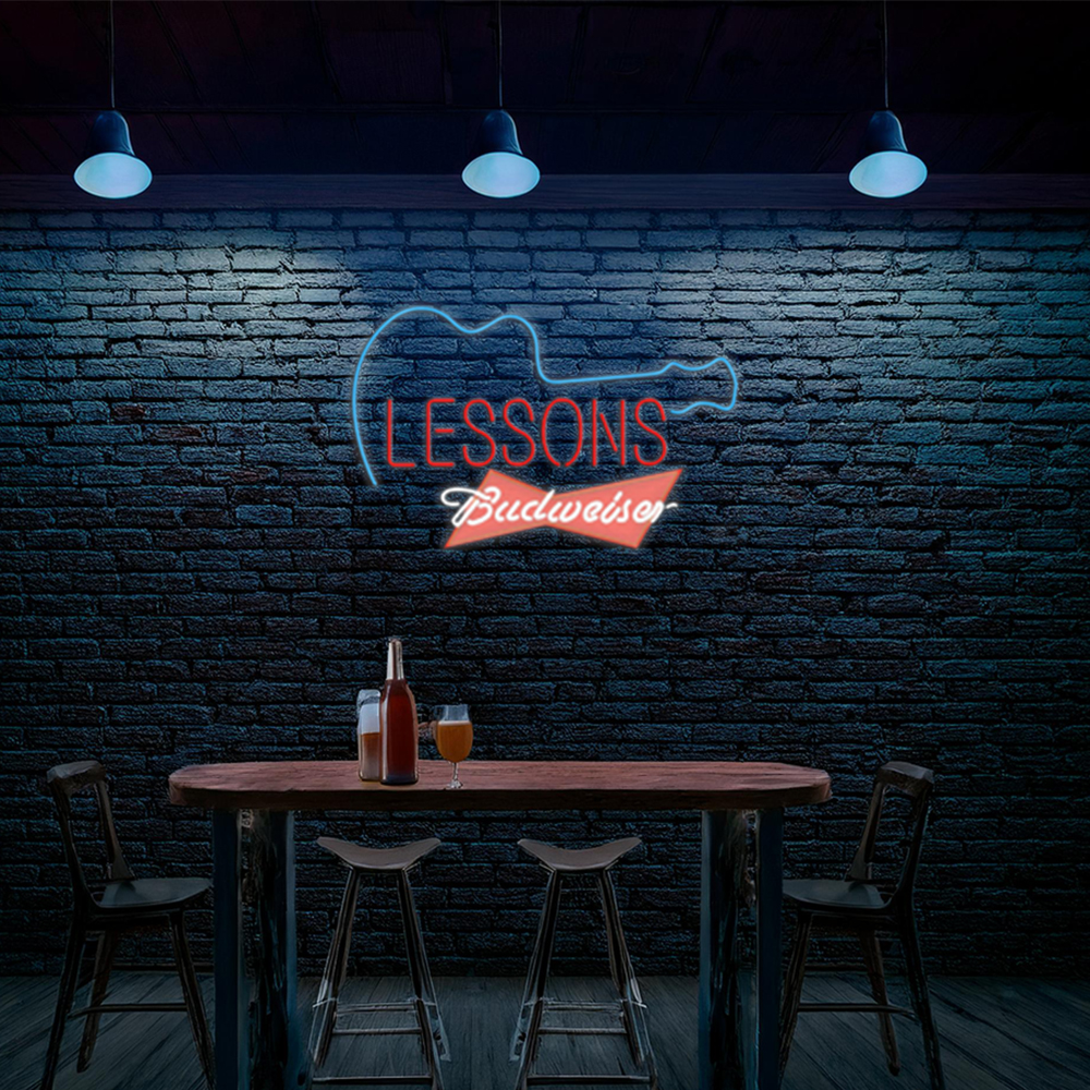 Budweiser Red Guitar Lessons Handmade Art Neon Sign