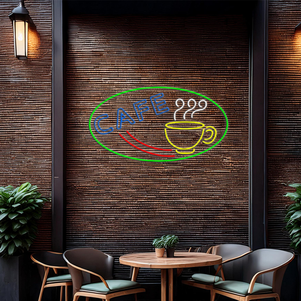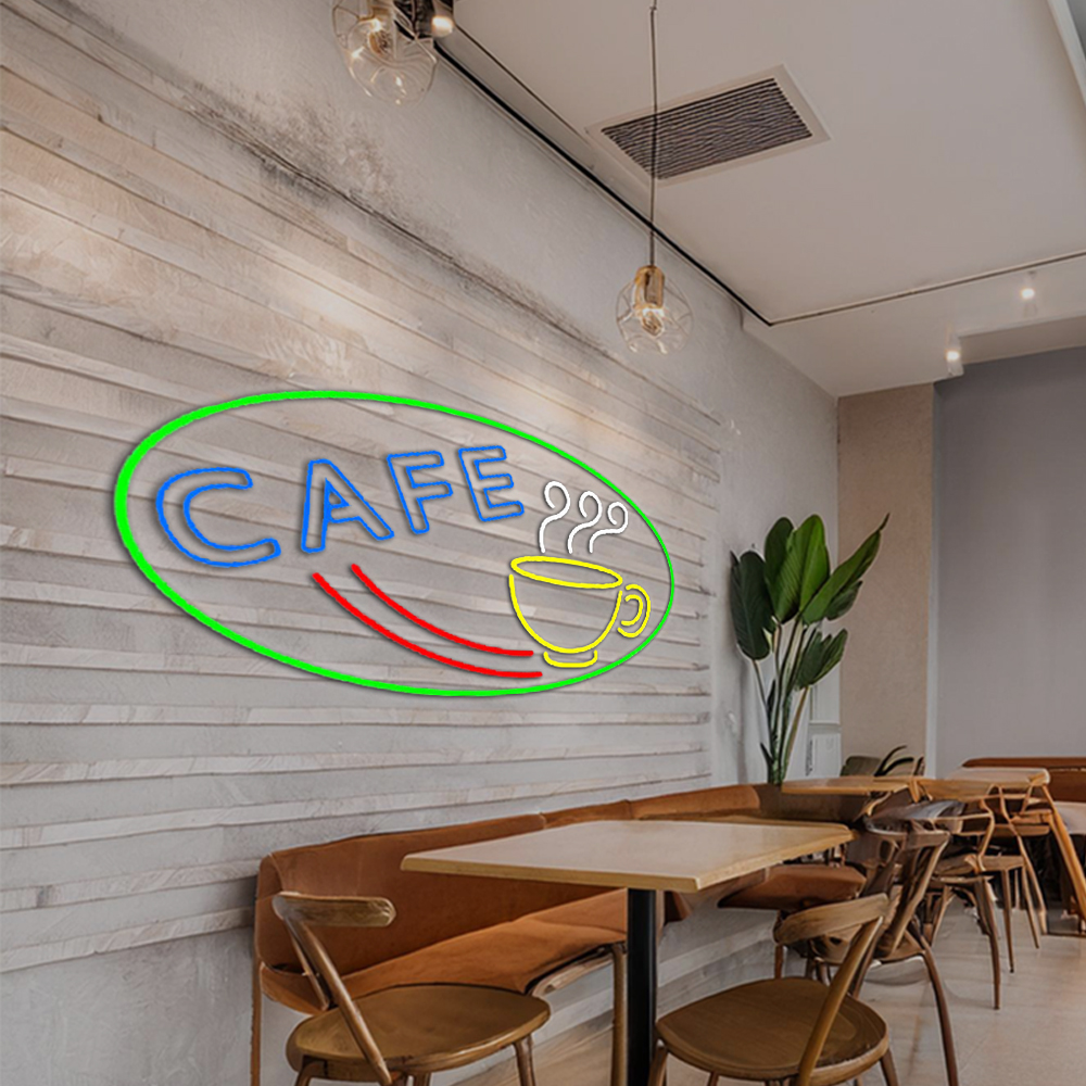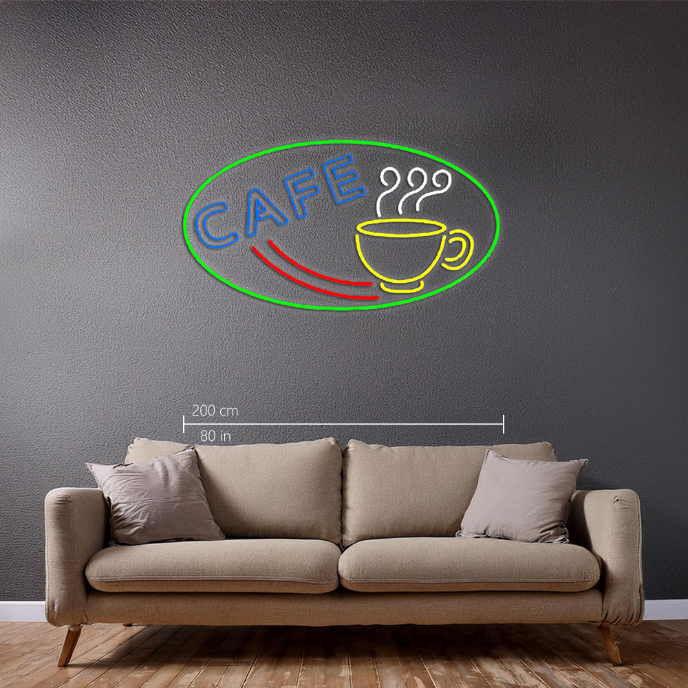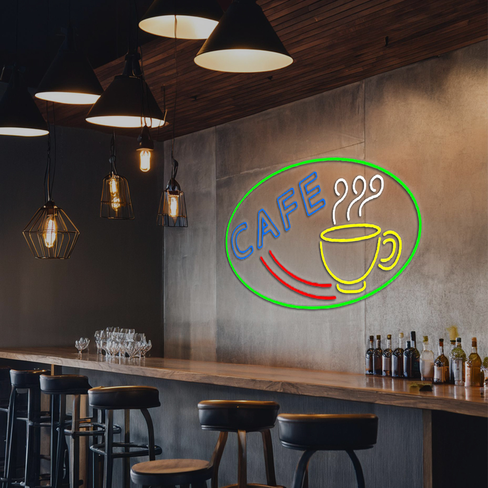 Cafe With Coffee Mug Handmade Art Neon Sign