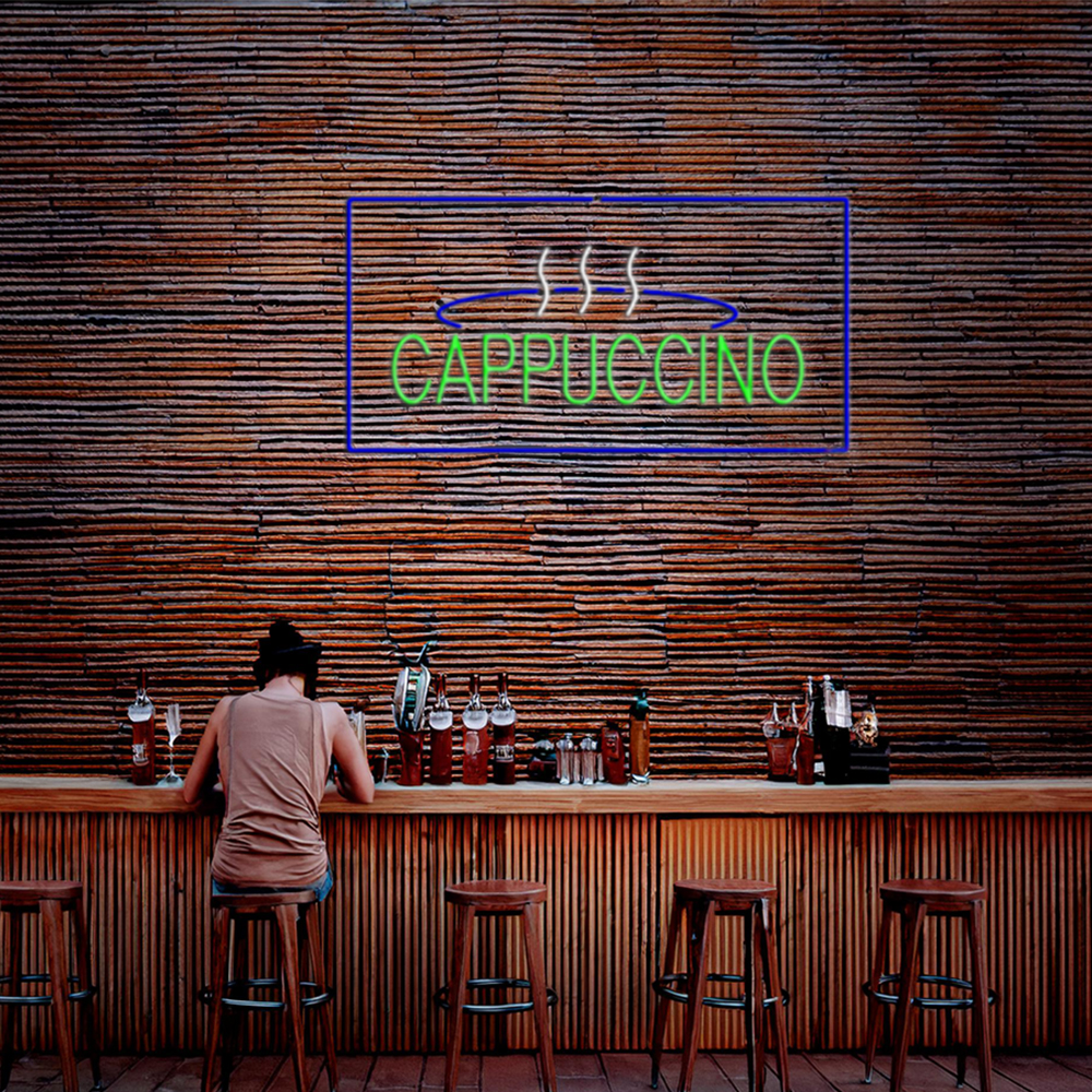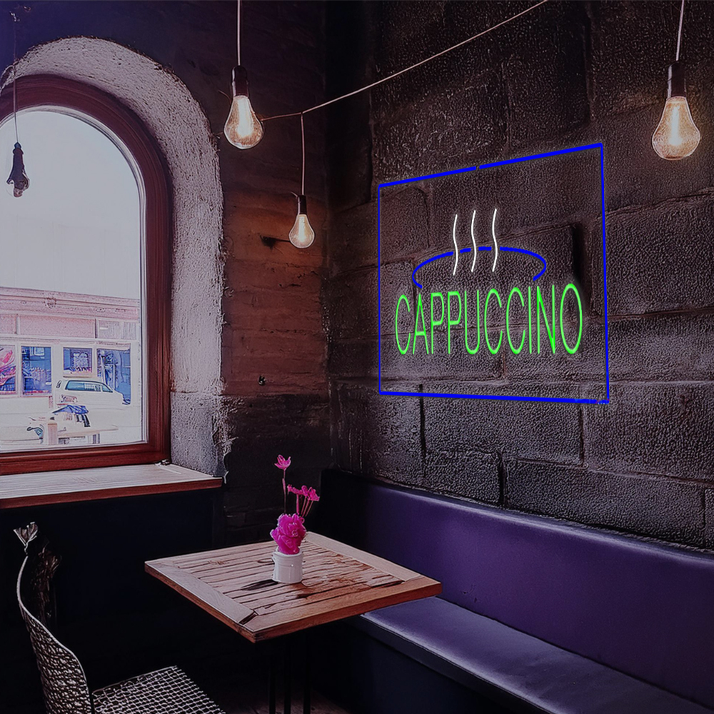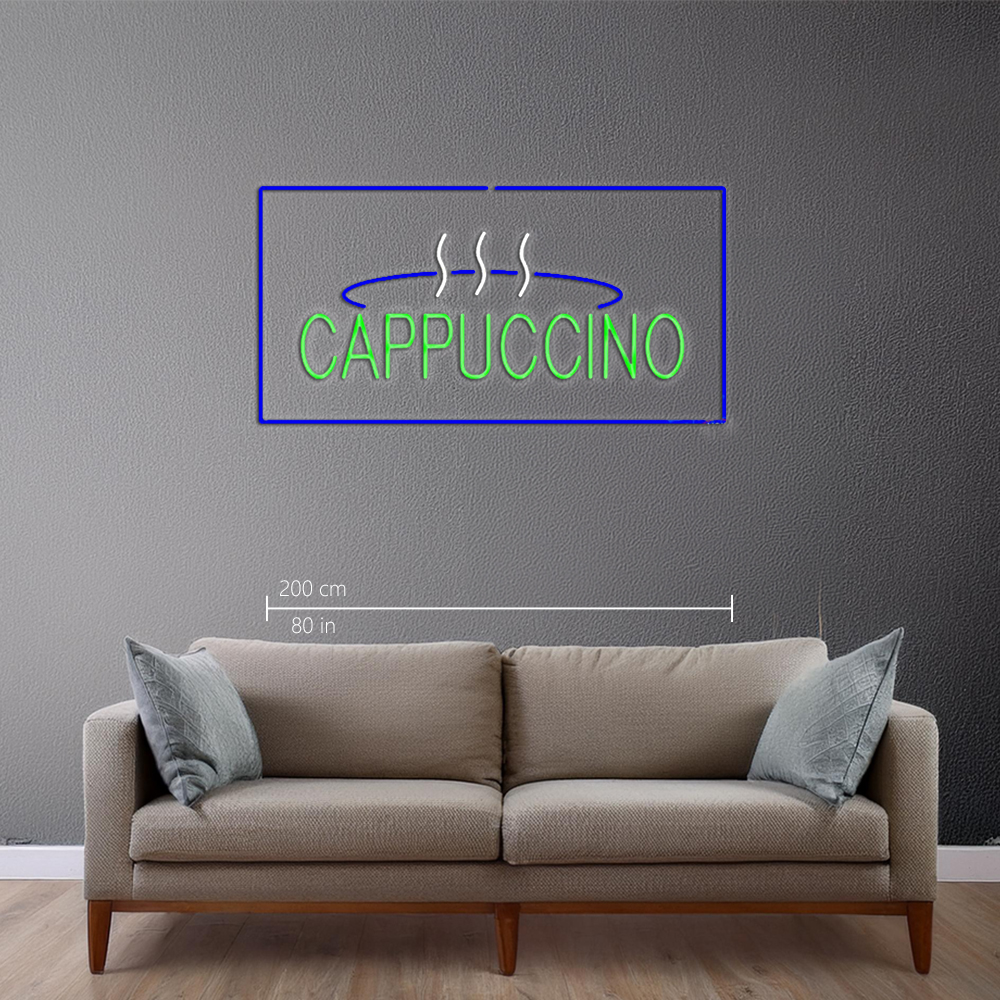 Cappuccino Logo Rectangle Blue Handmade Art Neon Sign