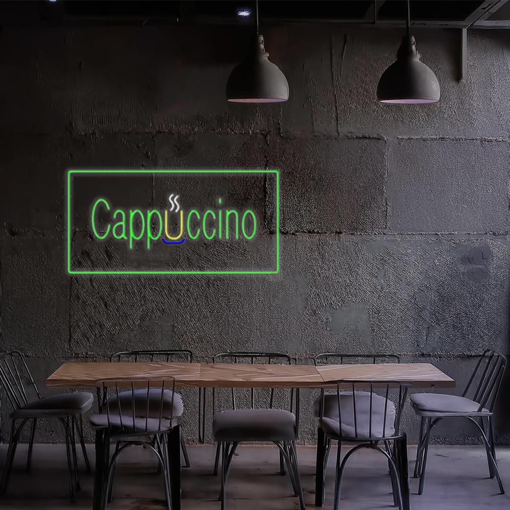 Cappuccino Rectangle Green Handmade Art Neon Sign