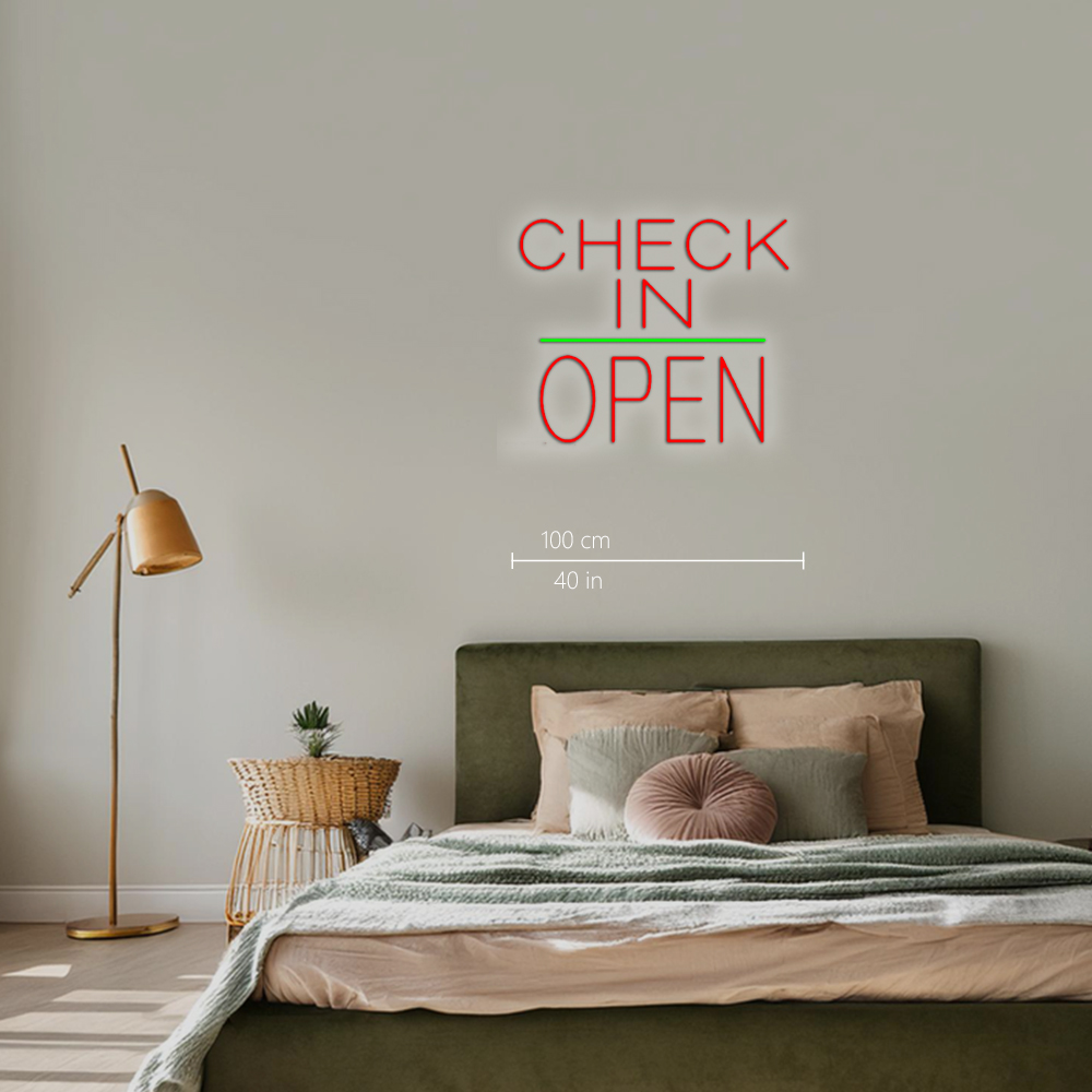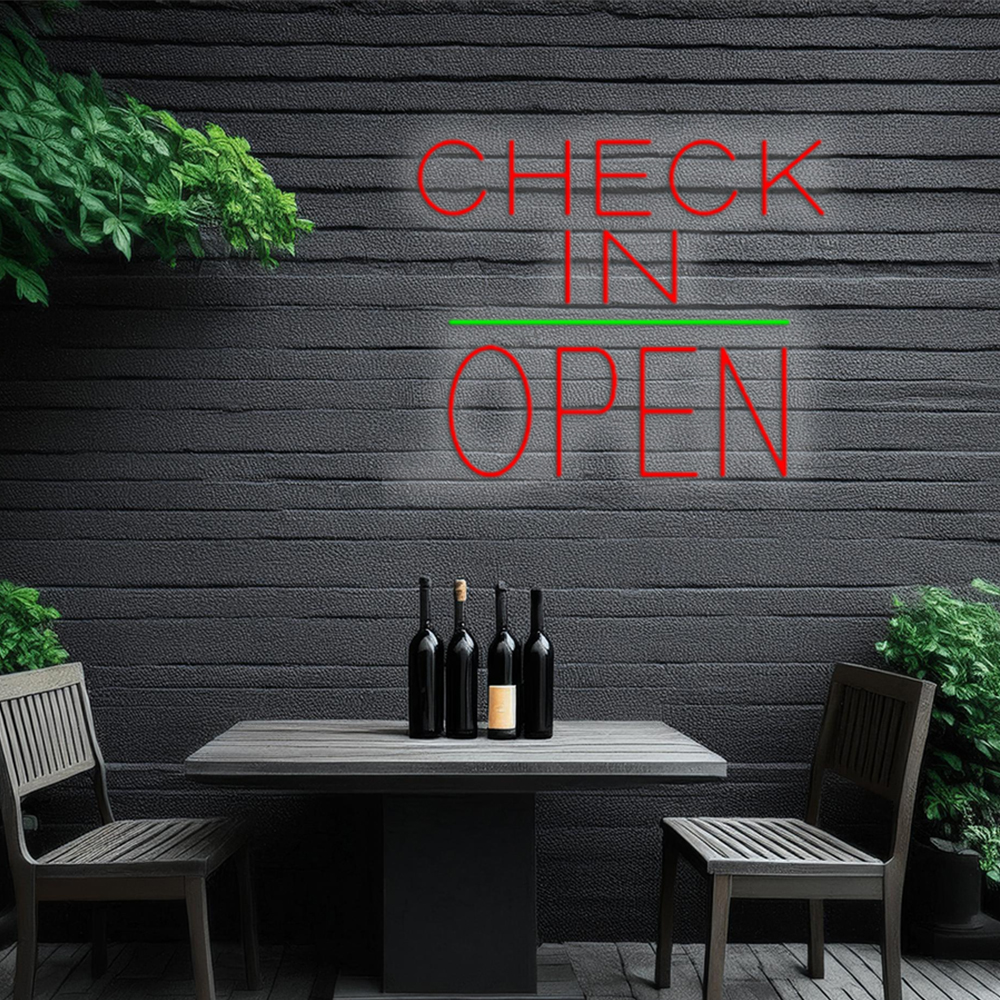 Check In Block Open Green Line Handmade Art Neon Signs