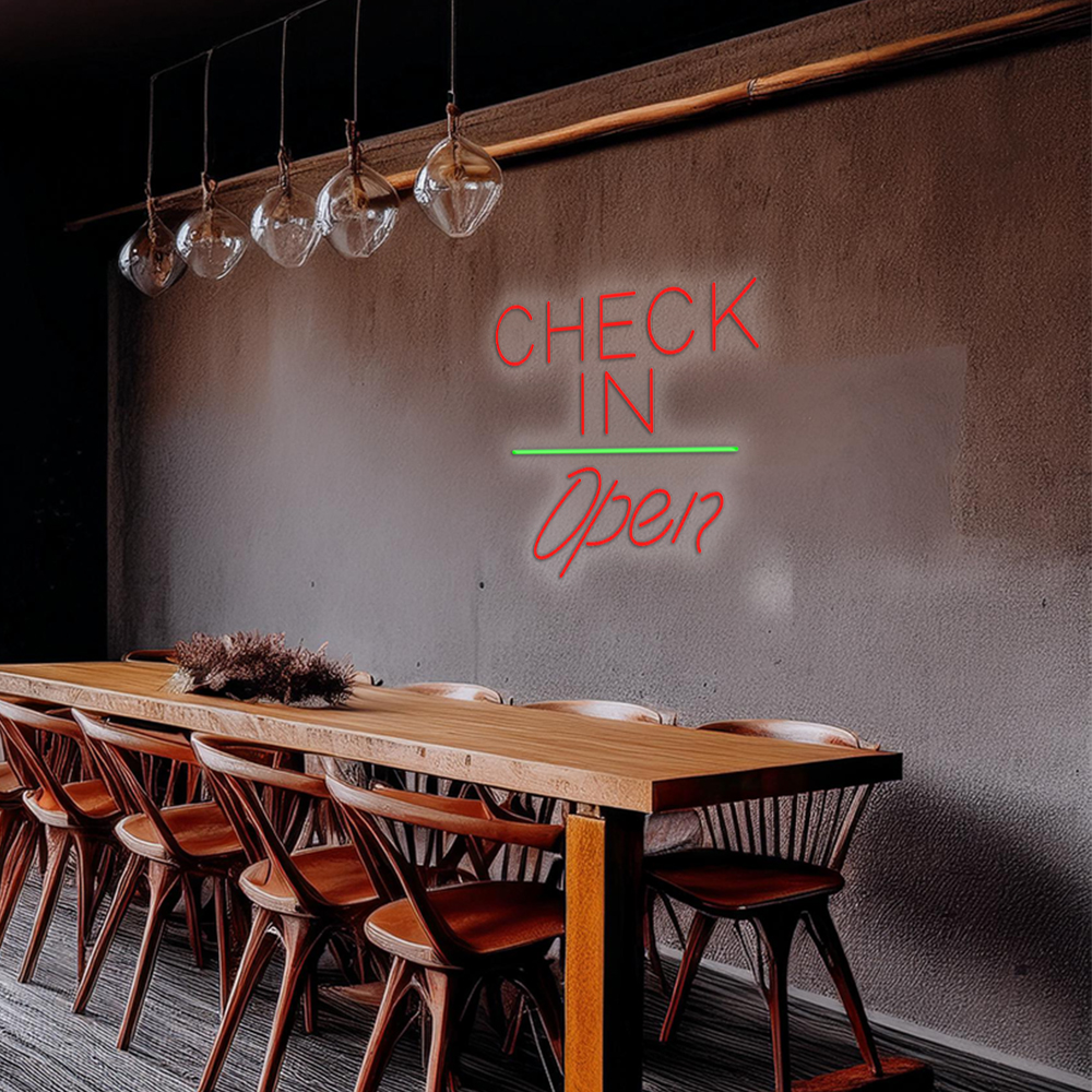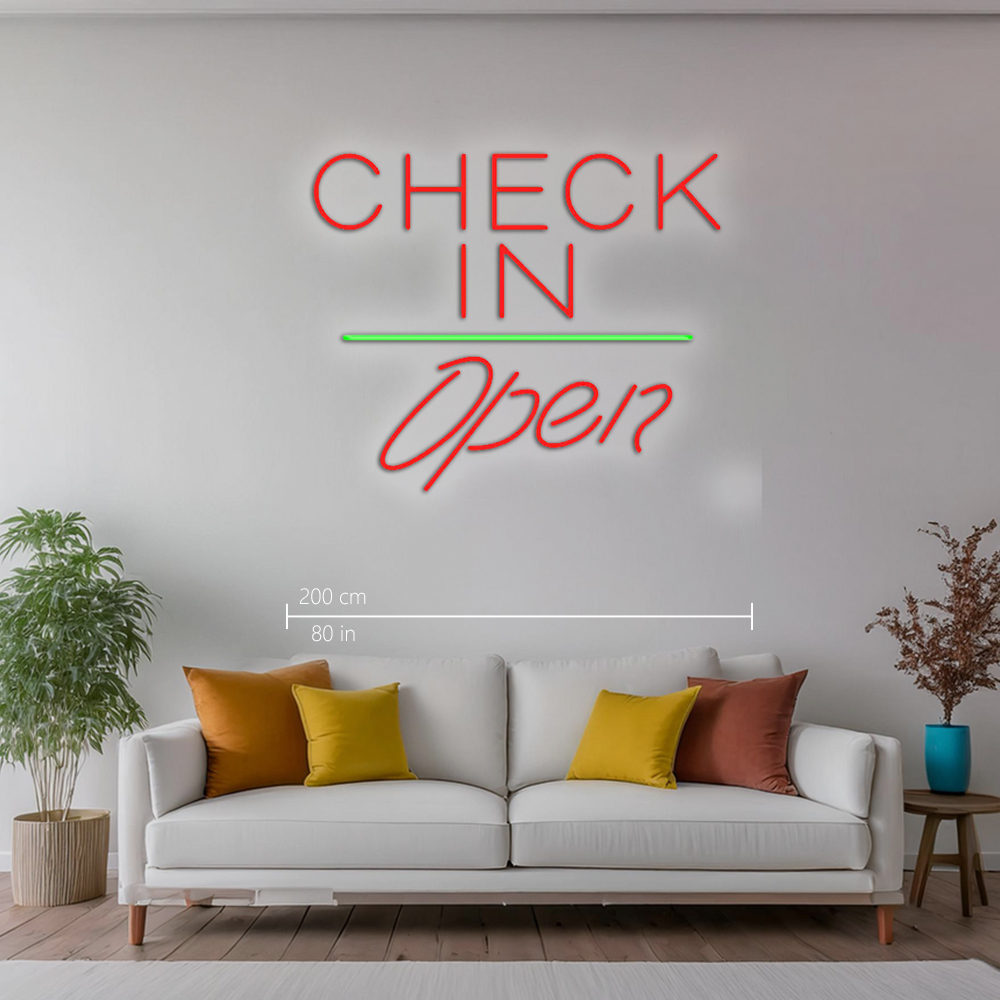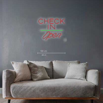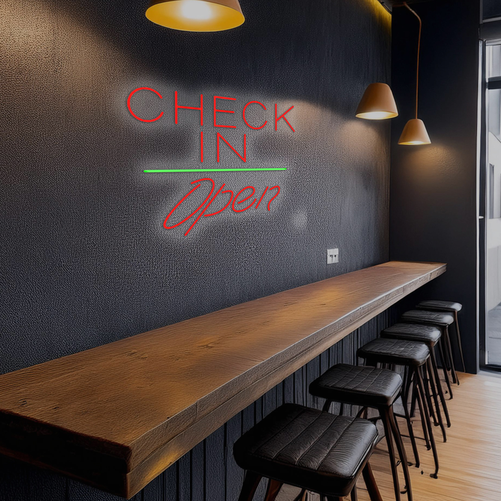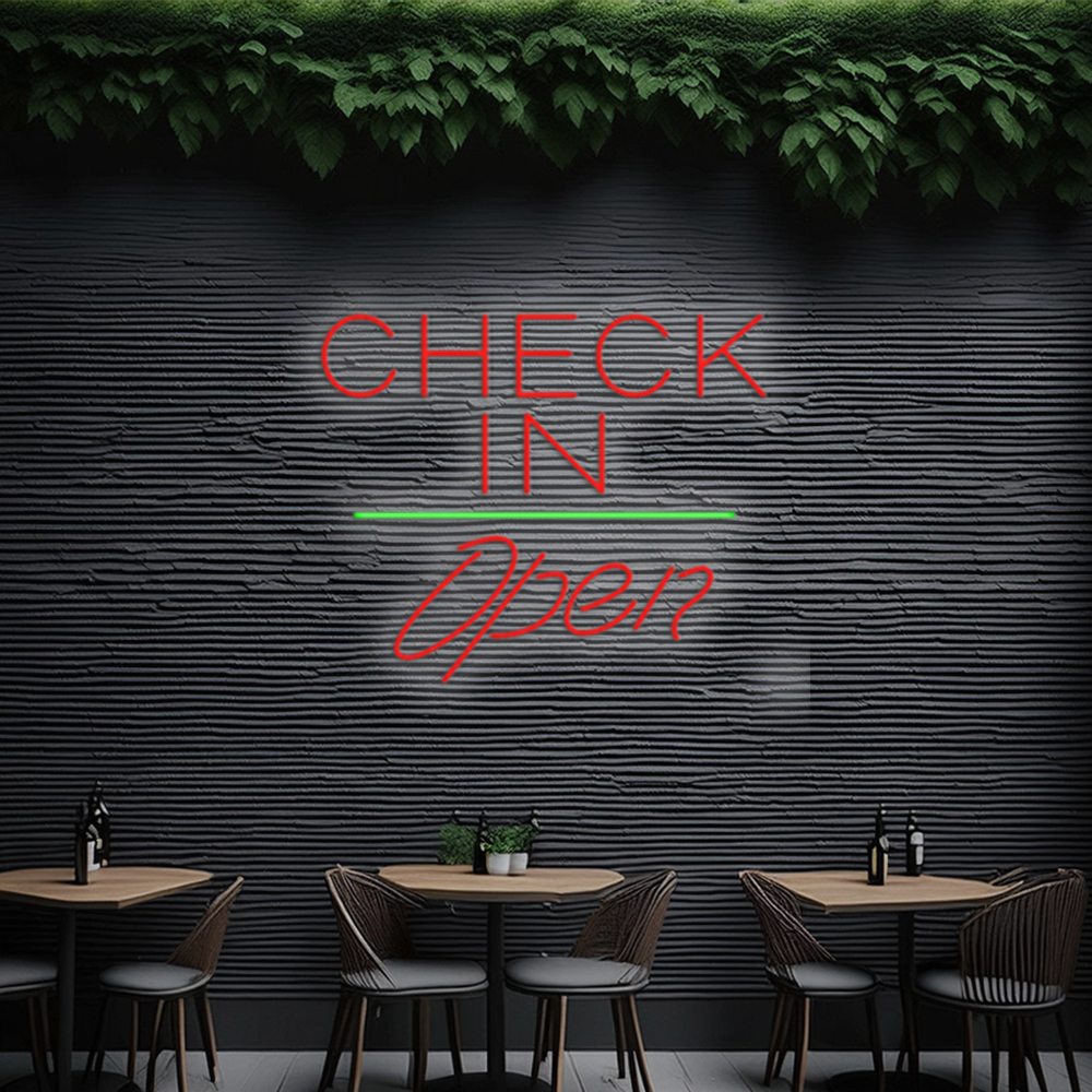 Check In Open White Line Handmade Art Neon Signs