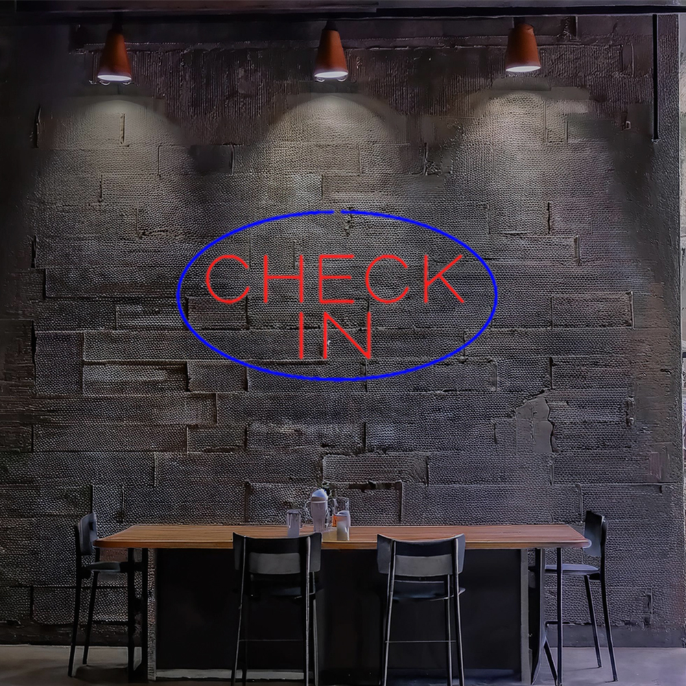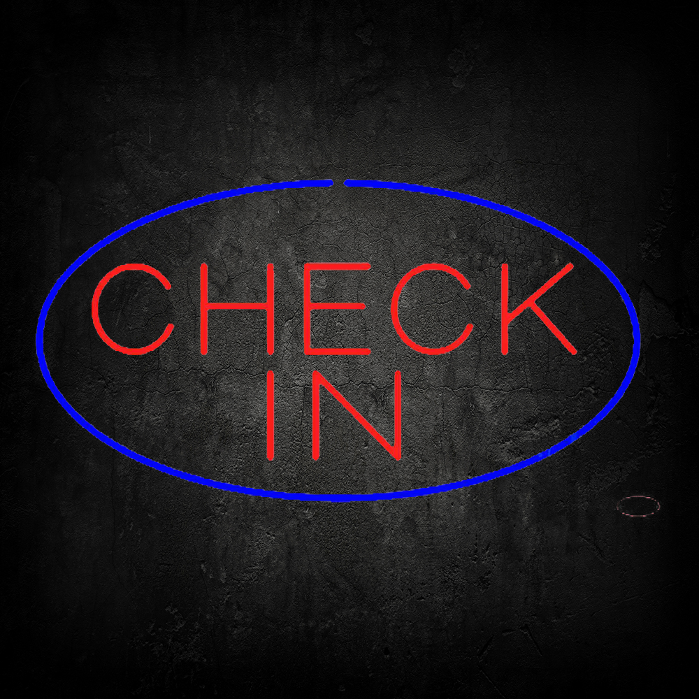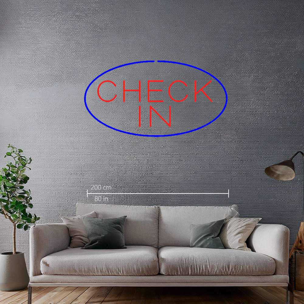 Check In Oval Blue Handmade Art Neon Sign wall art