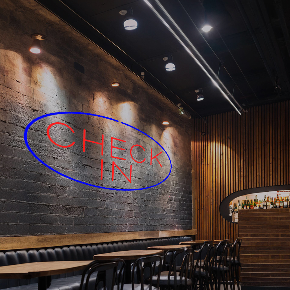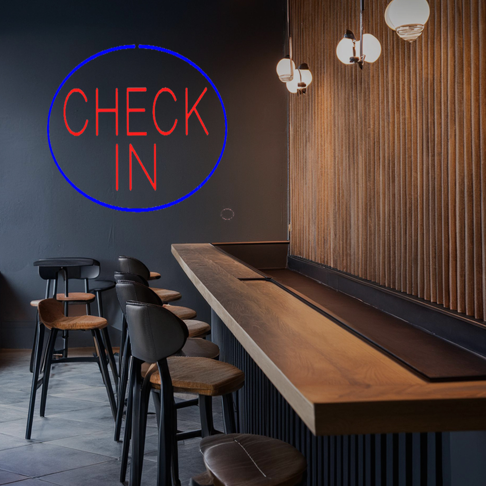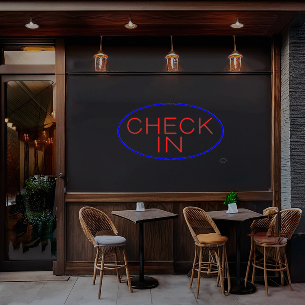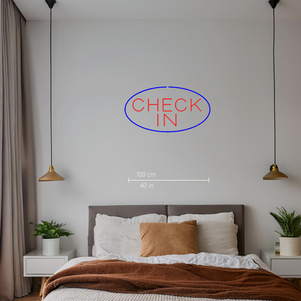 Check In Oval Blue Handmade Art Neon Sign wall art
