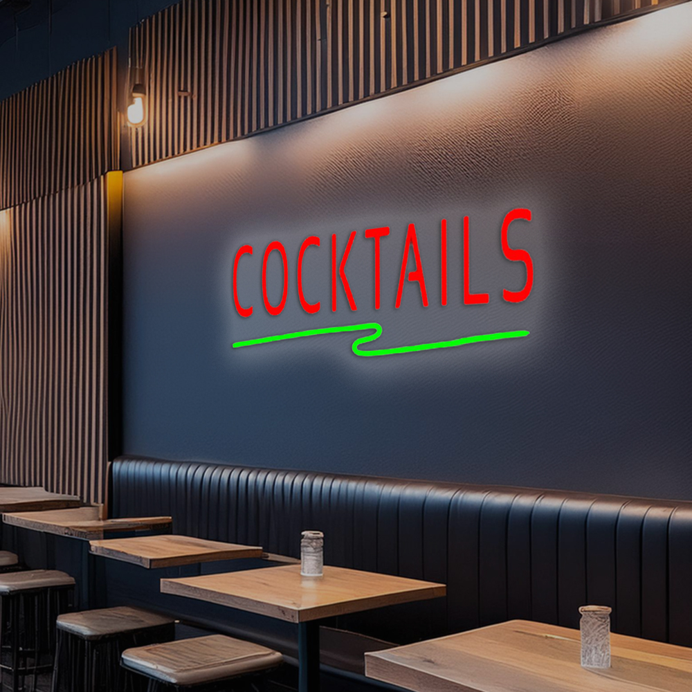 Cocktail With Zigzag Line Handmade Art Neon Signs
