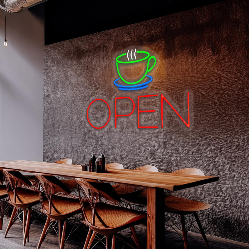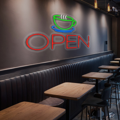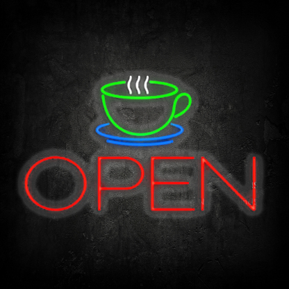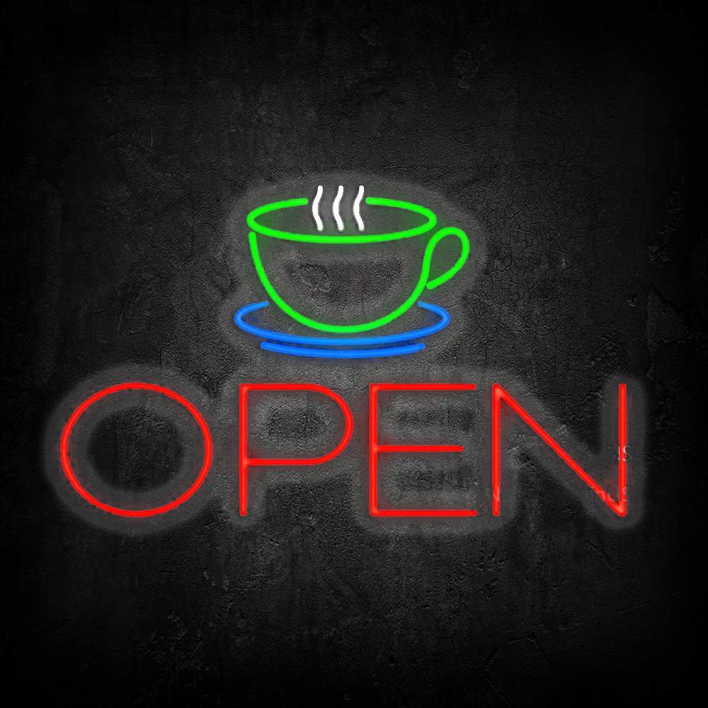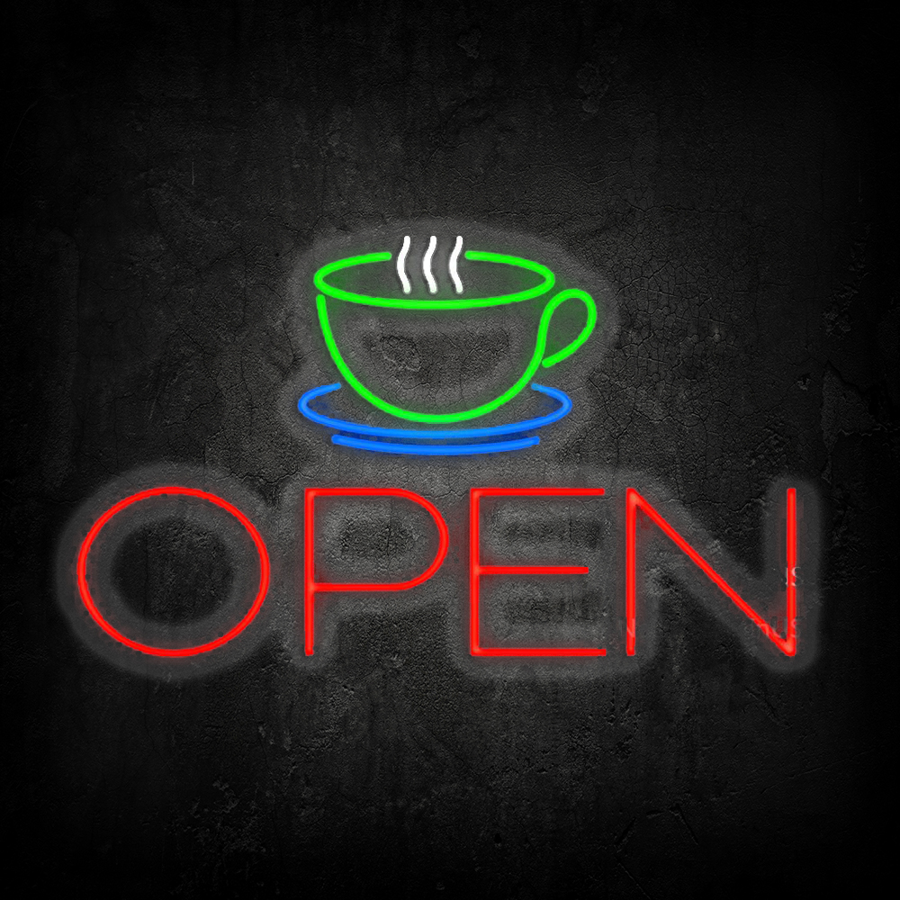 Coffee Cup Open Handmade Art Neon Signs