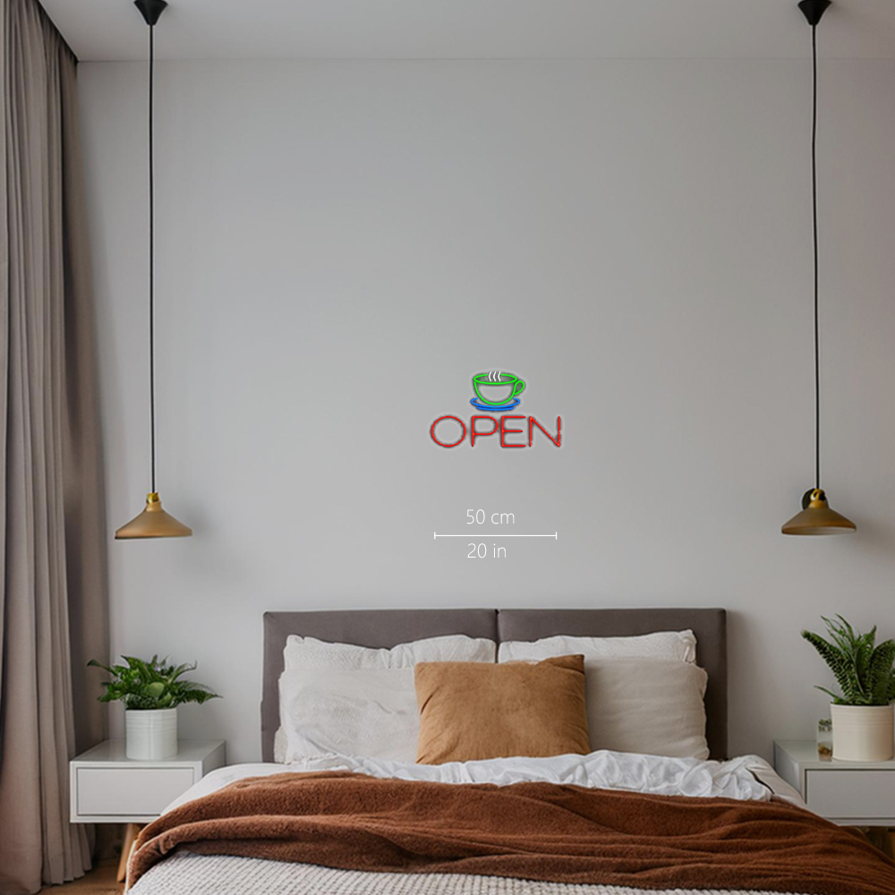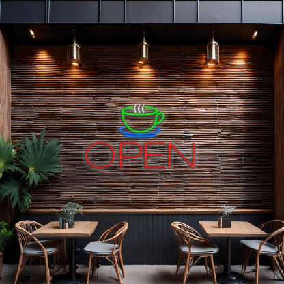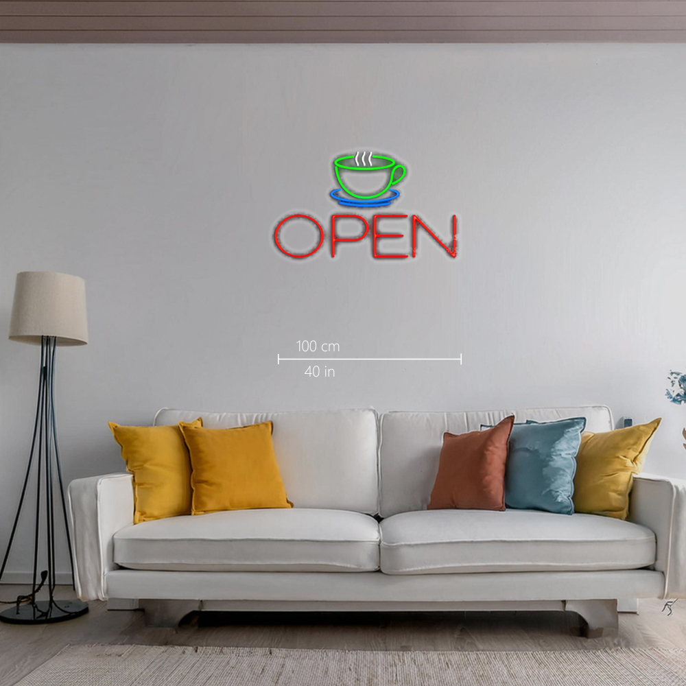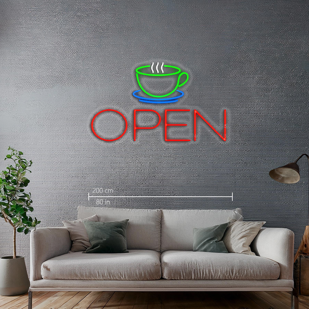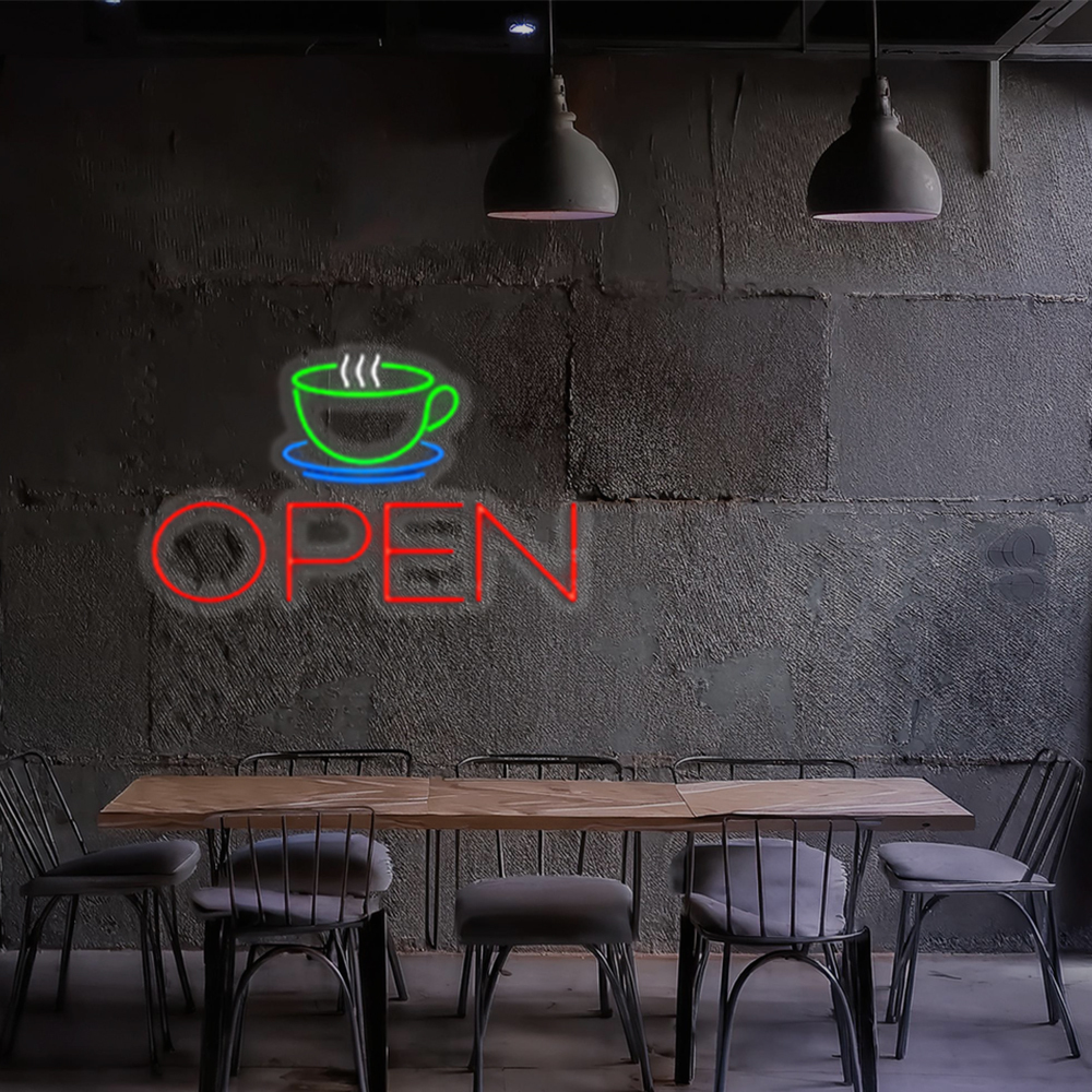 Coffee Cup Open Handmade Art Neon Signs