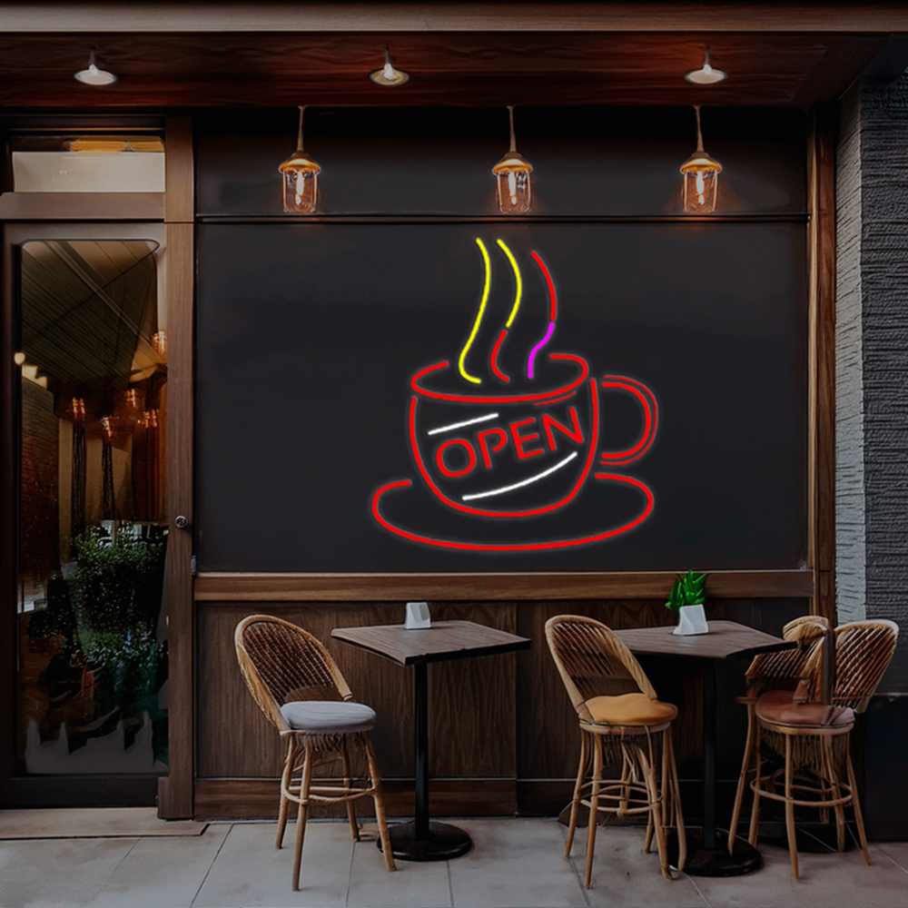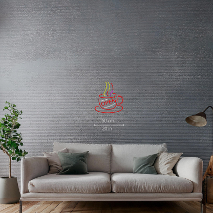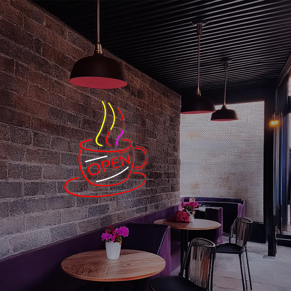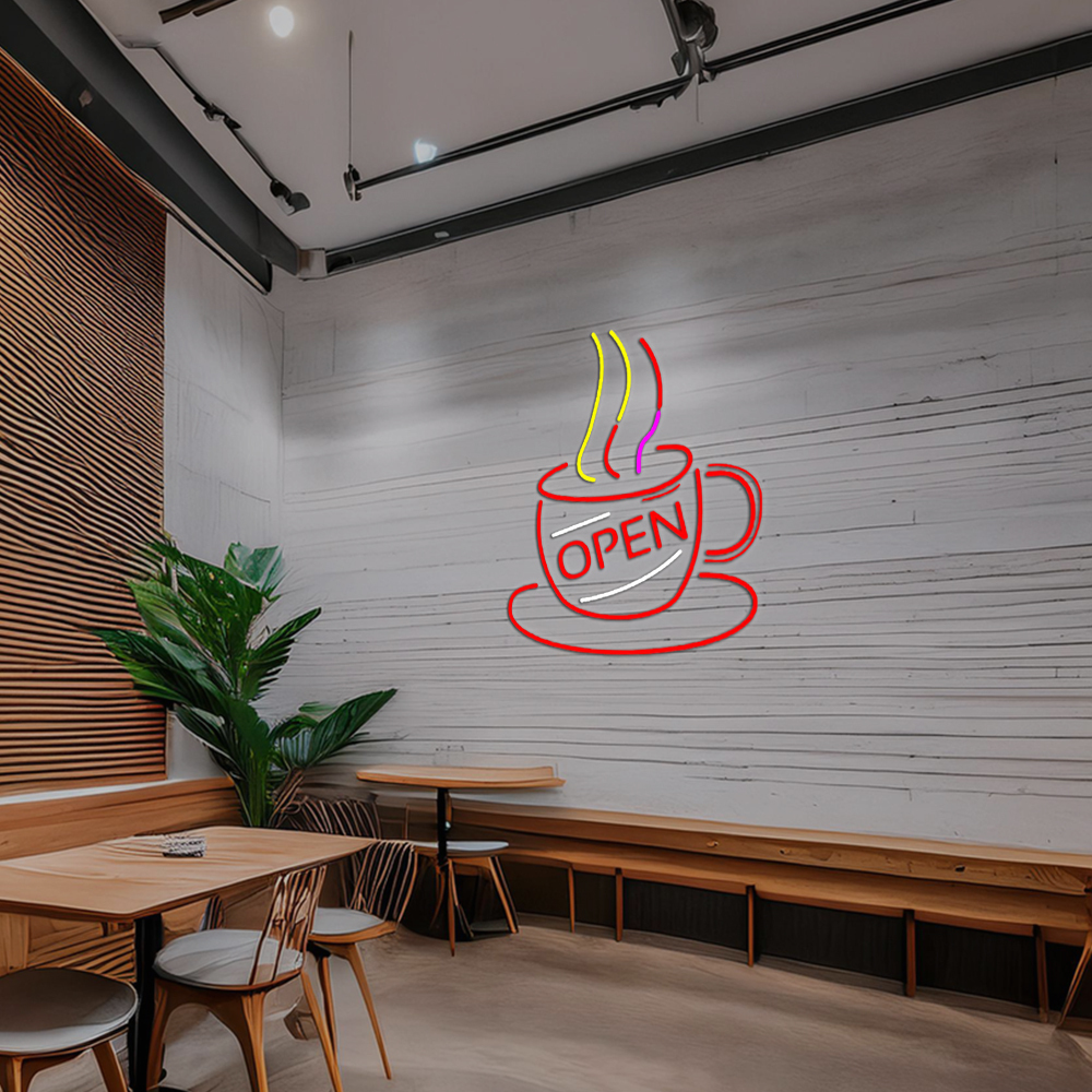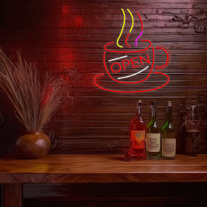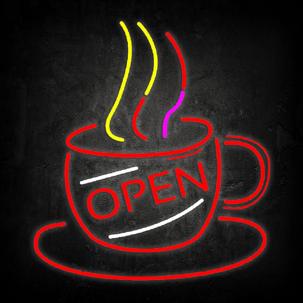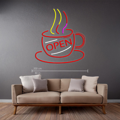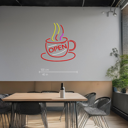 Coffee Cup With Open Handmade Art Neon Sign