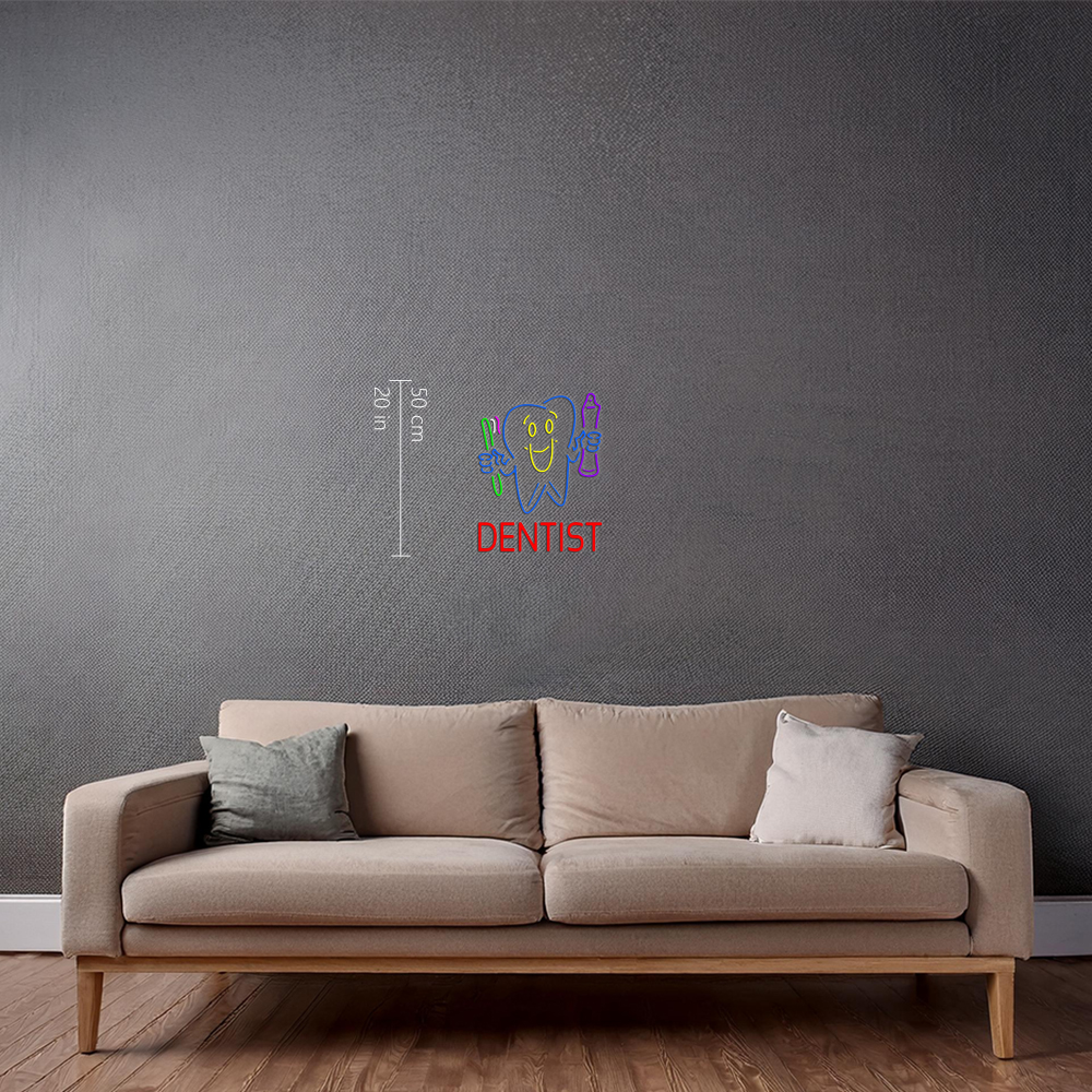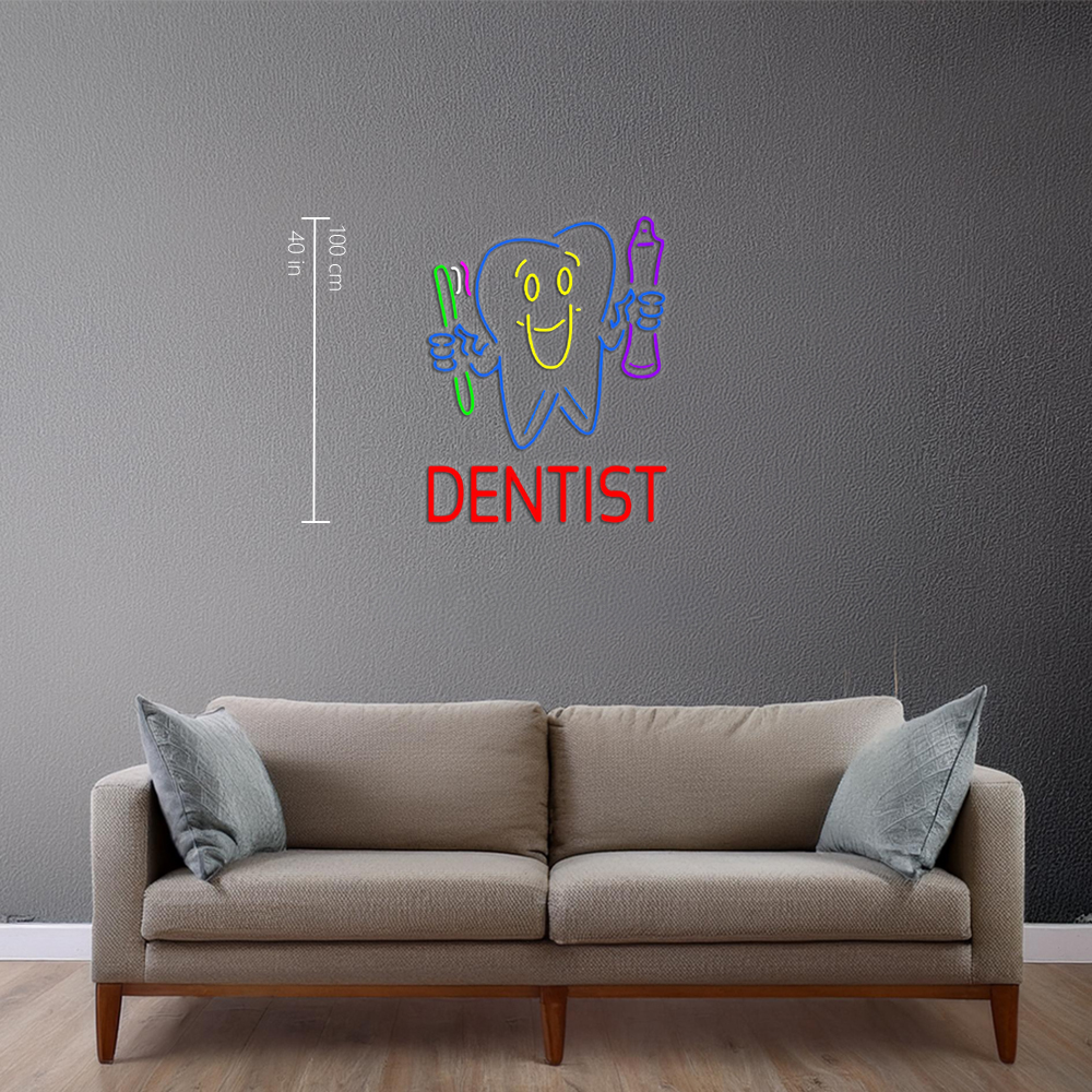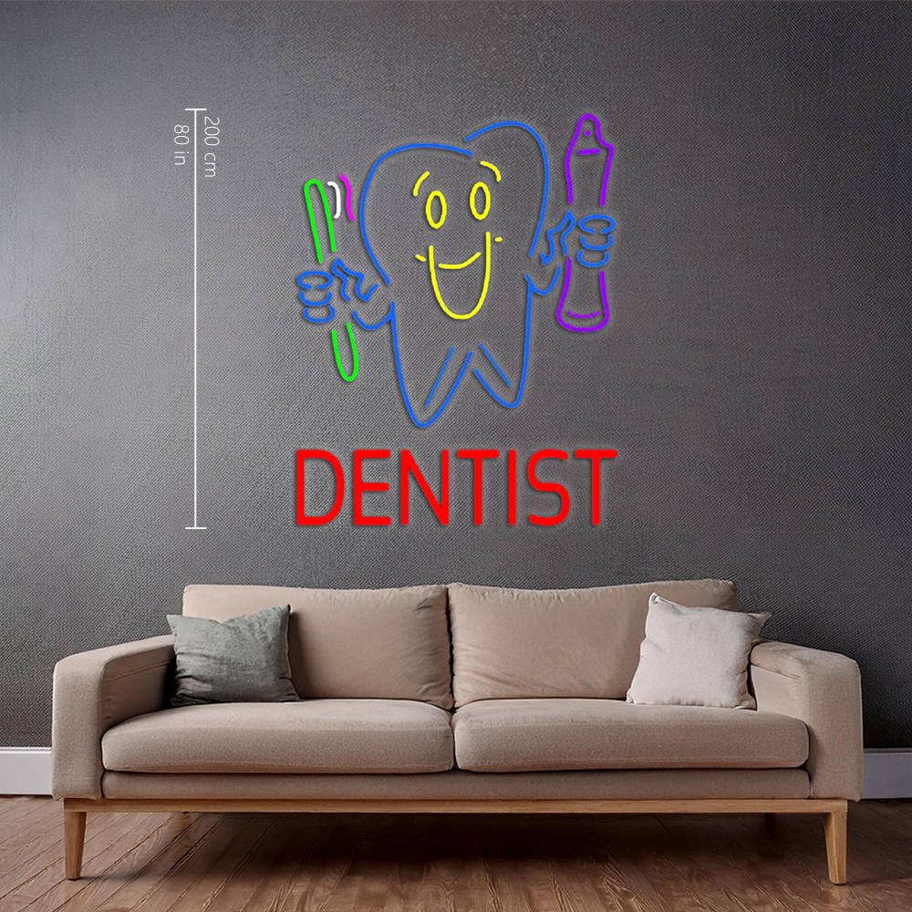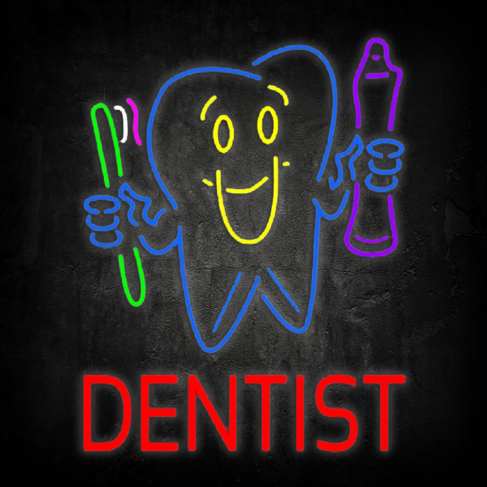 Dentist Tooth Logo With Brush And Paste Led neon signs