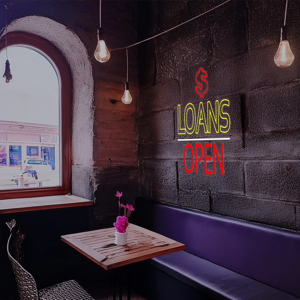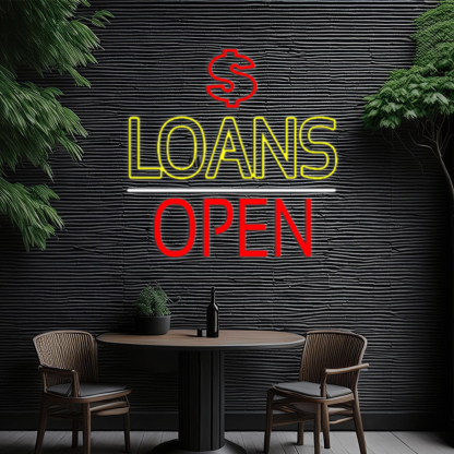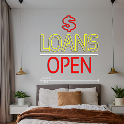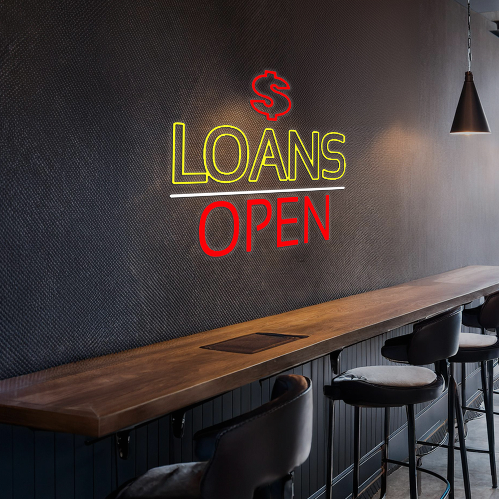 Double Stroke Loans With Dollar Logo Open Led Neon Signs