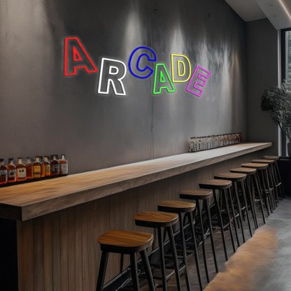 Double Stroke Multicolored Arcade Handmade Art Neon Sign
