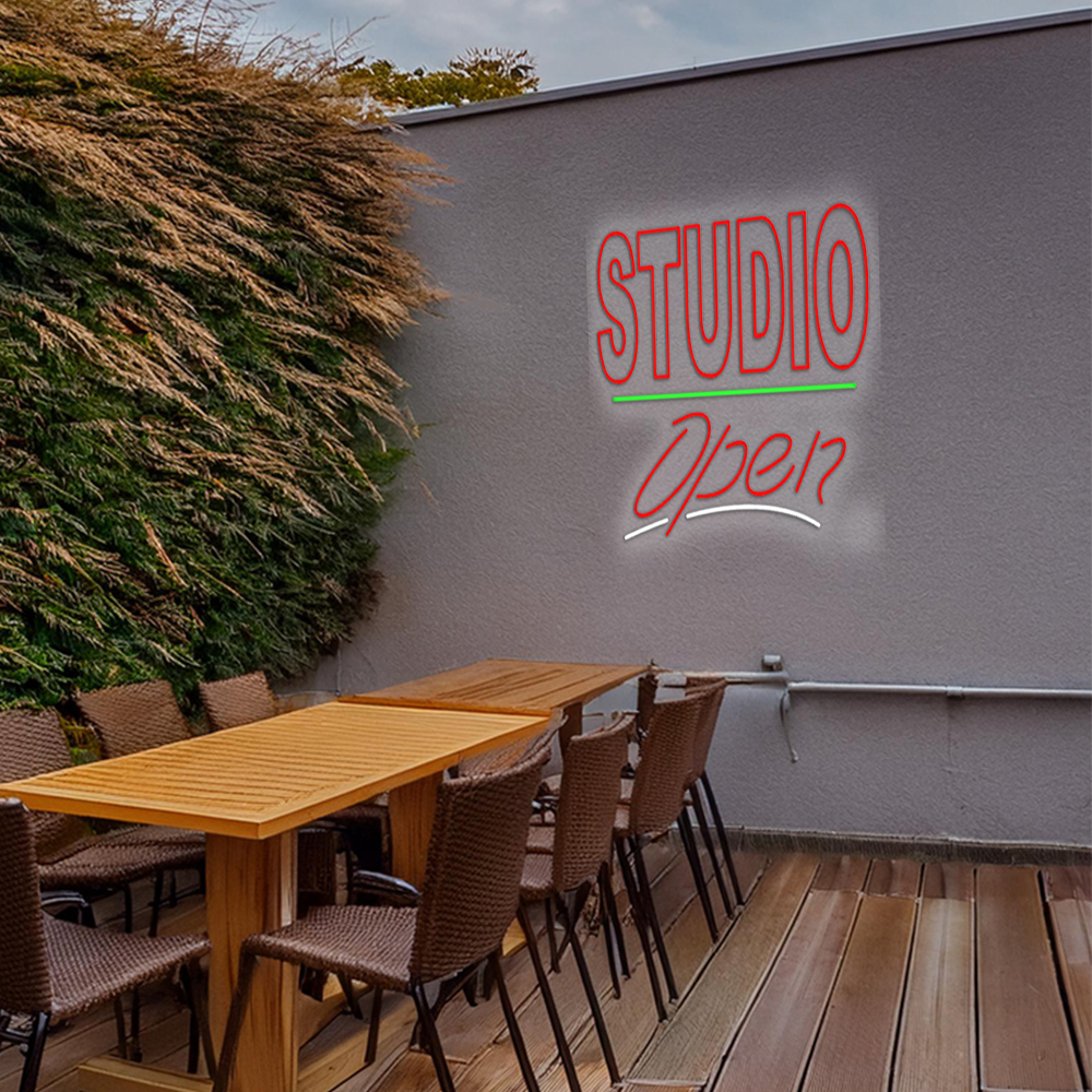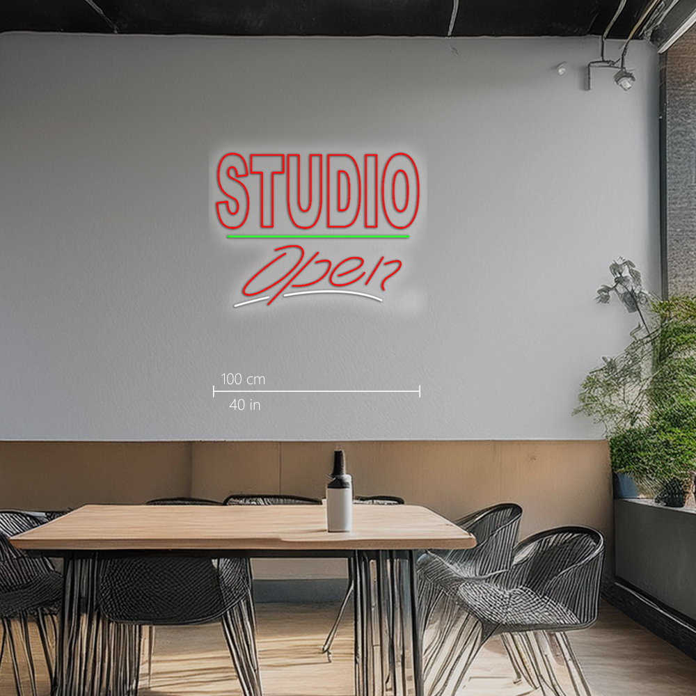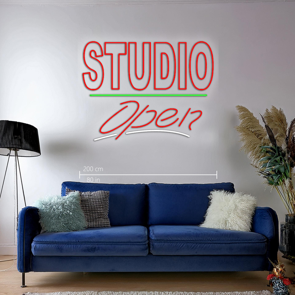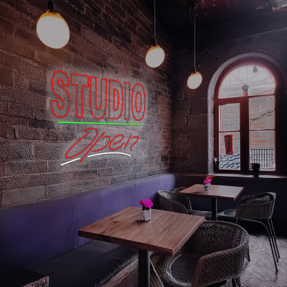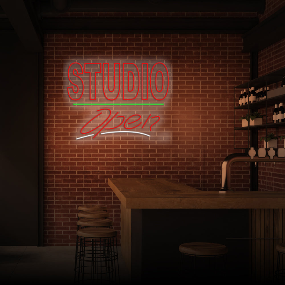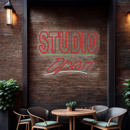Double Stroke Red Studio With Open Handmade Led Art Neon Sign