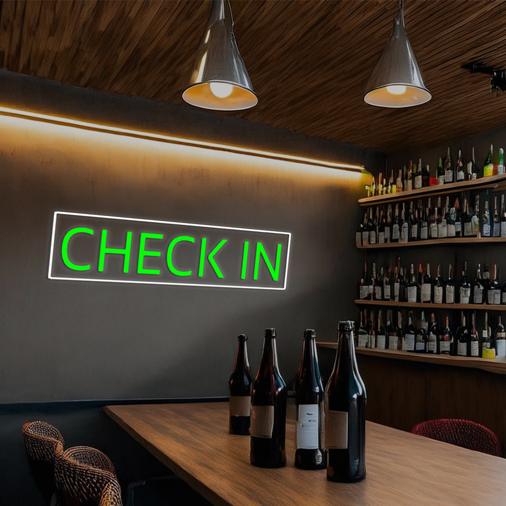 Green Check In Handmade Art Neon Sign