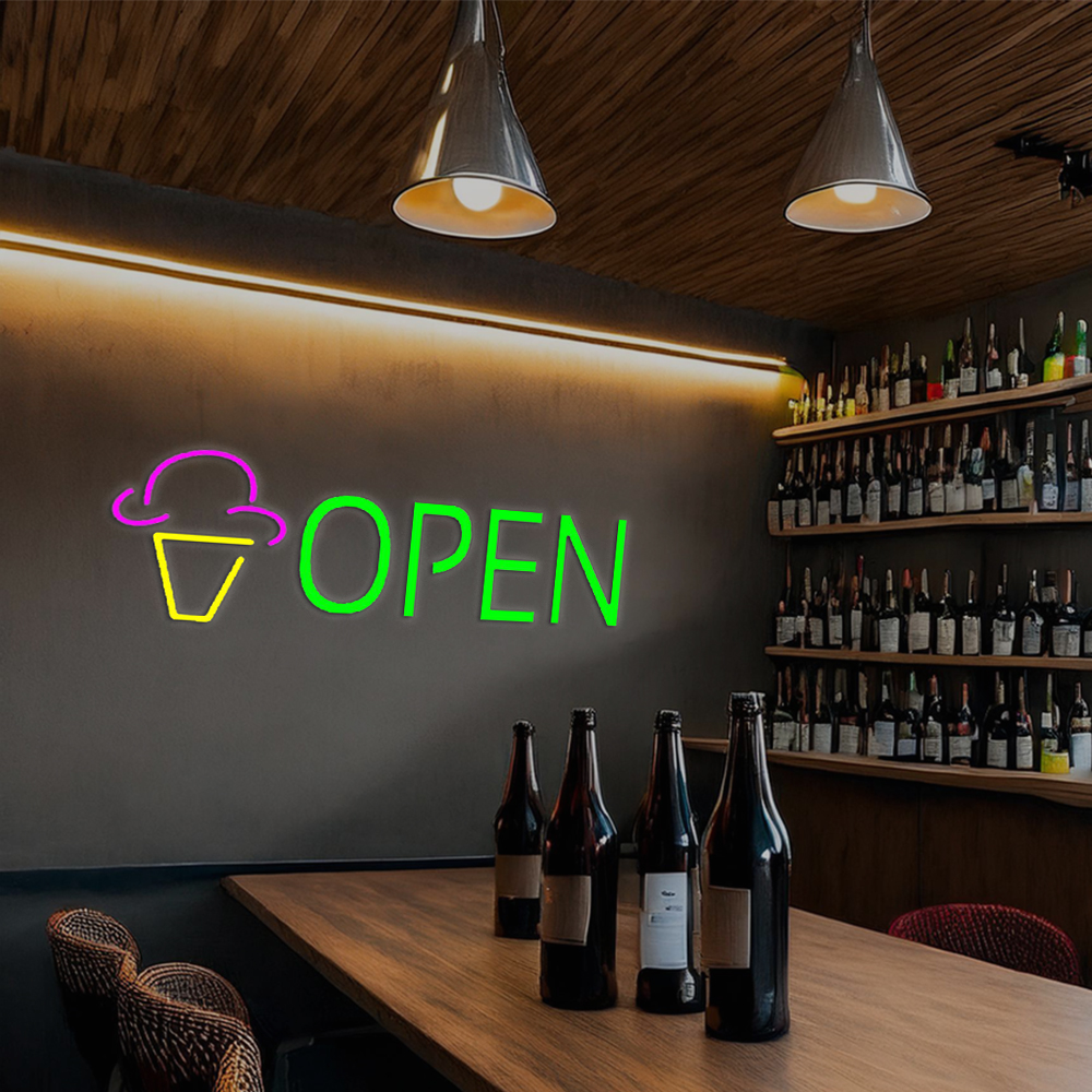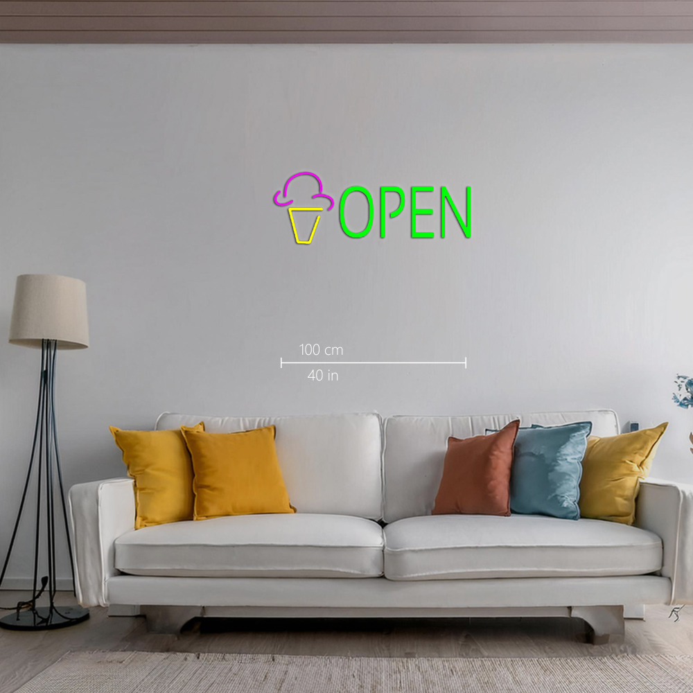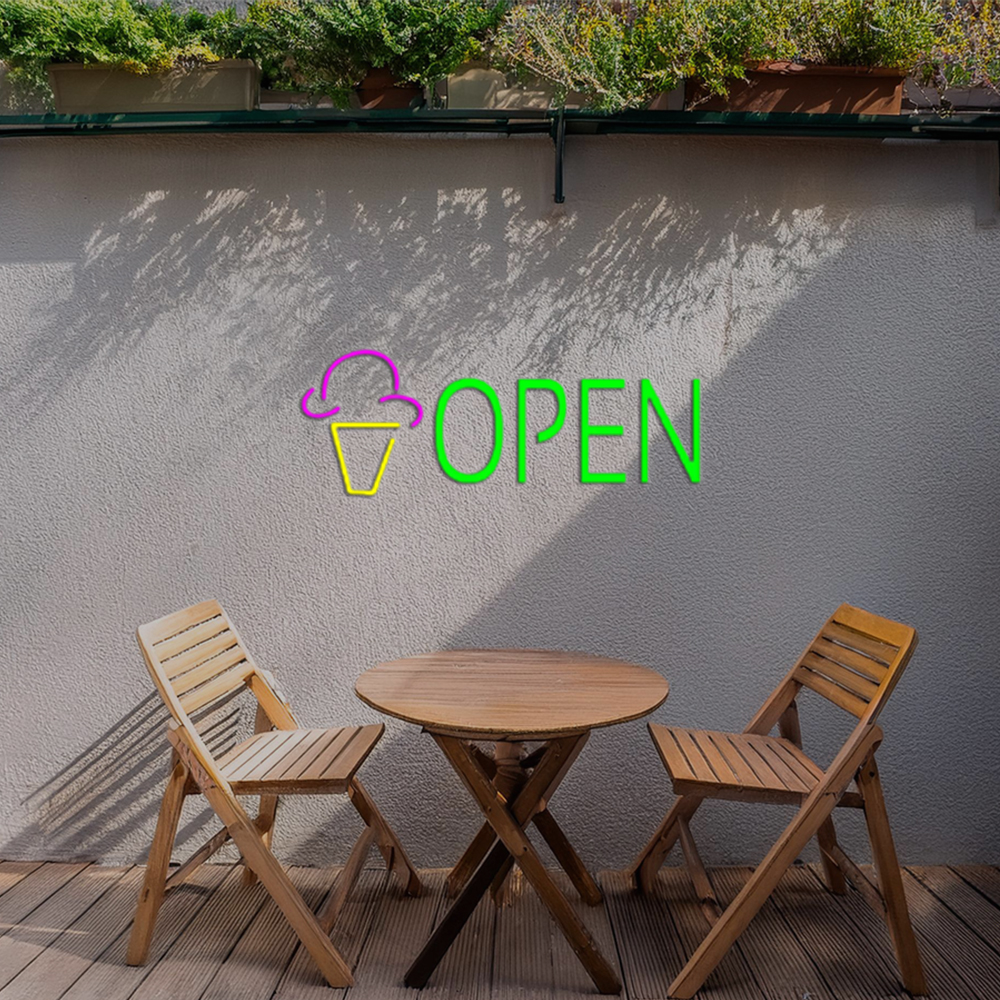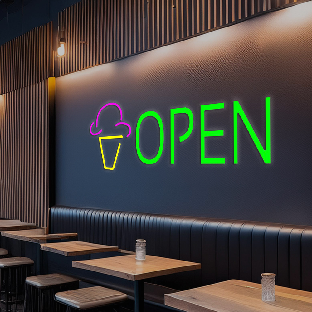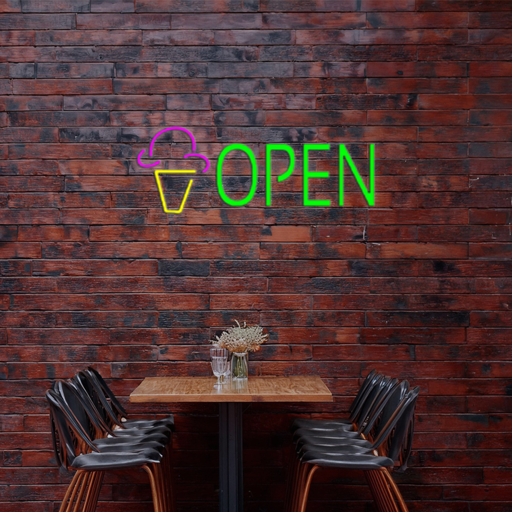 Green Open Ice Cream Cone Handmade Art Neon Sign