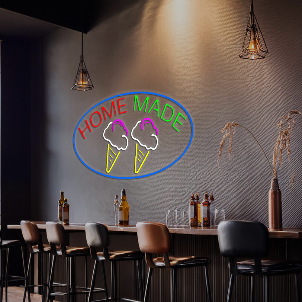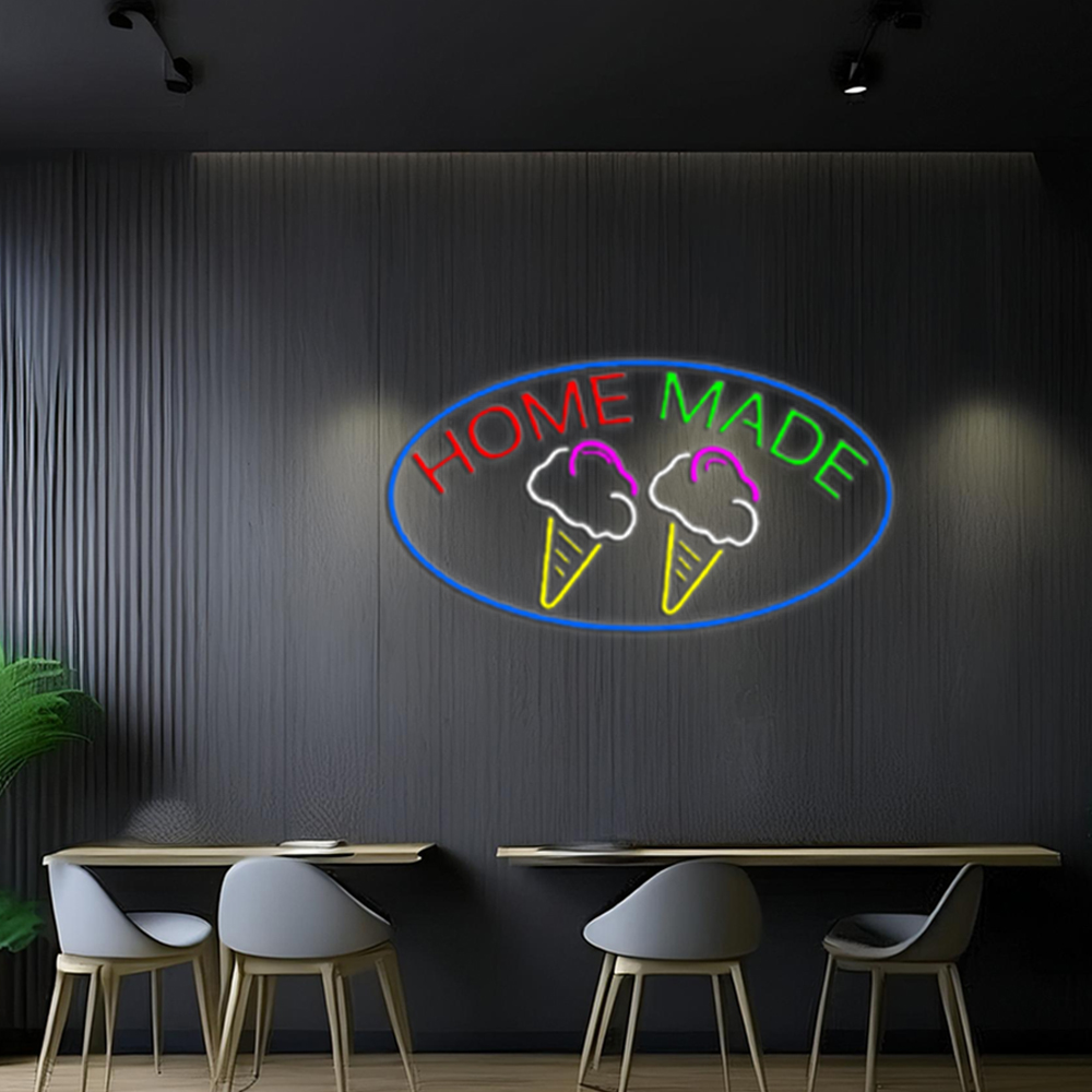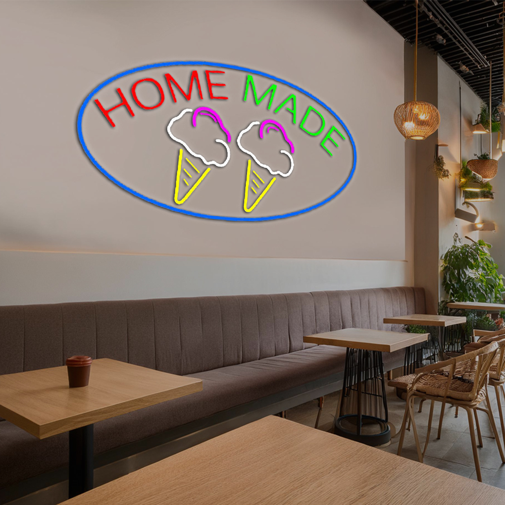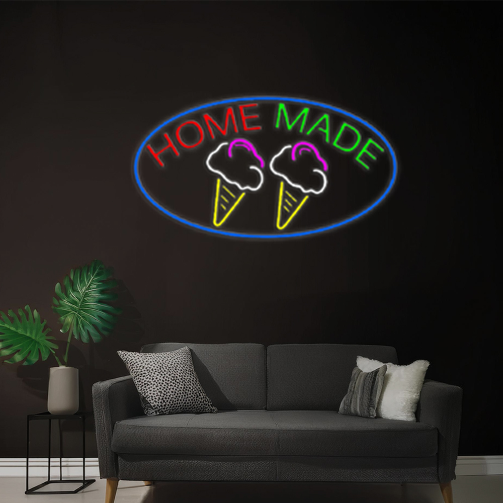 Home Made Ice Cream Cone Handmade Art Neon Sign
