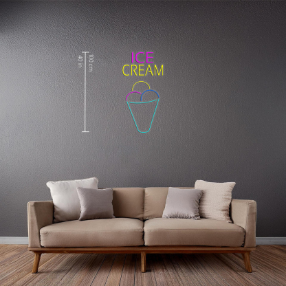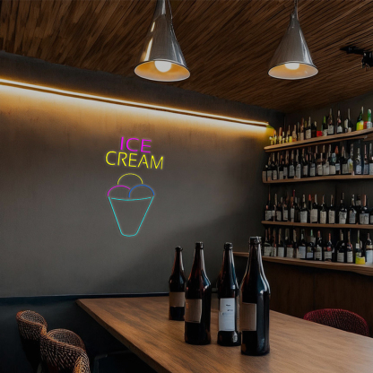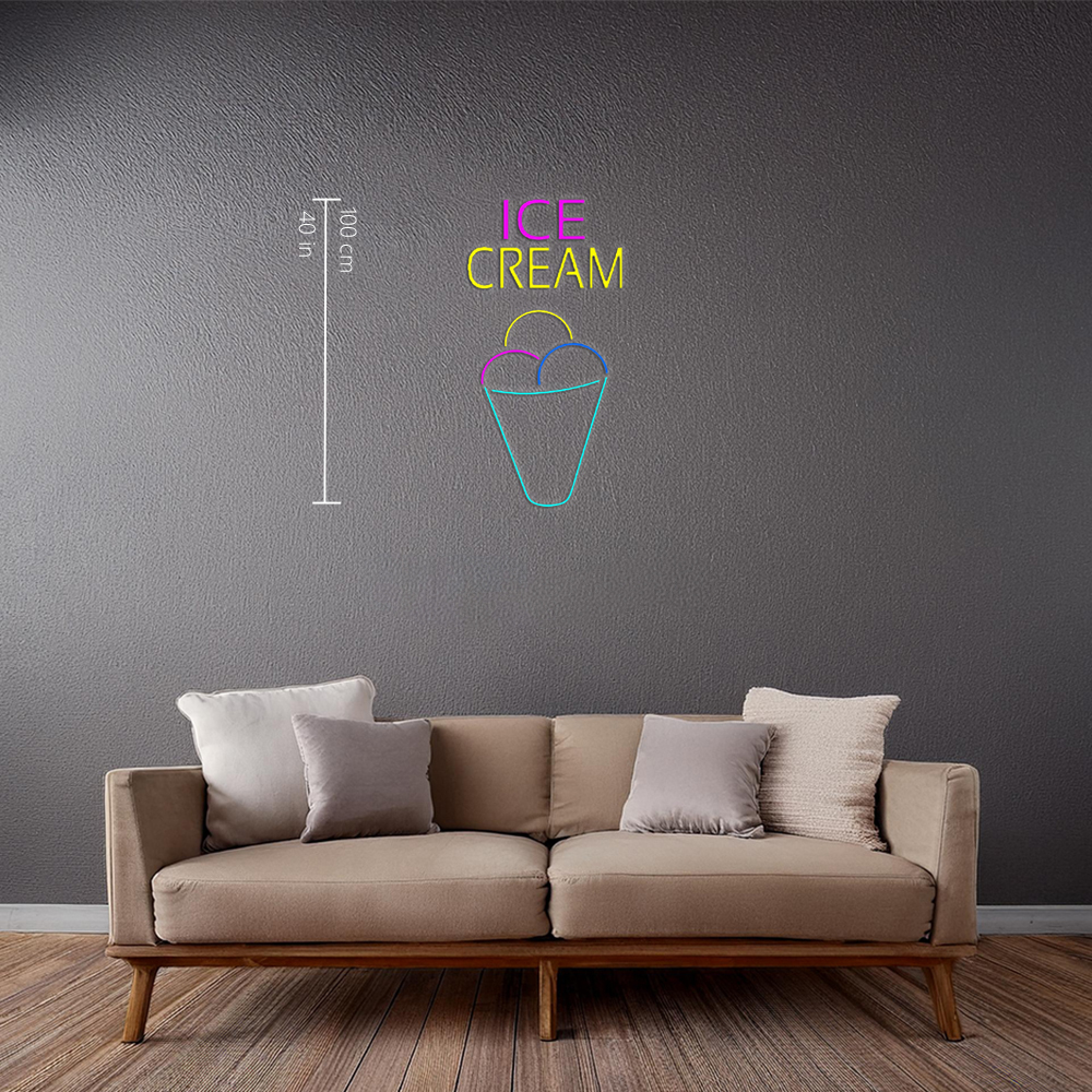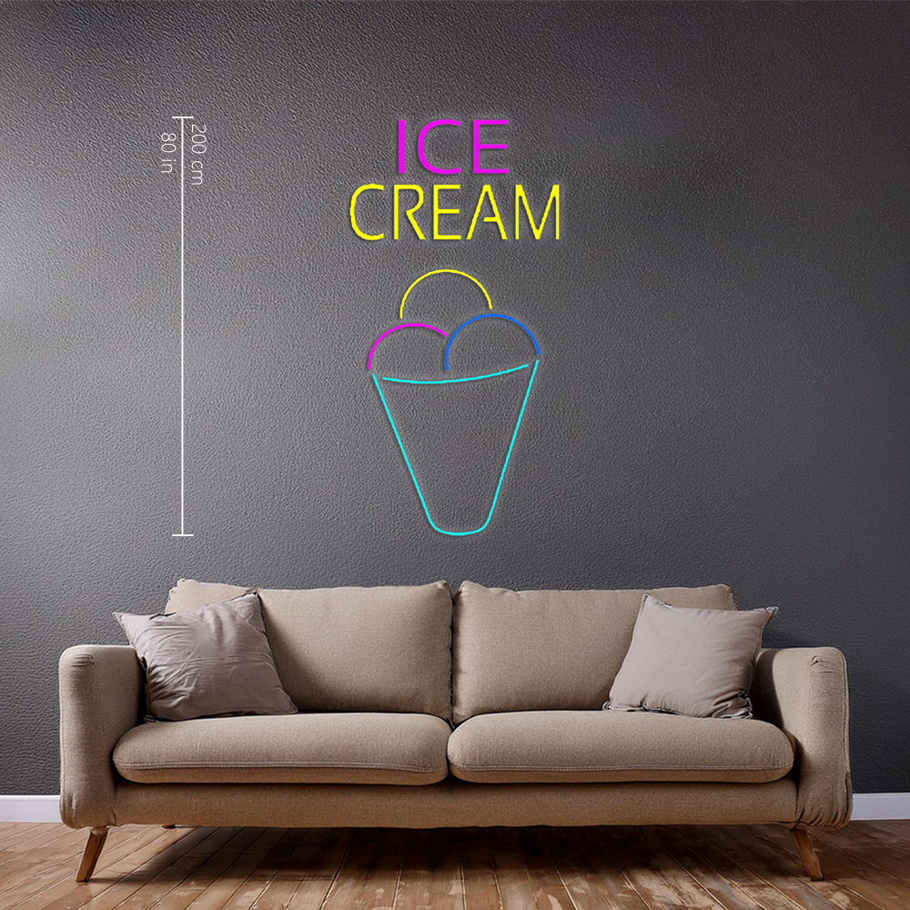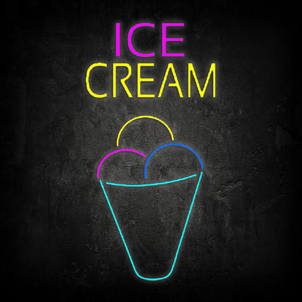 Ice Cream Multicolored Cone Handmade Art Neon Sign