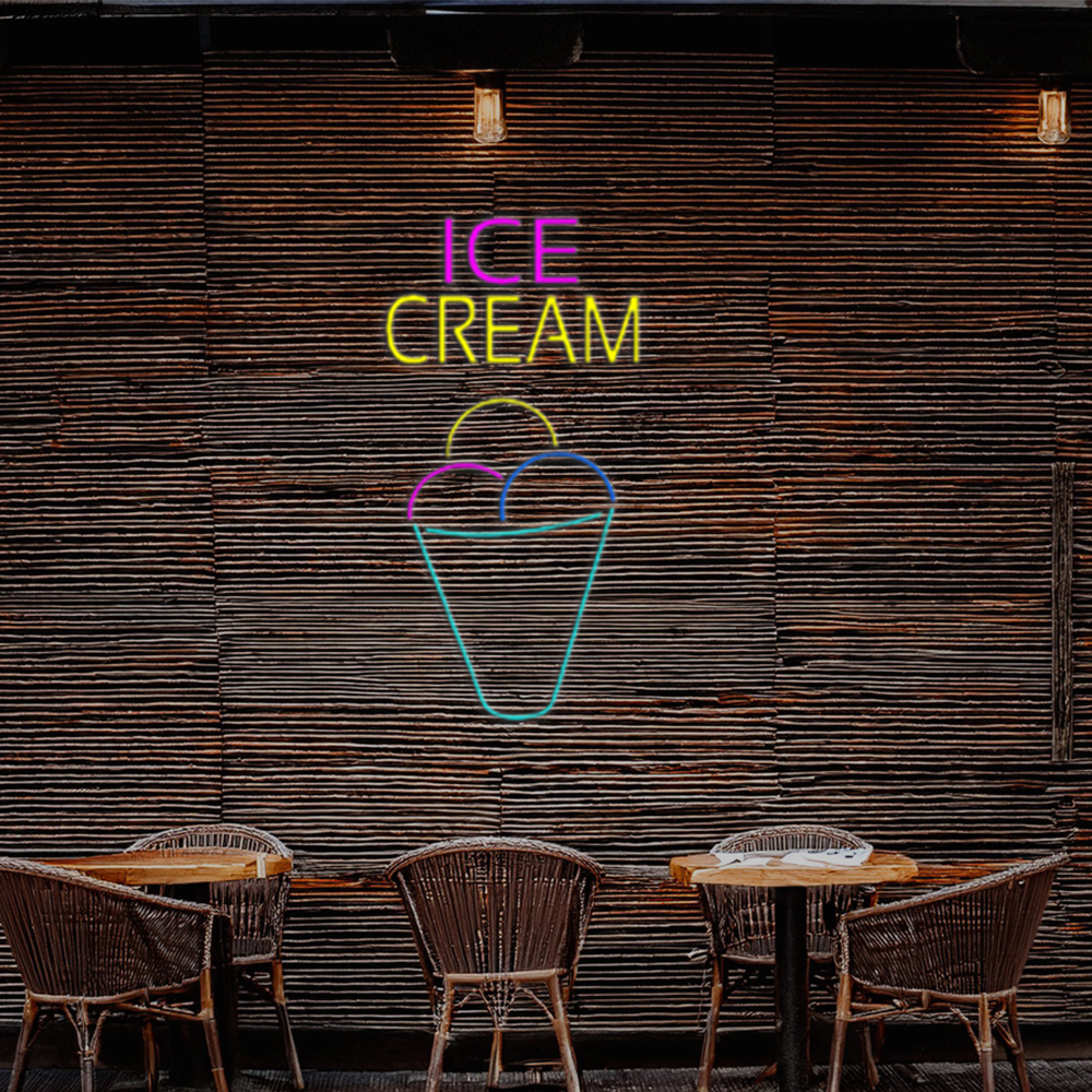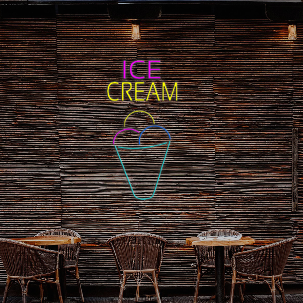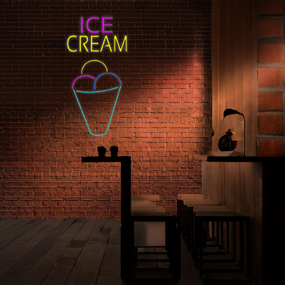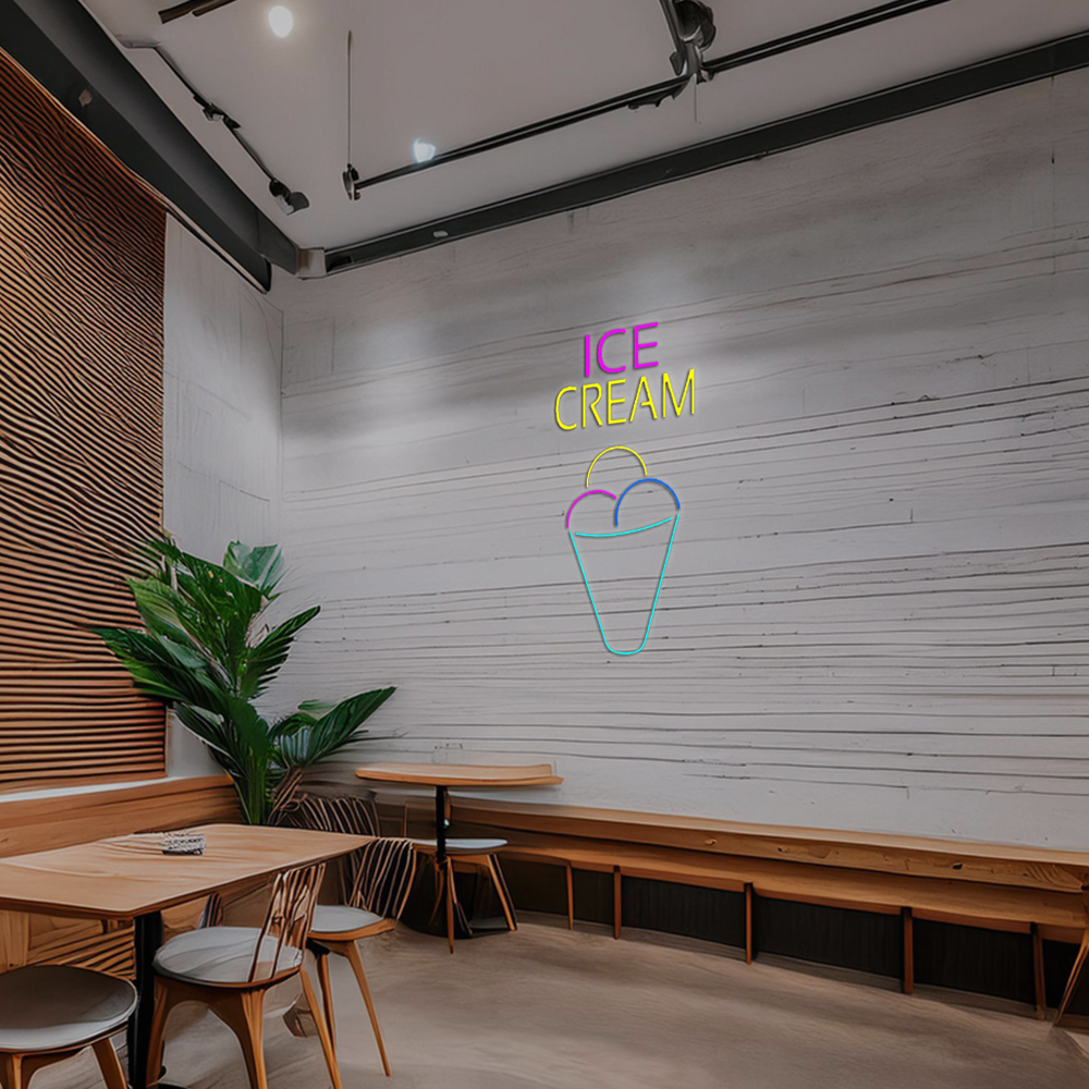 Ice Cream Multicolored Cone Handmade Art Neon Sign