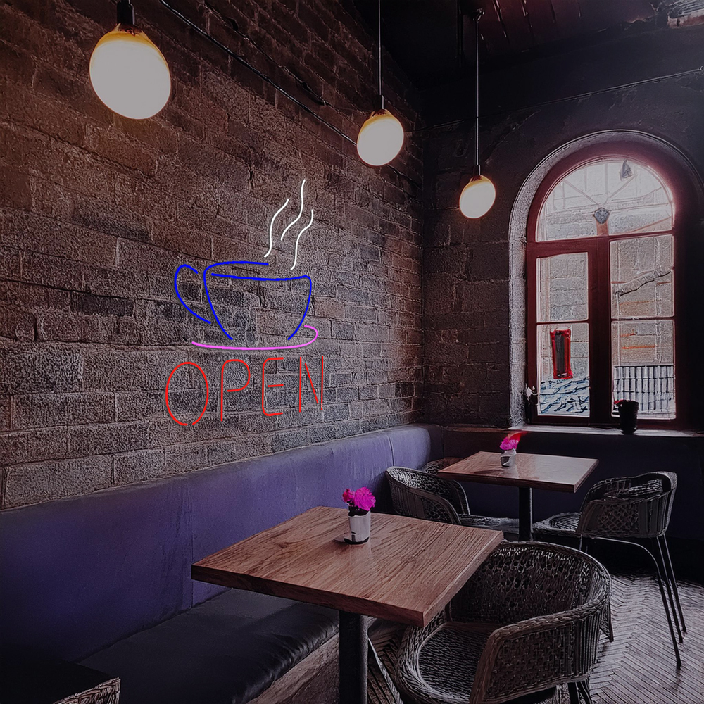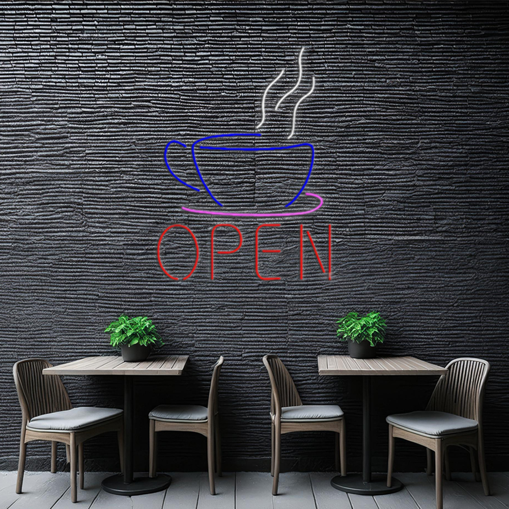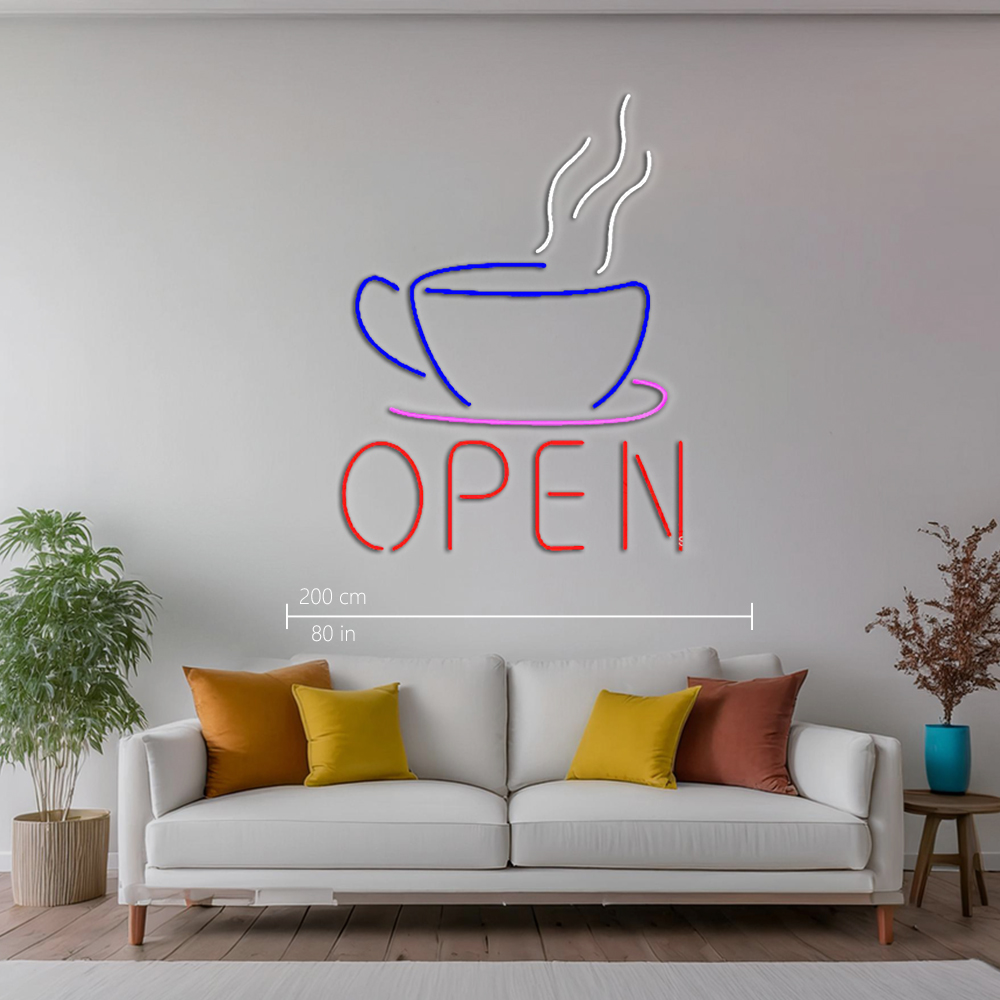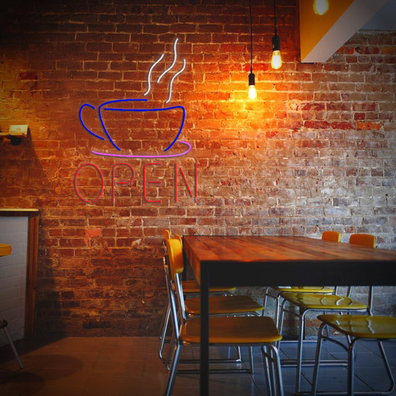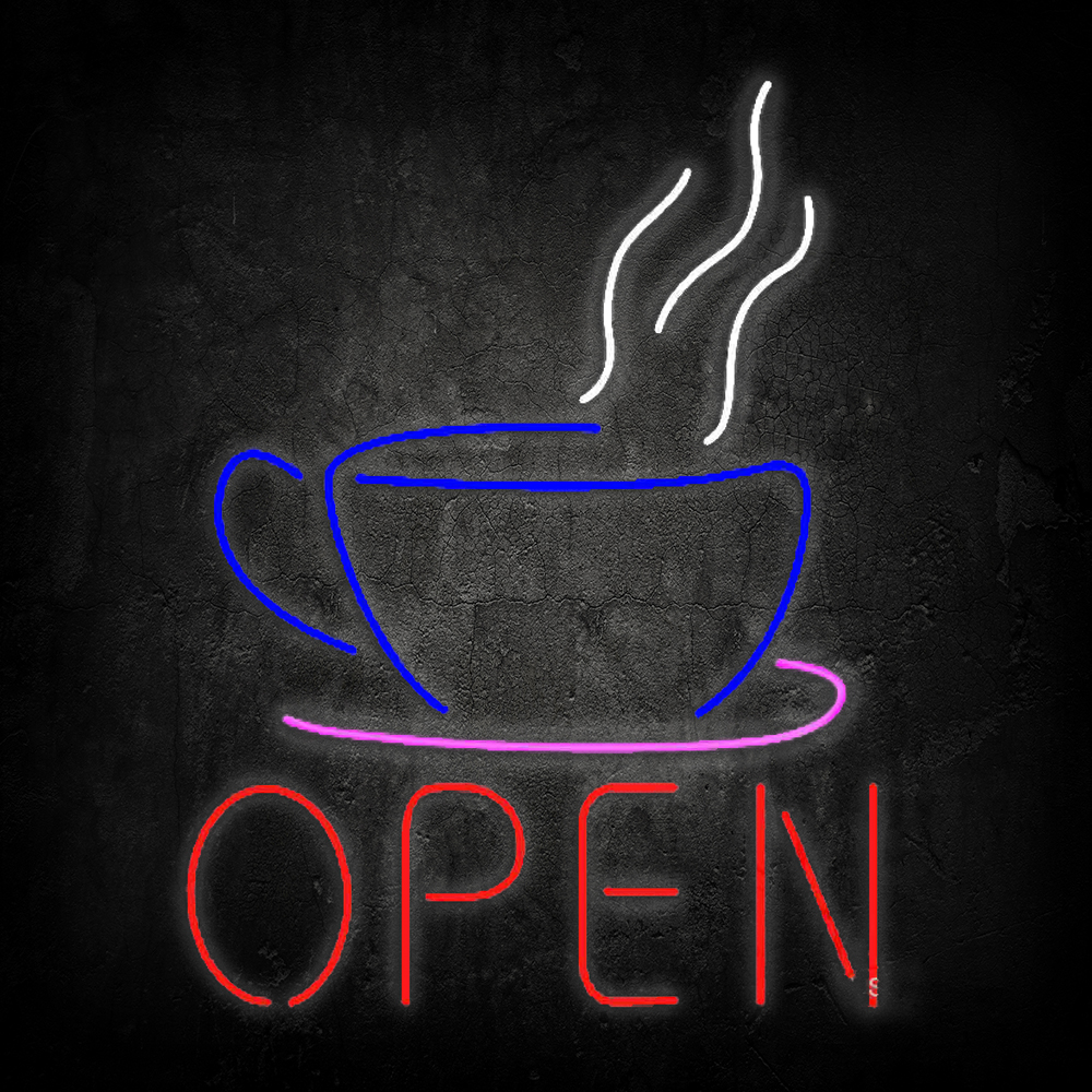 Open Coffee Cup Logo Handmade Art Neon Sign led sign