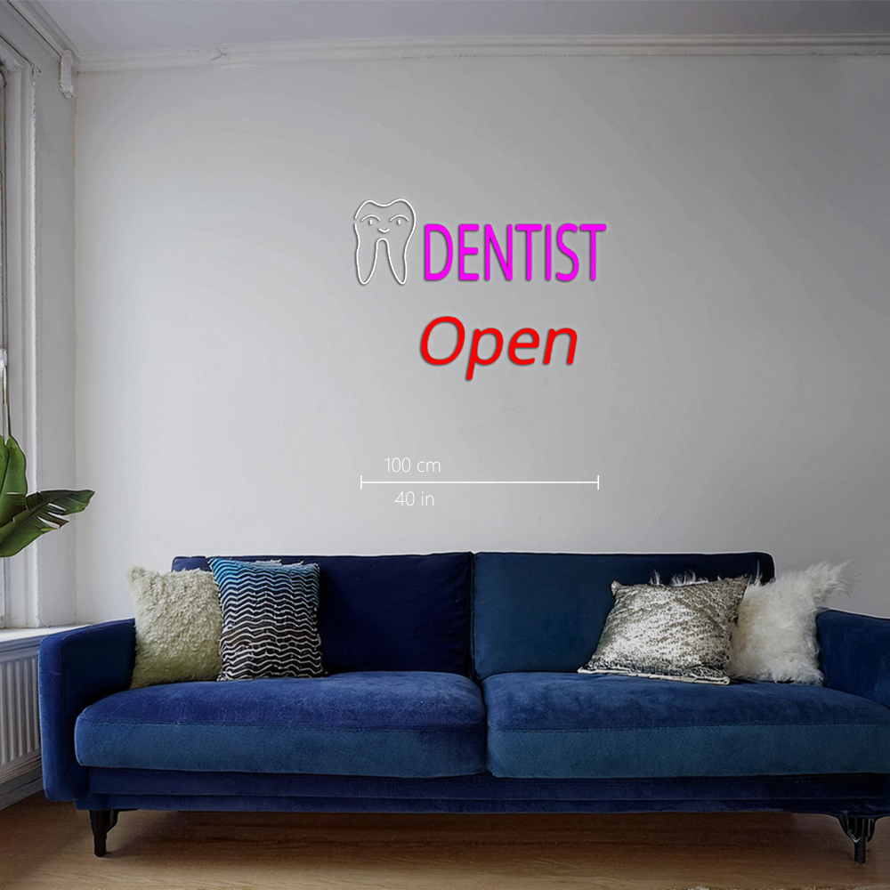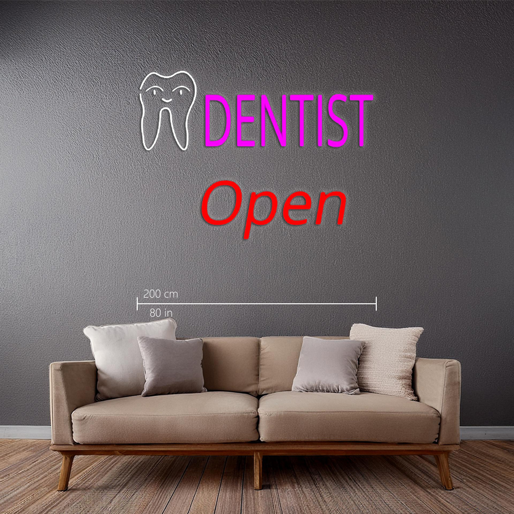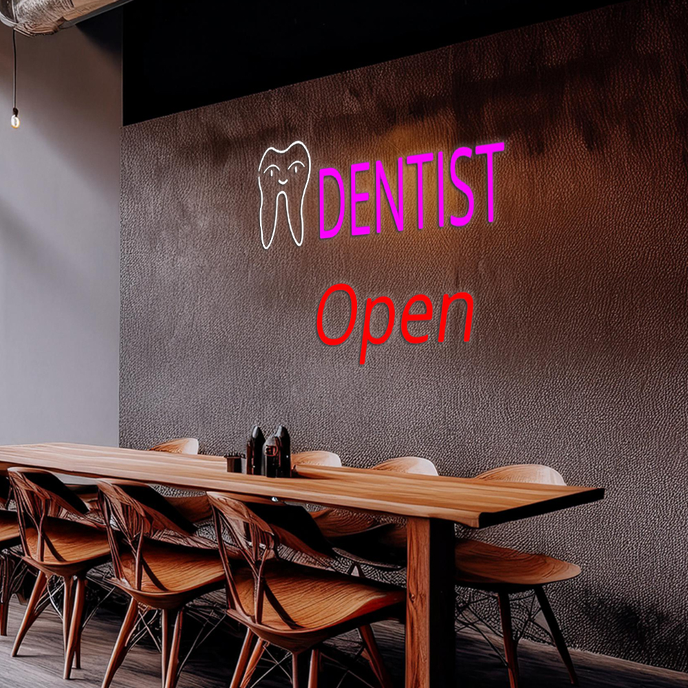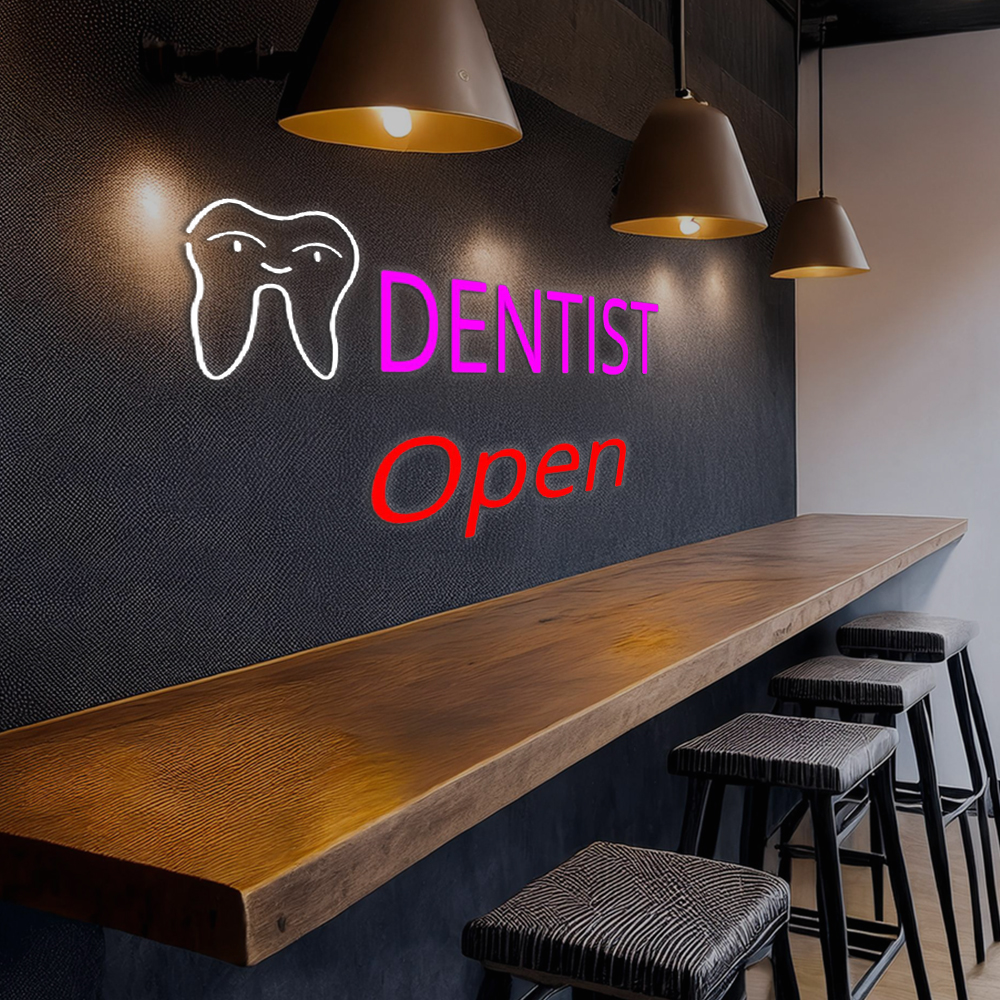 Pink Dentist White Tooth Open Handmade Art Neon Sign