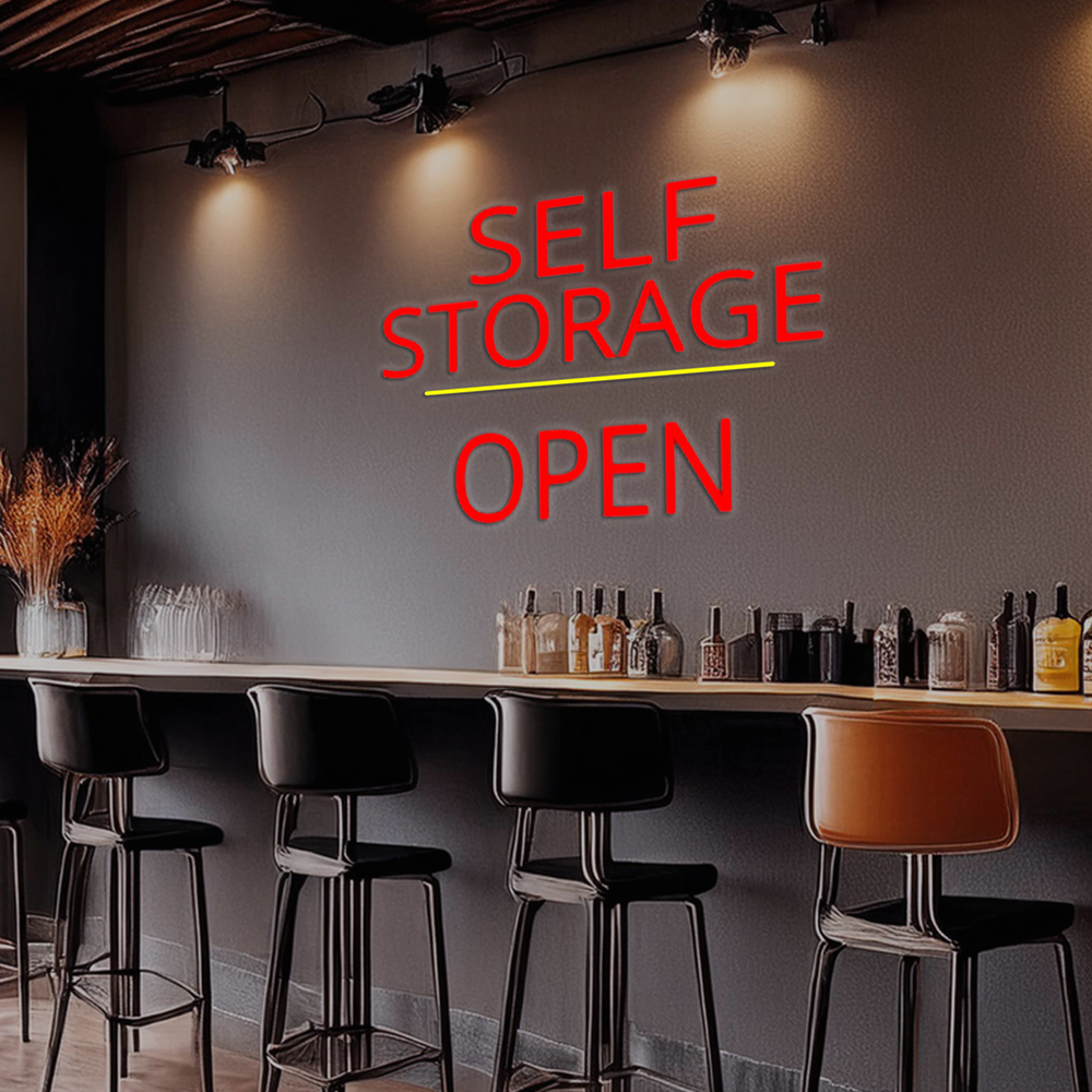 Self Storage Open Yellow Line Handmade Art Neon Sign