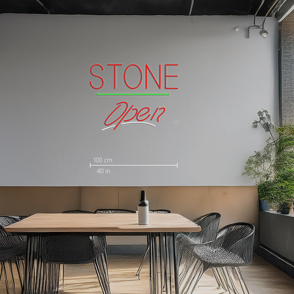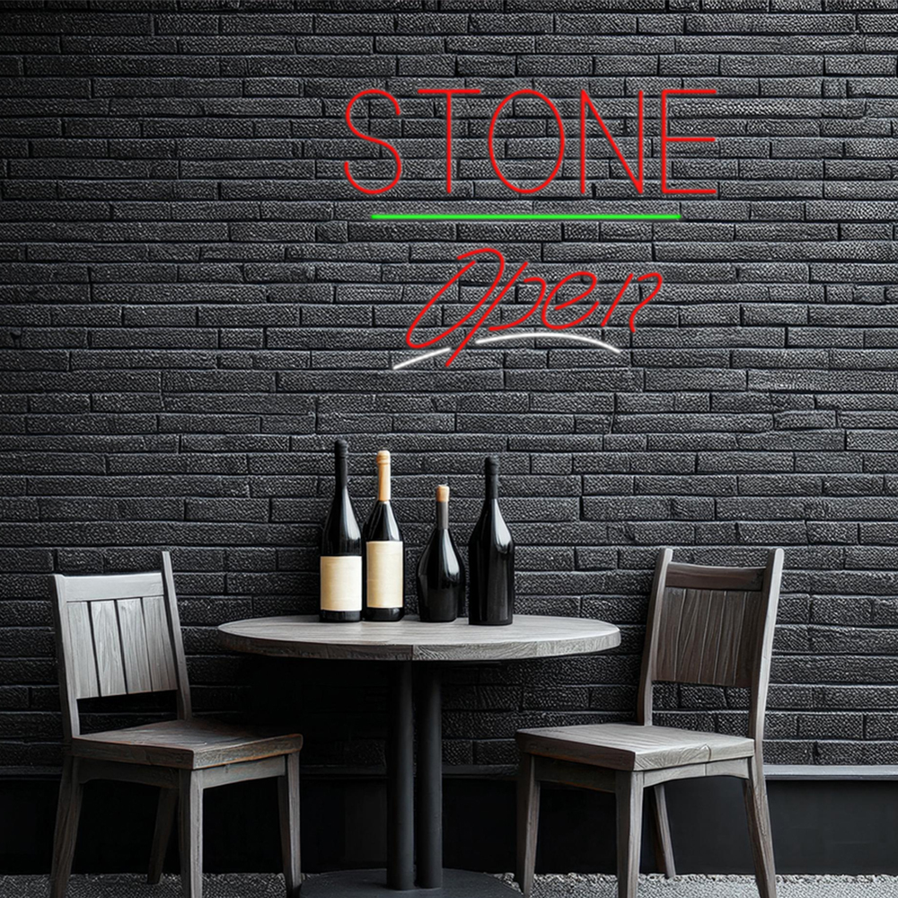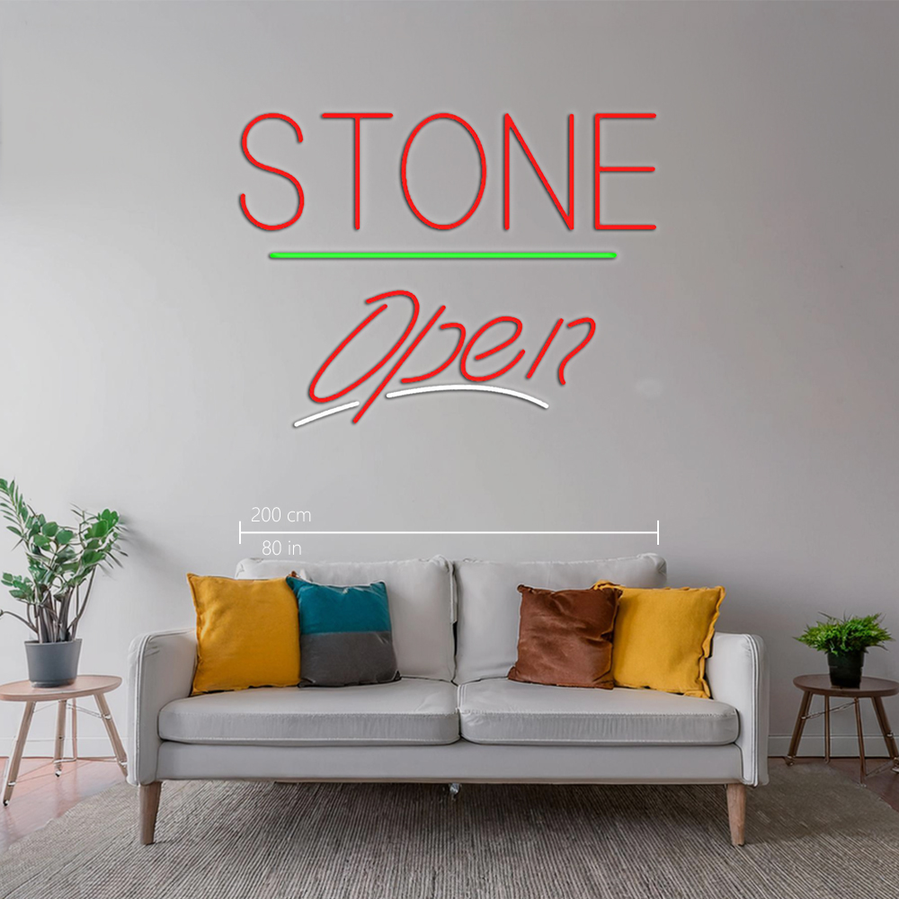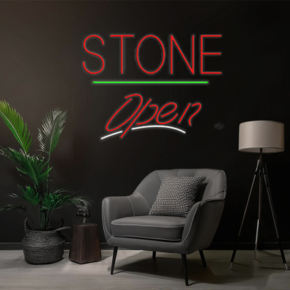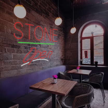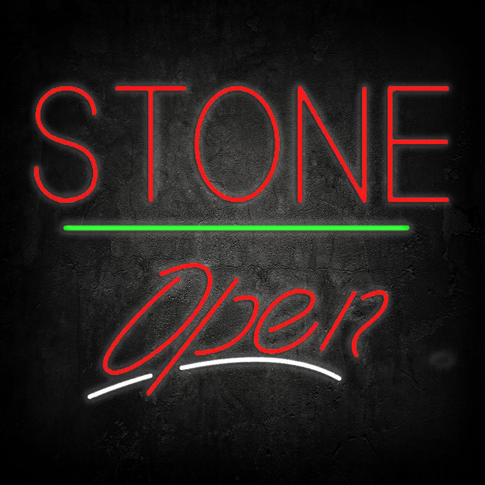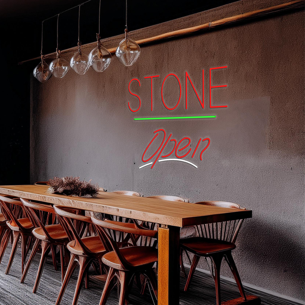 Stone Script Open Green Line Handmade Art Neon Sign