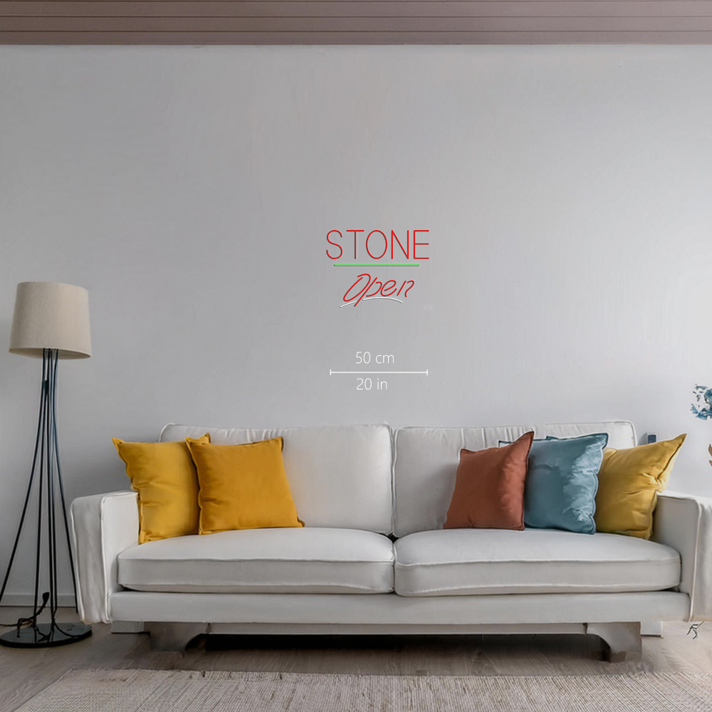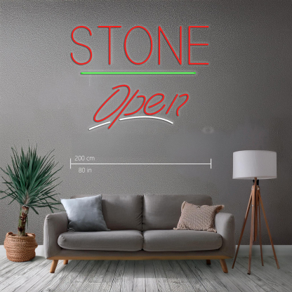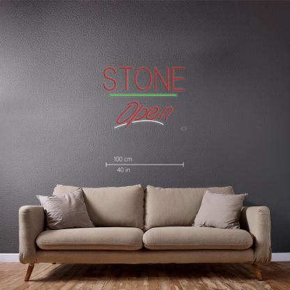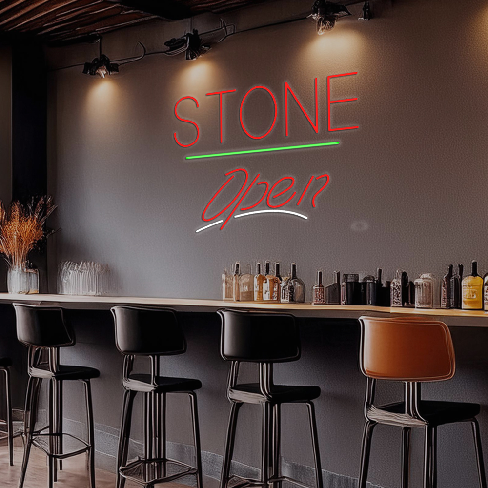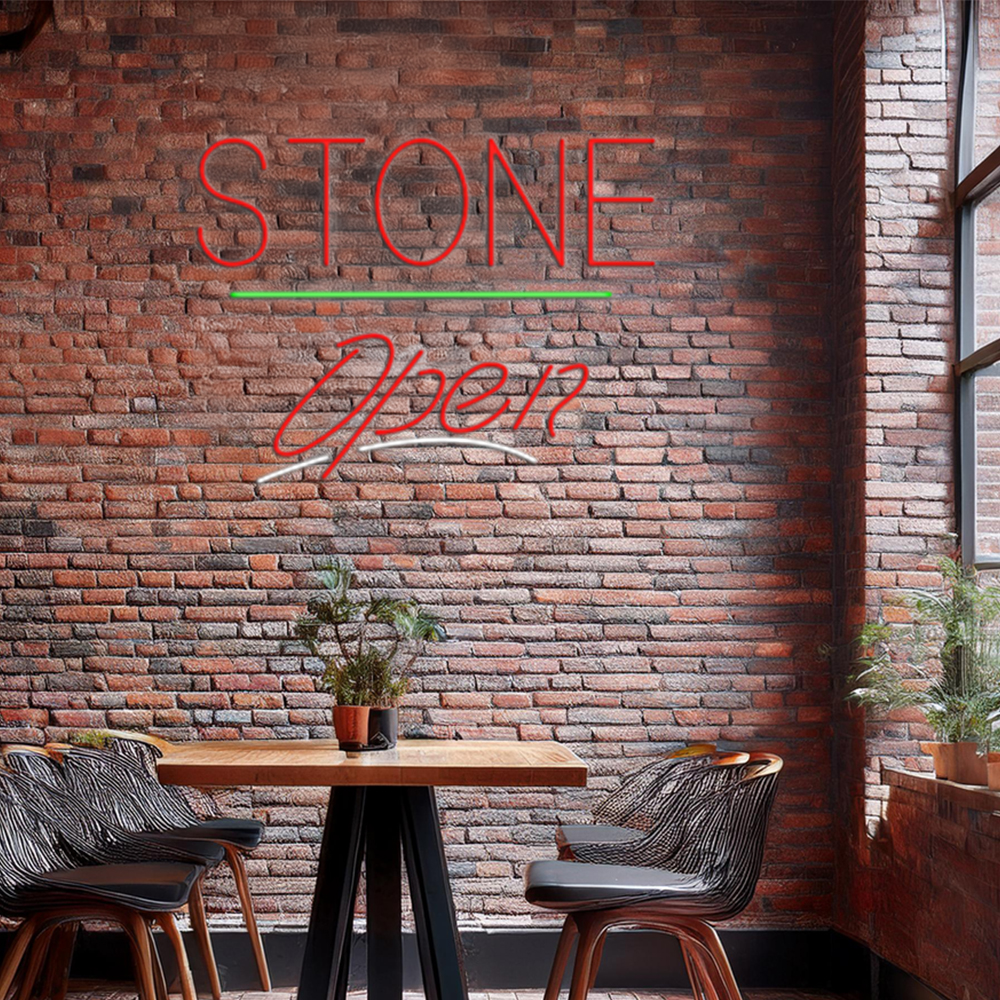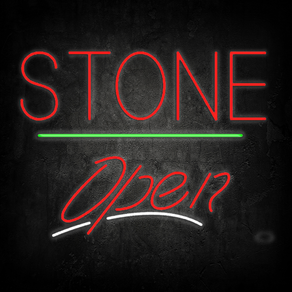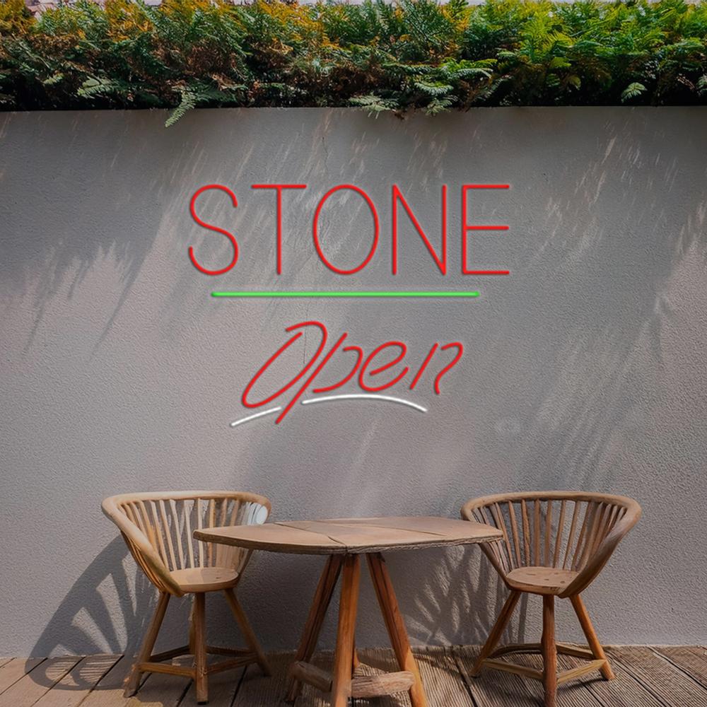 Stone Script Open Green Line Handmade Art Neon Signs